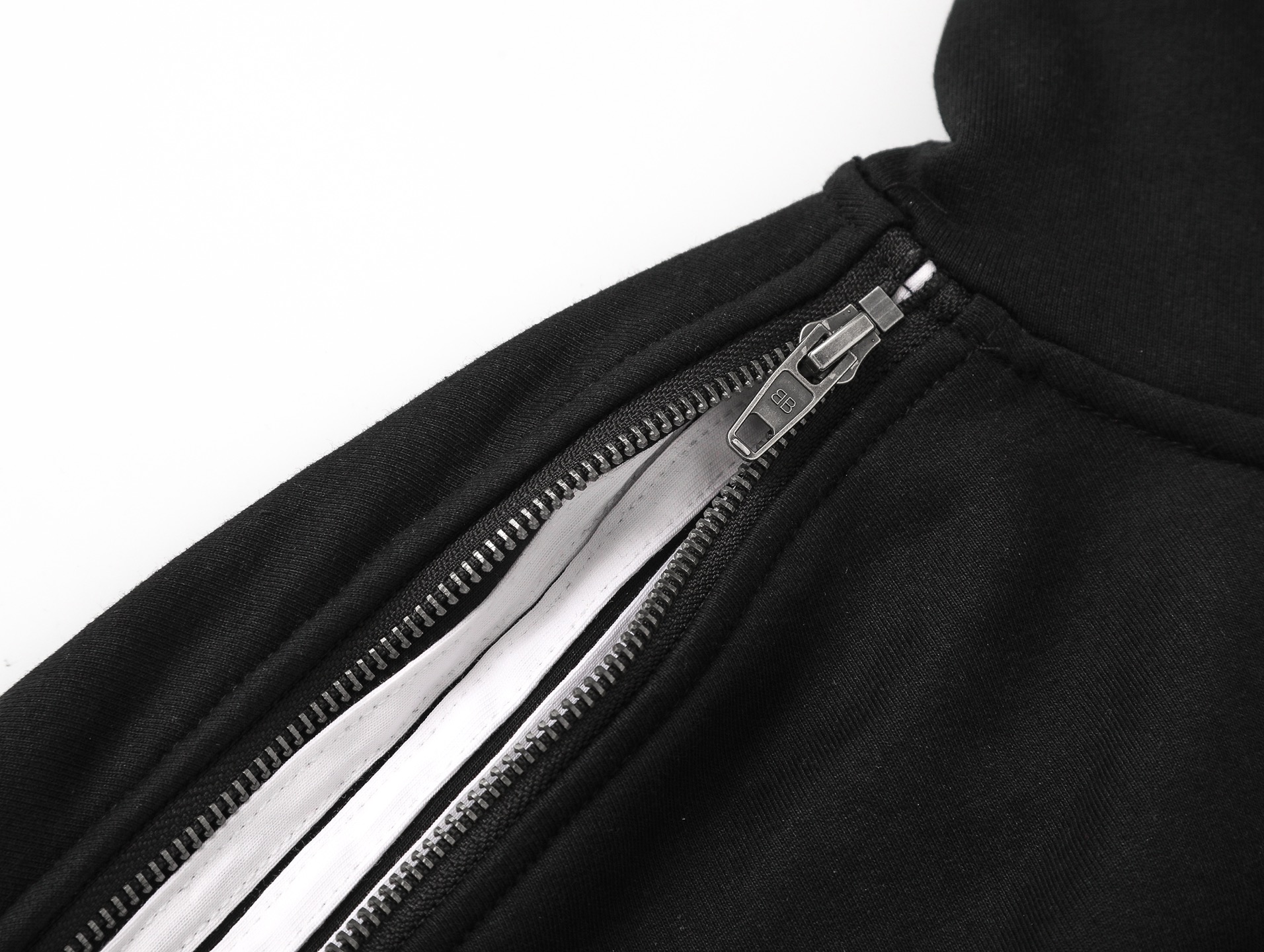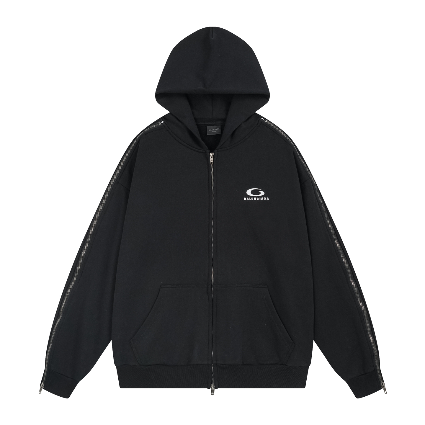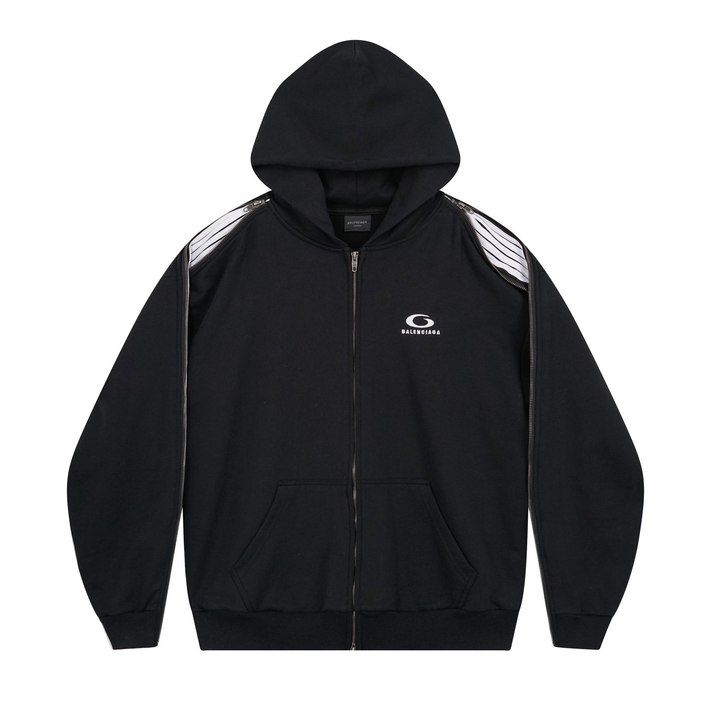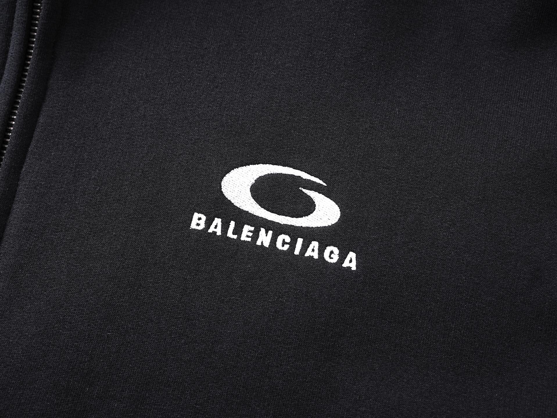 细节图 顶级版本 官网品质 BALENCI GA 巴黎SS25最新款 肩袖连拼色 拉条 肩连袖装拉链 前左胸口刺绣经典LOGO接链开衫连帽卫衣 超重工艺制作生产 砖柜同步 第一时间研发