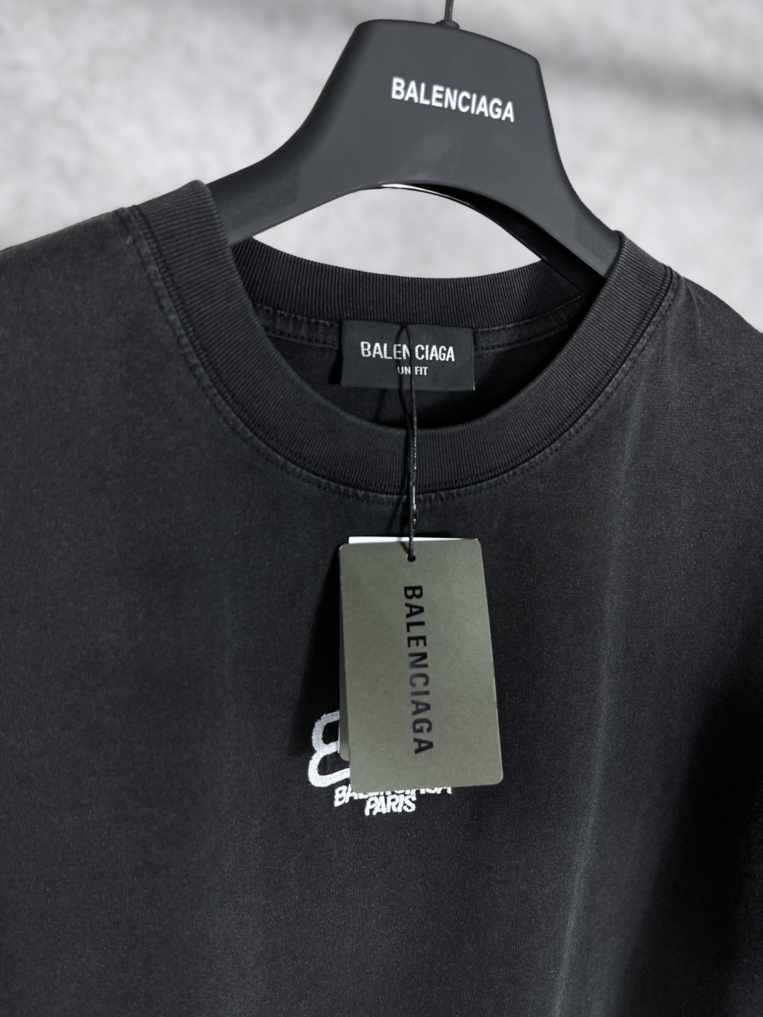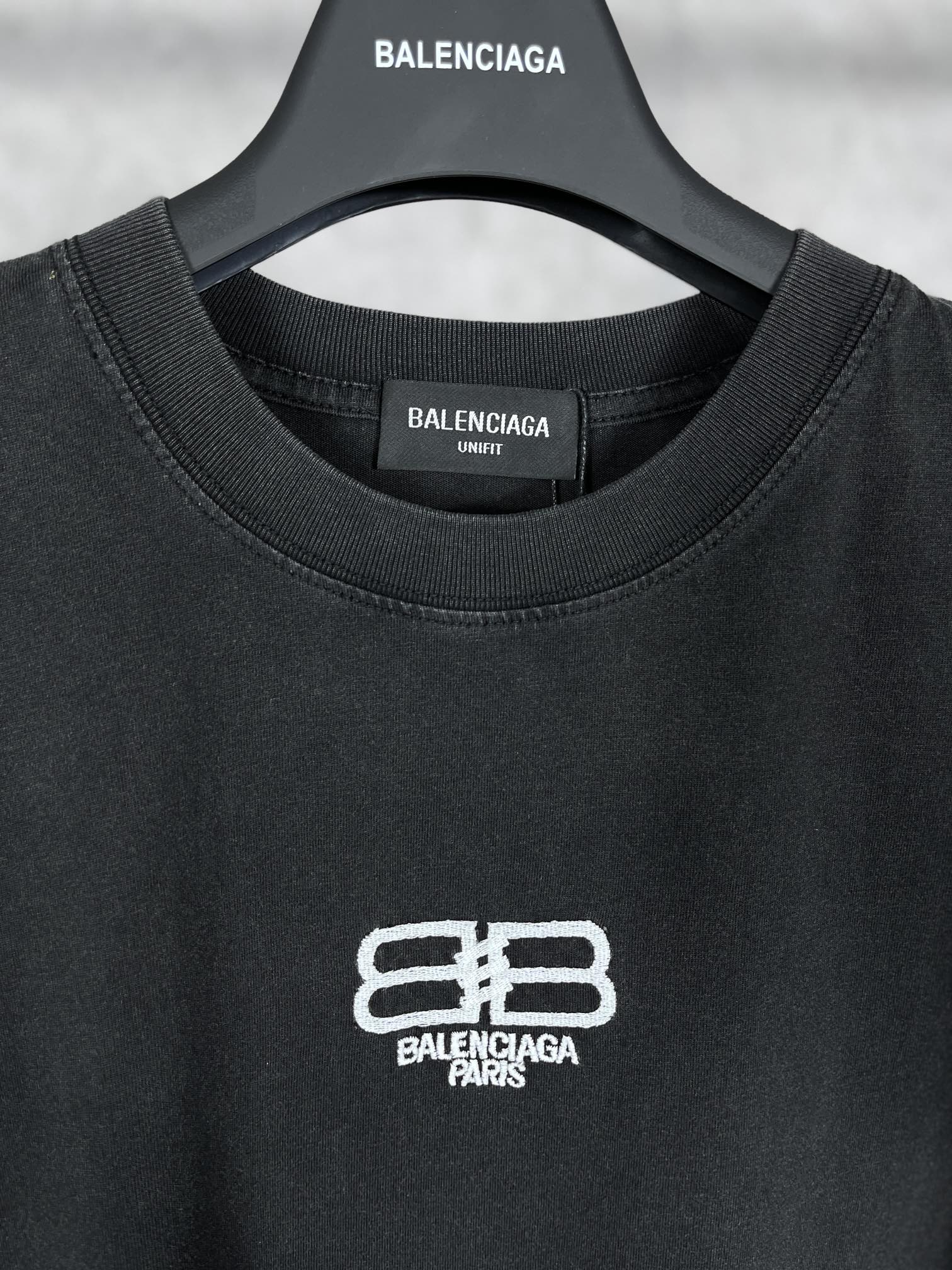 实拍图 顶级版本 官网品质 BALENCI GA 巴黎 BB刺绣水洗作旧短袖T恤 砖柜同步 面料采用巴黎ZP定织定染全棉双纱紧密棉 克重260克 布面干净 布纹清晰 柔软舒适 螺纹釆用定染无色差 经典图案采用进口绣花机刺绣 效果立体 还原砖柜 成衣水洗作旧 巨别市场通货 欢迎对比 版型釆用OS宽松落肩版型 男女同款