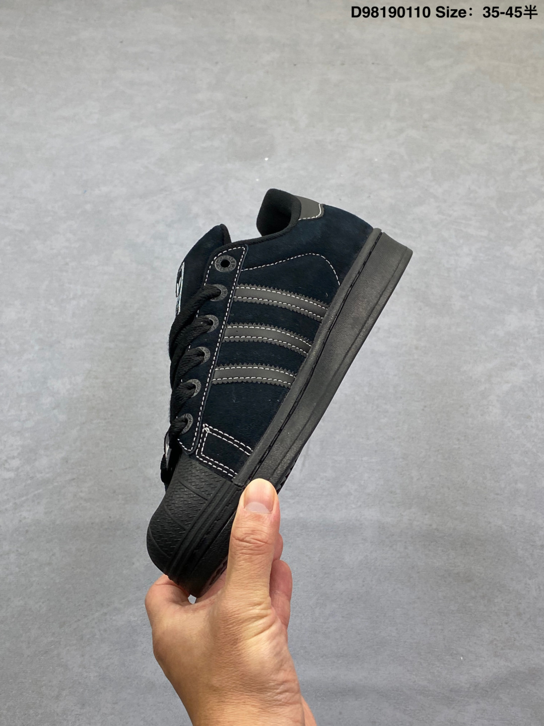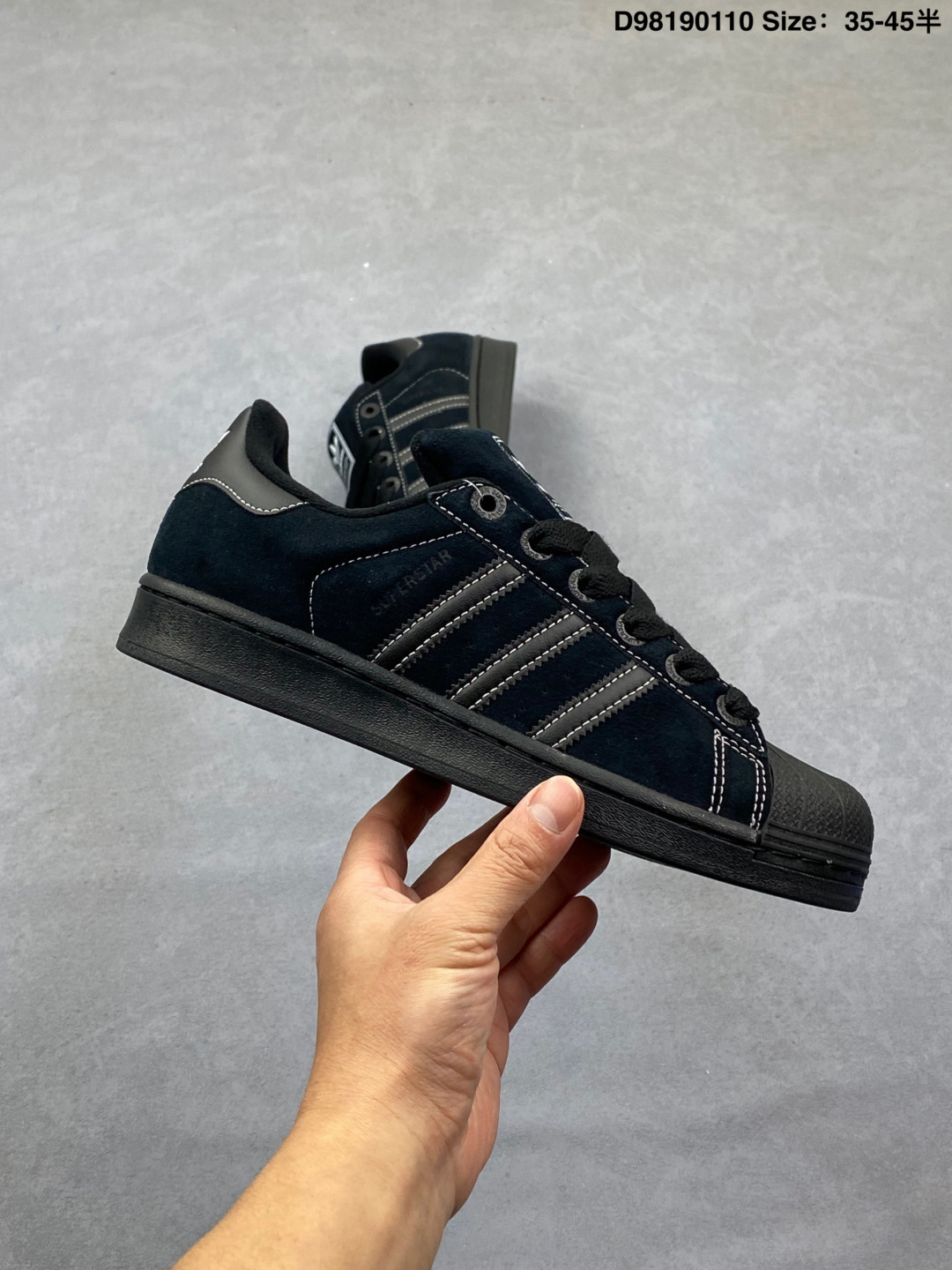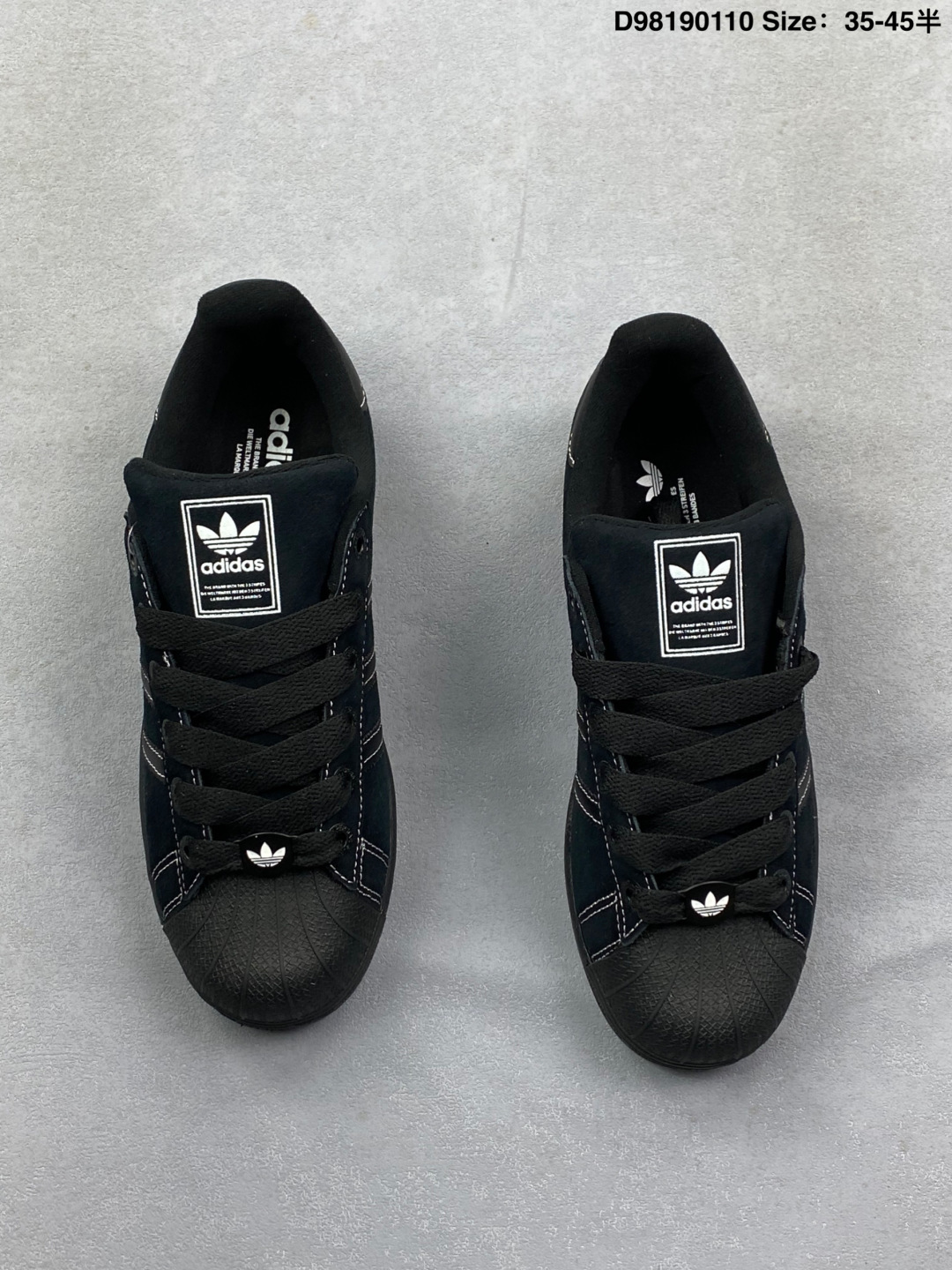 Adidas 阿迪达斯 男女鞋真标半码制 升级原楦原纸版开发 采用翻毛皮鞋面材质 2020改良全包围鞋垫 正确2020版鞋底模具及扇贝头盖片阿迪达斯 三叶草Adidas Originals Superstar II Core Black 经典贝壳头系列低帮百搭休闲运动板鞋 翻毛黑灰车线 JH5470
