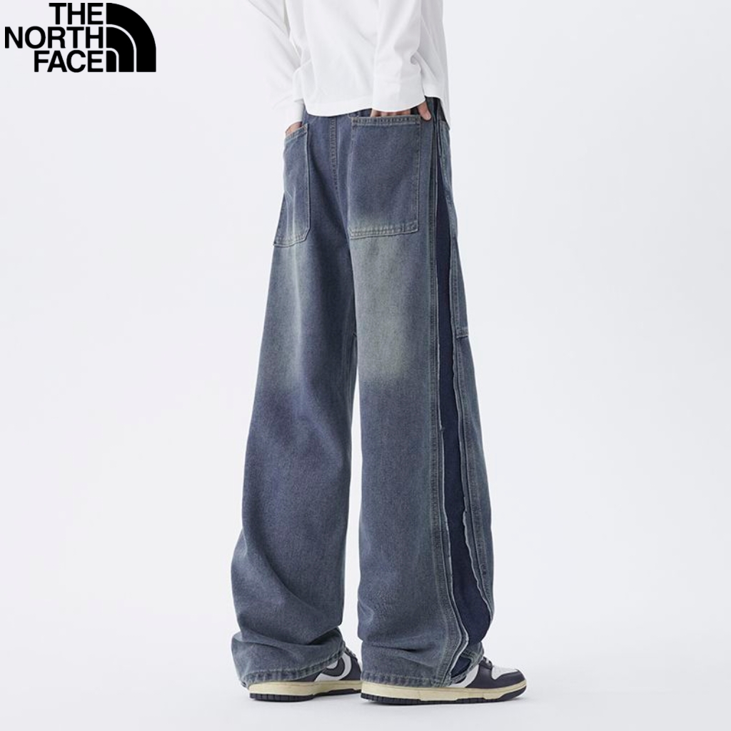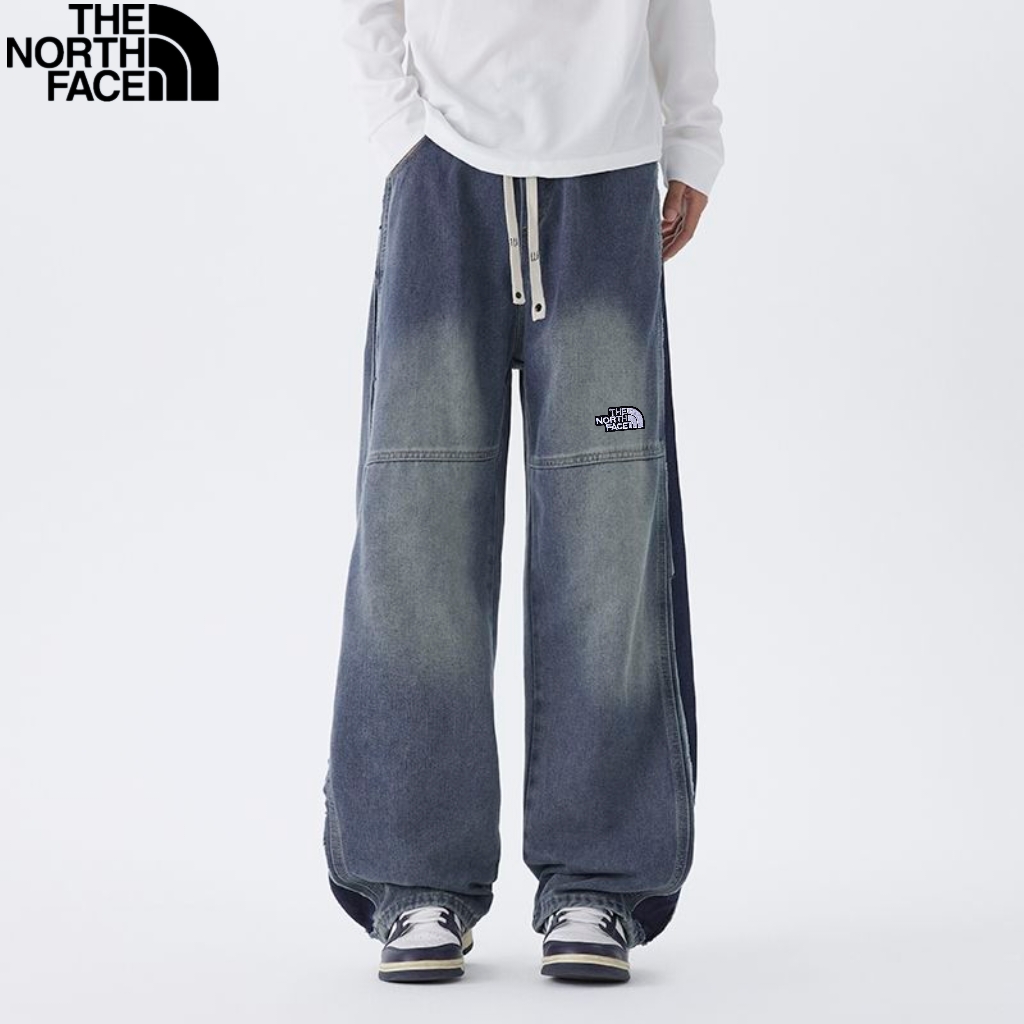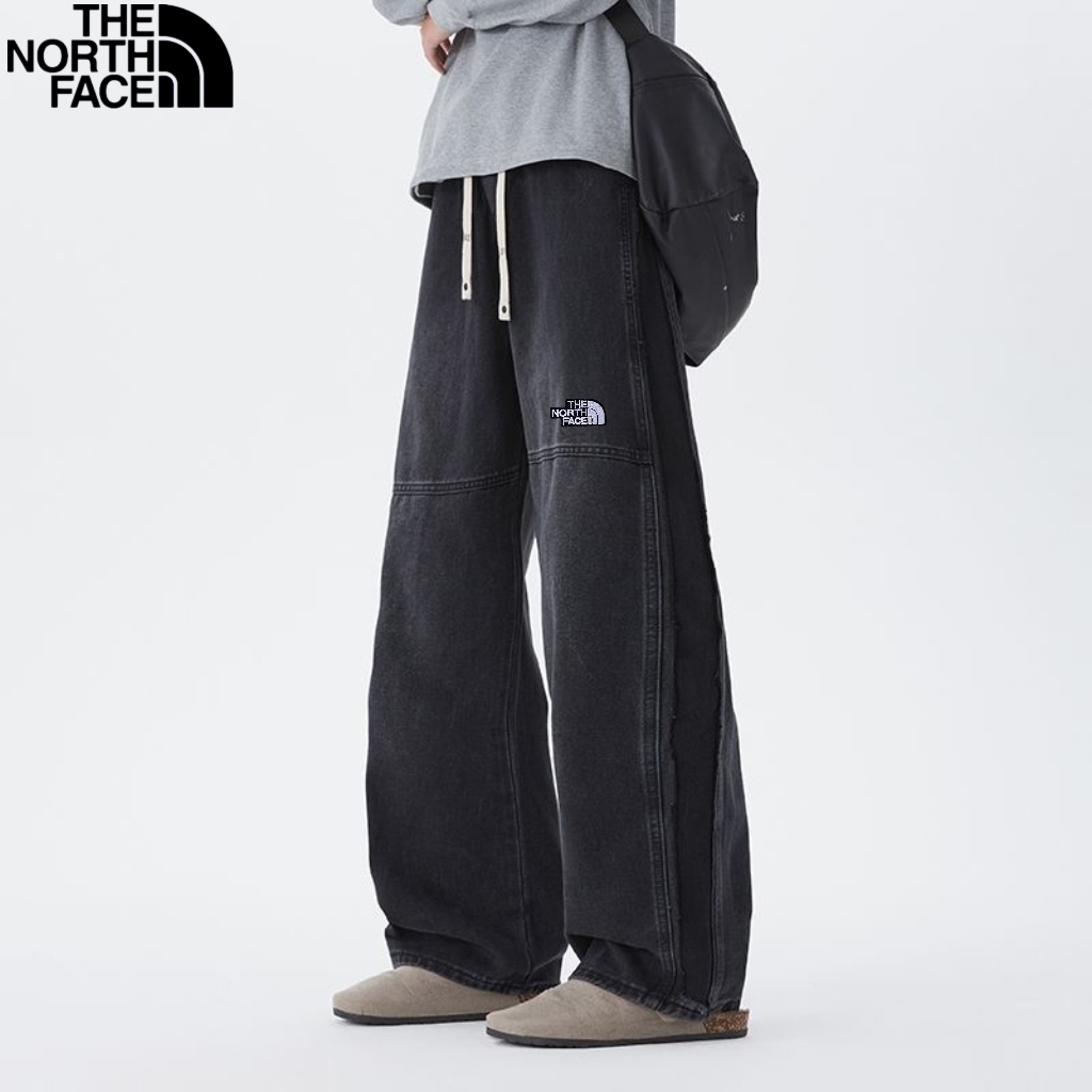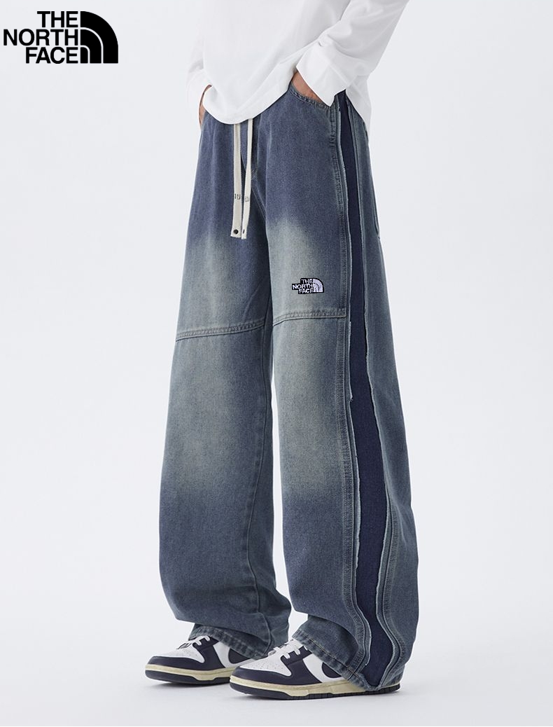 北面The North face秋季新款 男女同款松紧腰百搭潮流复古磨白水洗牛仔裤 男士牛仔直筒裤 休闲裤