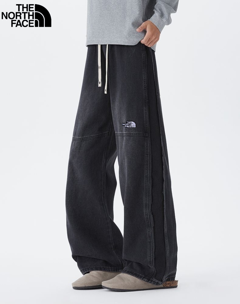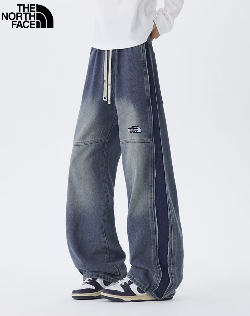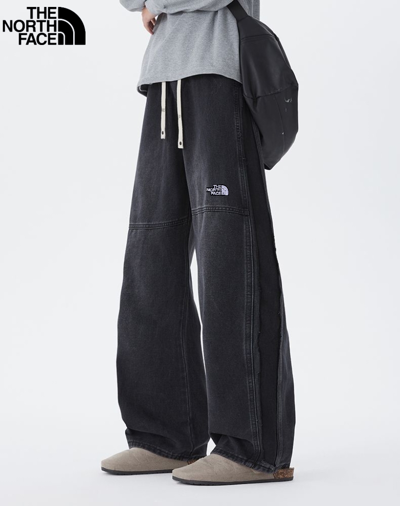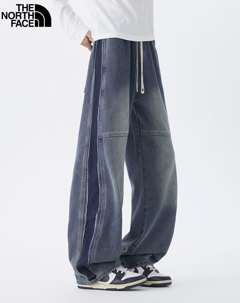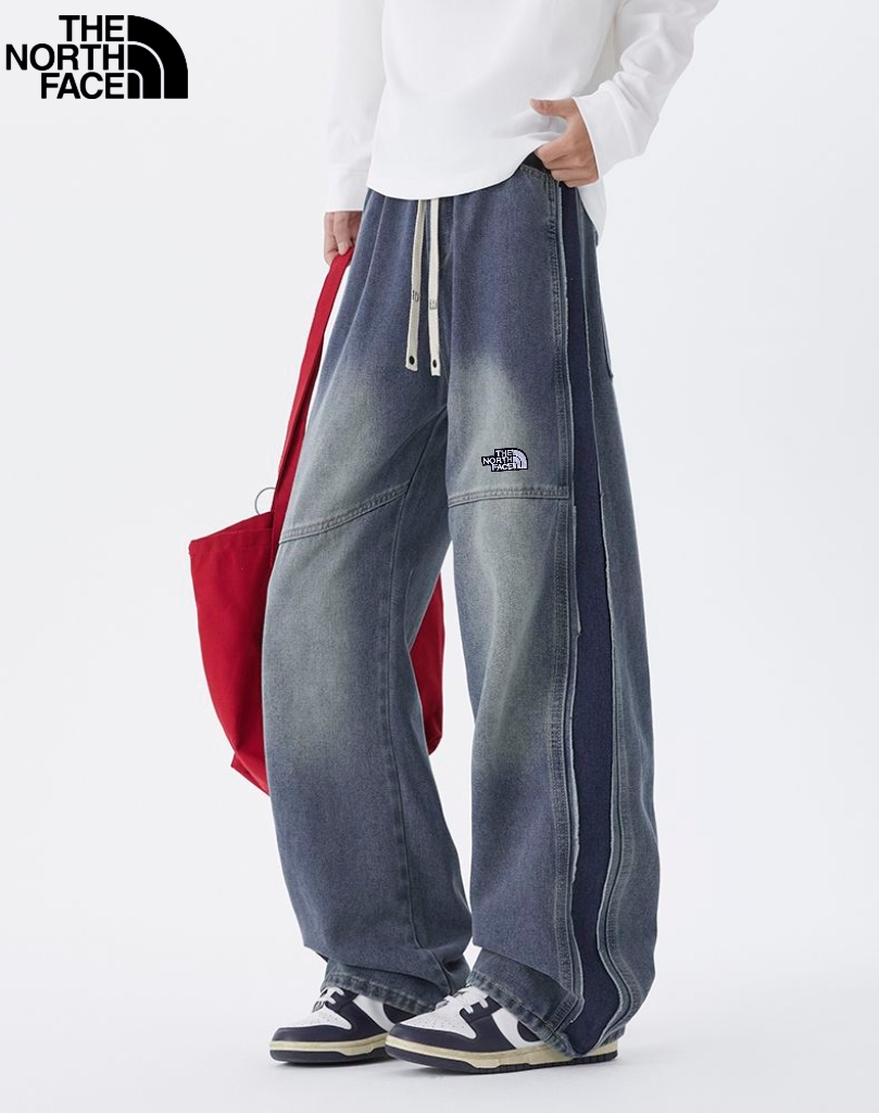 北面The North face秋季新款 男女同款松紧腰百搭潮流复古磨白水洗牛仔裤 男士牛仔直筒裤 休闲裤