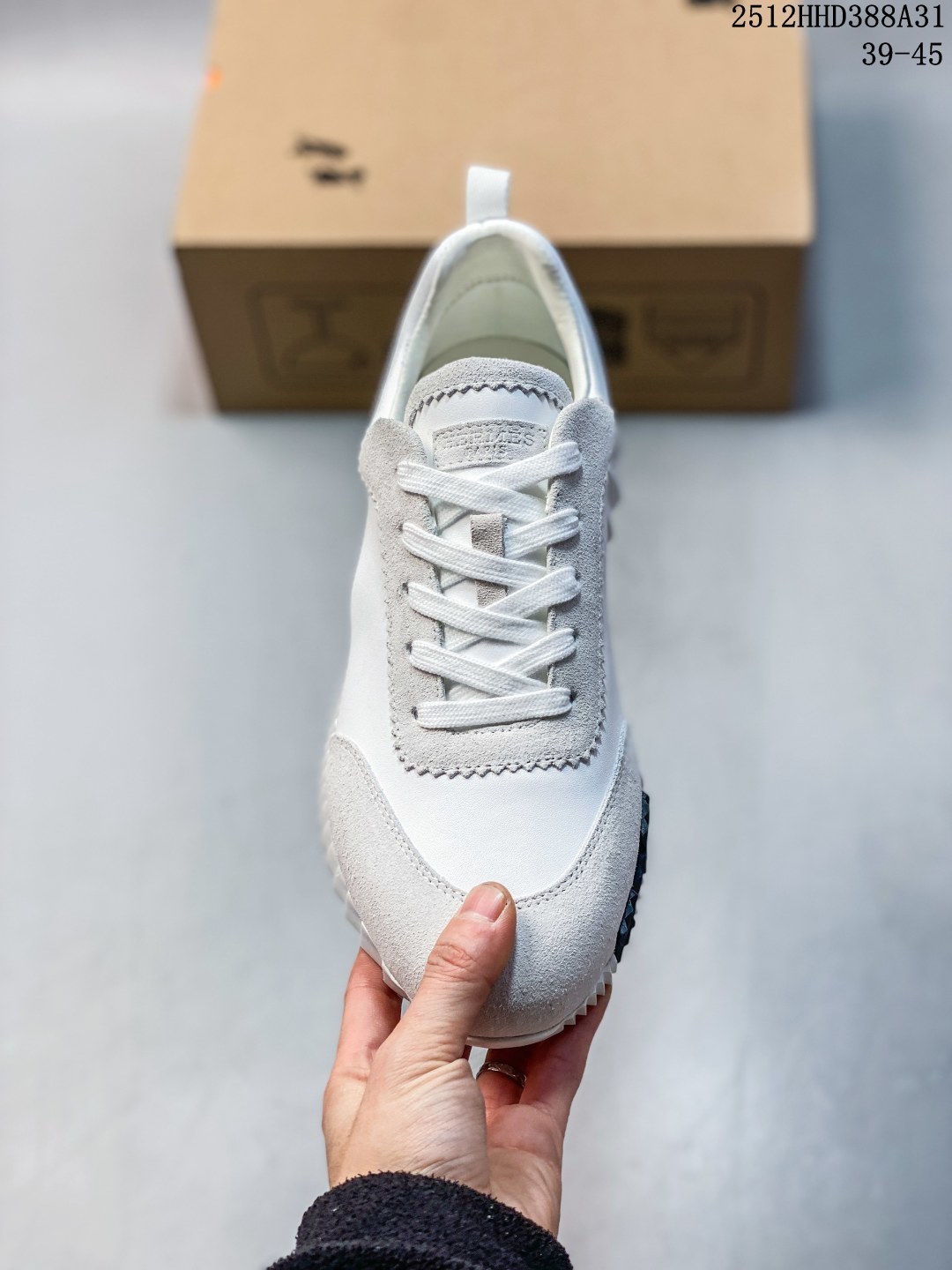 Hermes 爱马仕 Bouncing 低帮休闲板鞋 采用麂皮山羊皮革组合科技网织布鞋面材质 嵌入羊羔皮内底贴附发泡EVA缓震鞋垫 外置原装一致开发TPR耐磨耐弯折橡胶大底 原版开发 全新修改格版裁片 真原厂羊猄皮 卡色对比正品没有丝毫色差 附带正品中文版合格证 区别一眼假过度包装
