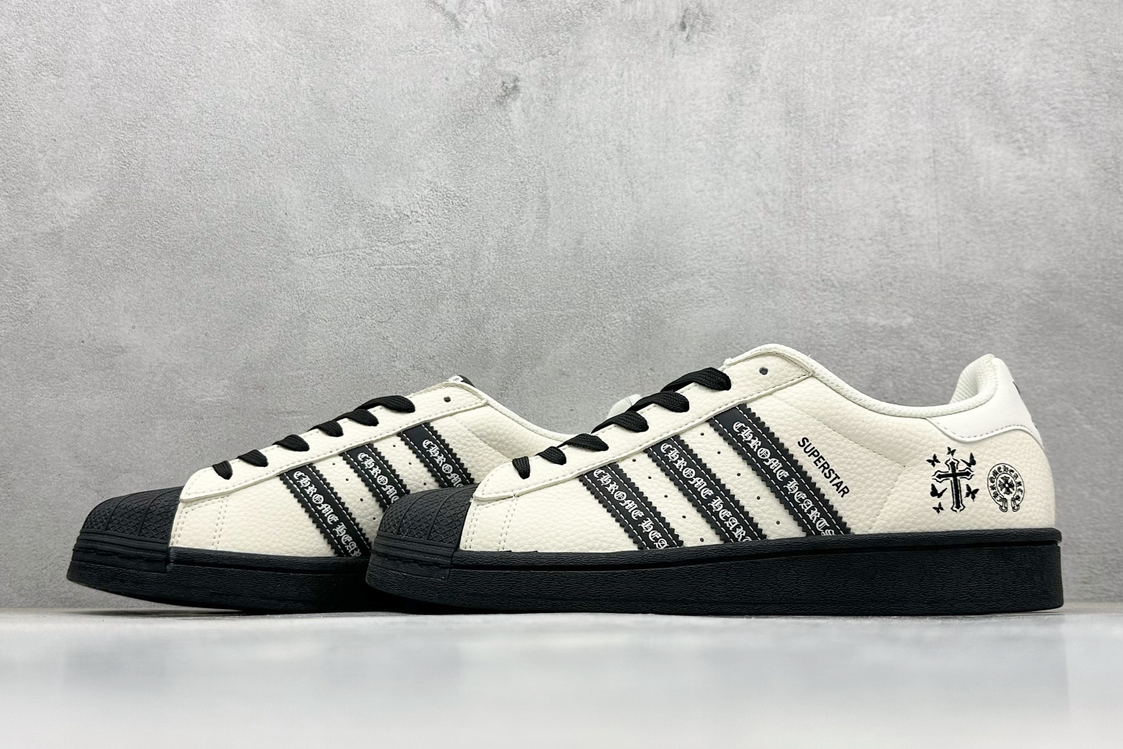 AD Originals Superstar 黑白十字架 采用全新头层拼接皮革材质 后跟采用特色3D立体印字 渠道正品订单 诠释市场最高工艺水平 全鞋进口头层皮料打造 区别市面普通真标版本 进出专柜无压力 货号 DS0025 Size 36 45 编码 34