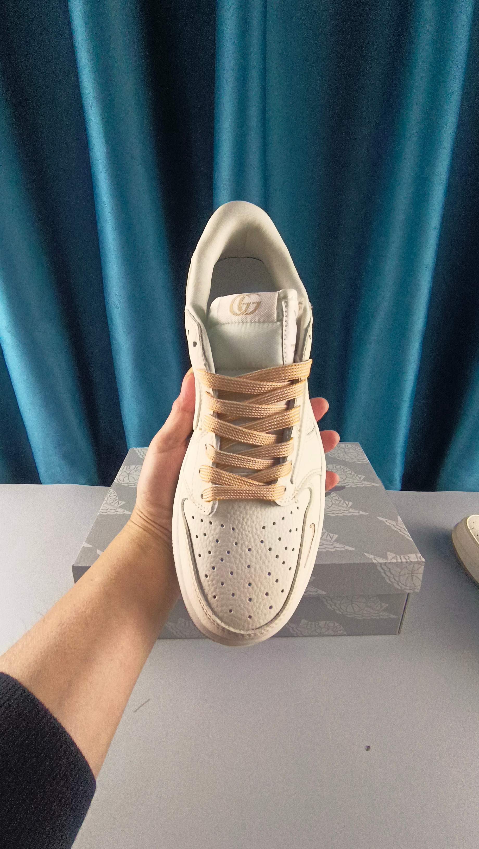 海外爆款限量发售 Nike Jordan Air Jordan倒勾 古驰联名 米棕印花 高端定制 低帮 复古 减震 防滑 耐磨 篮球鞋 定制鞋盒 大厂纯原品质出货 超高清洁度 皮料切割干净无任何毛边 细节完美