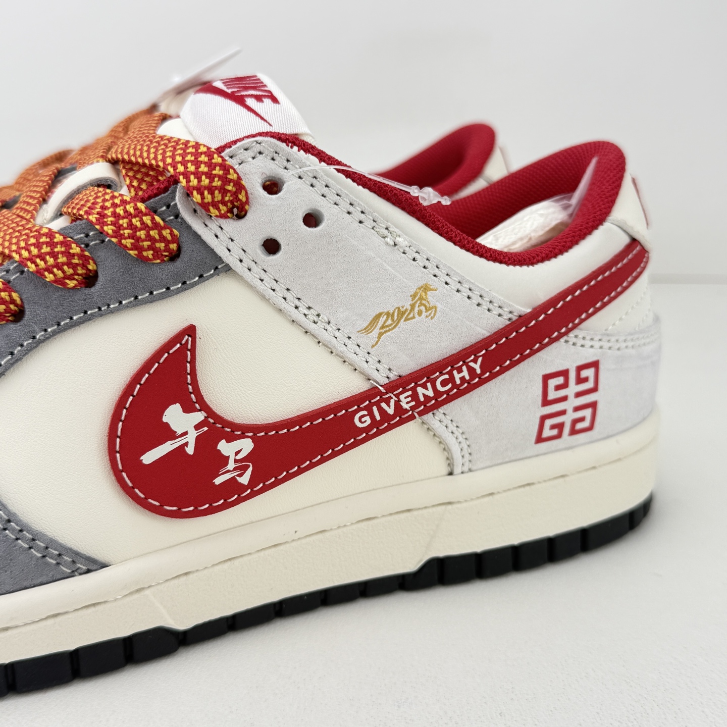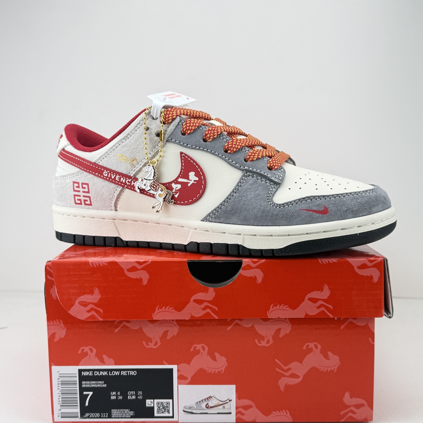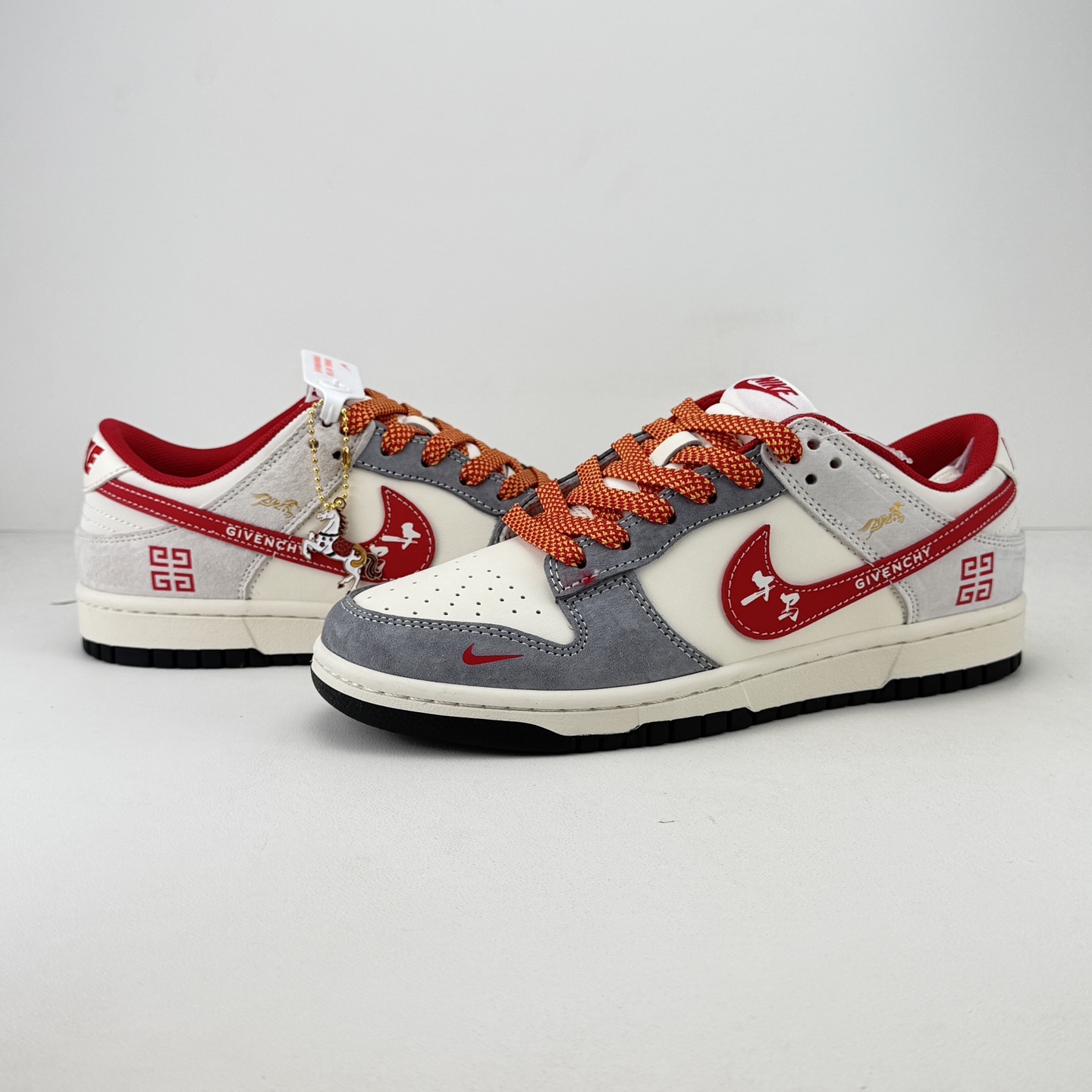 马年限定SB Dunk Low直接美到开挂 灰白红撞色搭配细腻麂皮材质 质感高级到骨子里 鞋身纪梵希元素 回纹标设计超有腔调 马形金属吊坠更是点睛之笔 把新年氛围感拉满 经典低帮SB Dunk版型搭配软弹鞋垫 踩屎感在线还超显腿细 不管搭卫衣还是牛仔都能炸街 这款收藏穿搭双拿捏