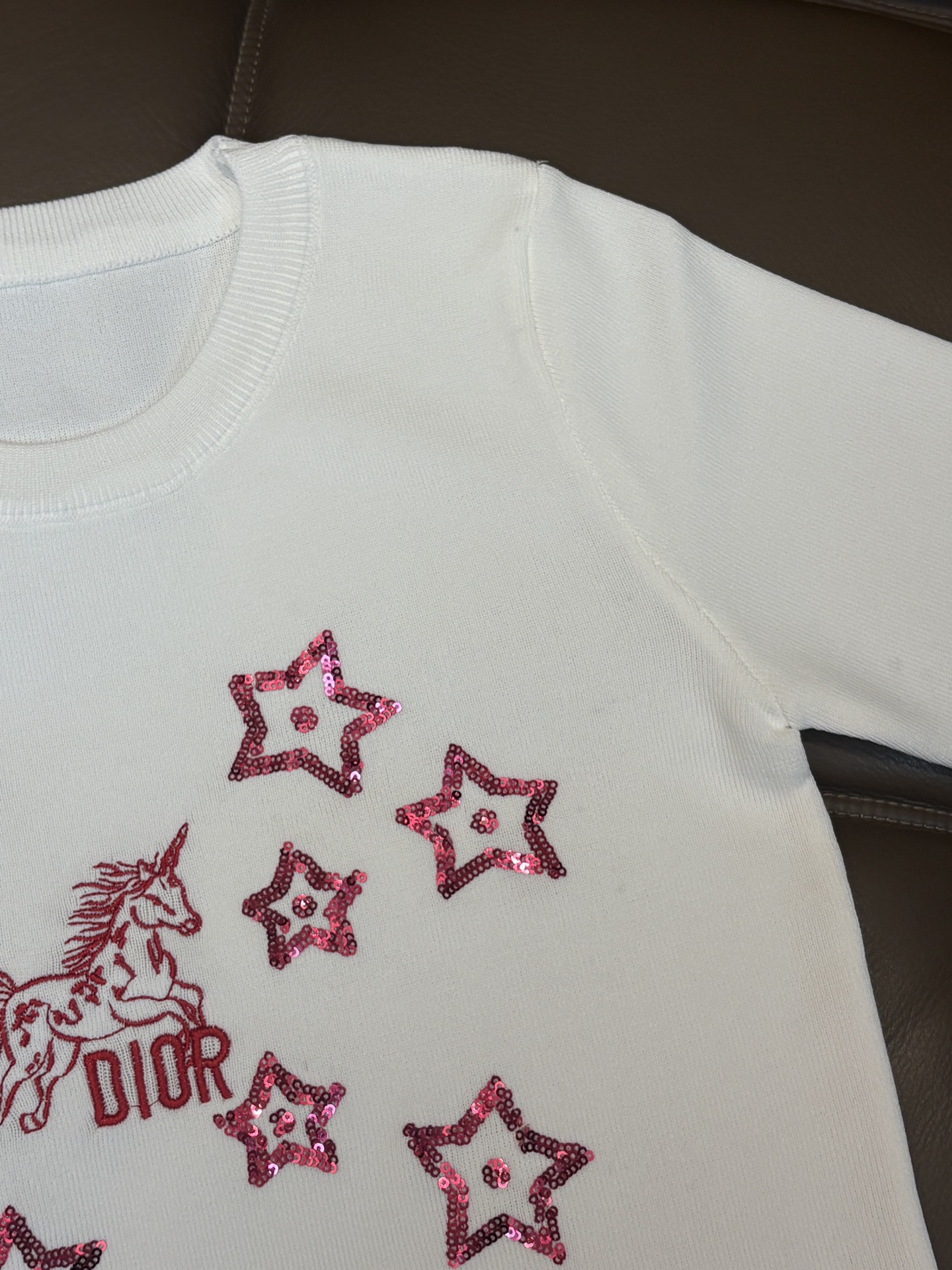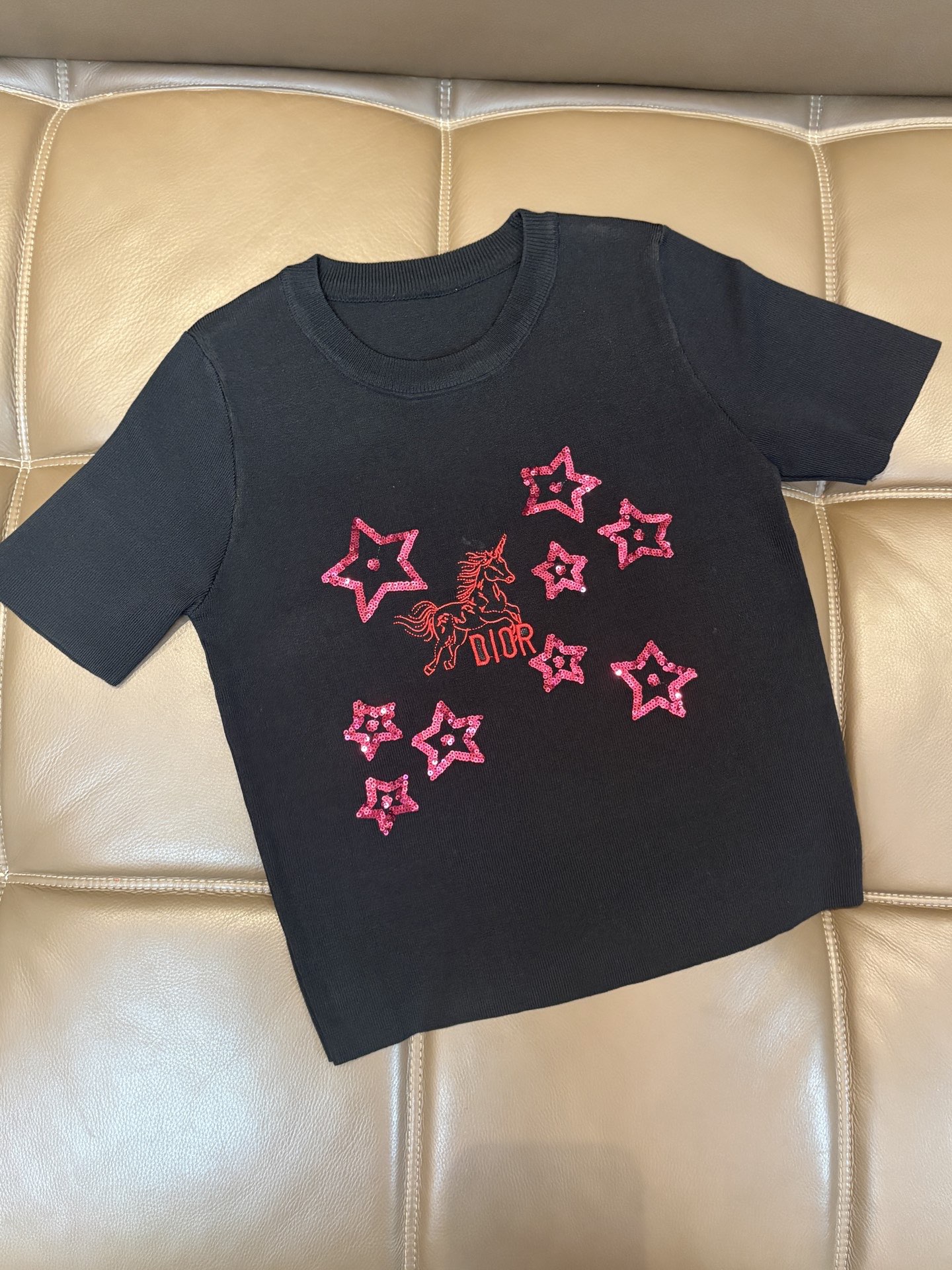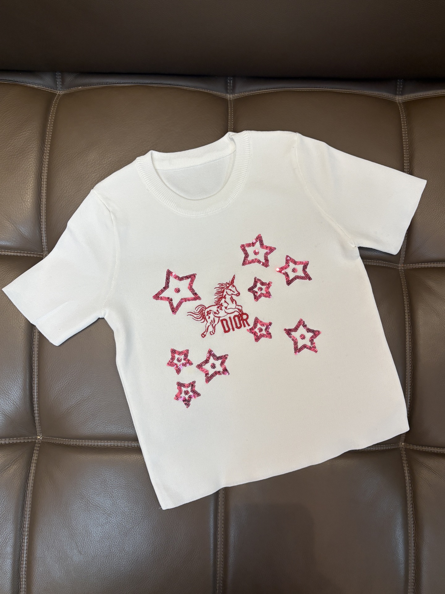 95293386 - Dior迪奥马年限定字母五角星重工亮片刺绣圆领针织短袖 款号 489762