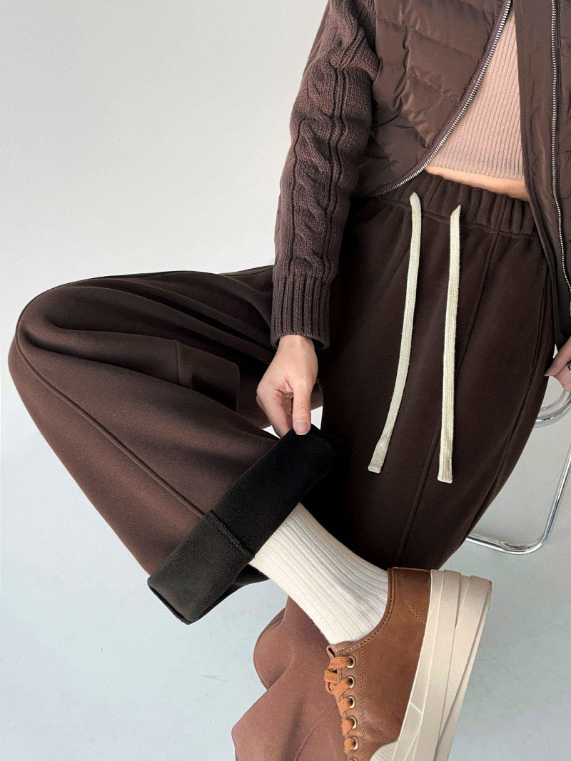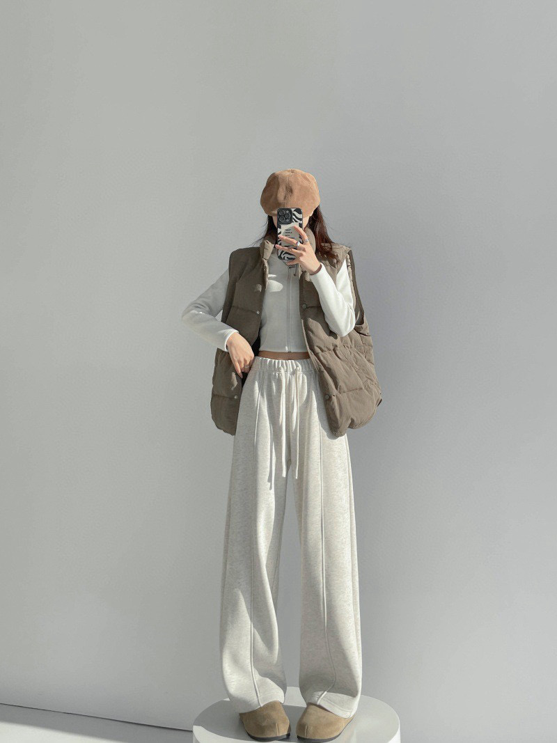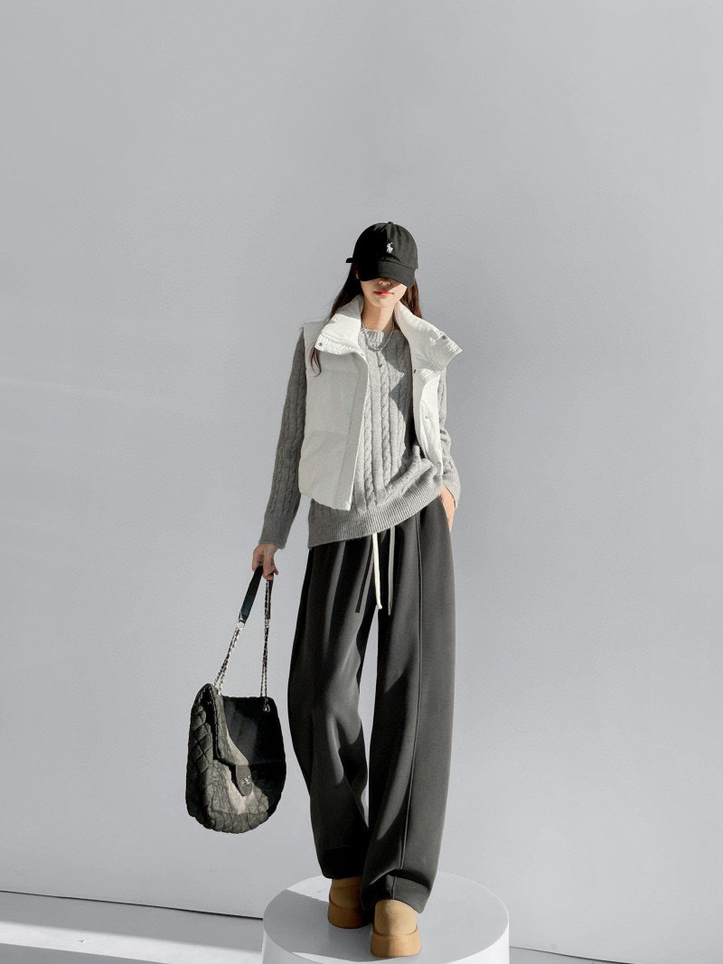 奶白款搭羽绒马甲 清爽又有层次感 咖啡棕配同色系毛衣 厚底鞋 慵懒氛围直接拉满 加绒内衬暖乎乎裹住腿 松紧腰 抽绳自在不勒 不管是通勤还是逛街 套上就走的松弛感太戳人了