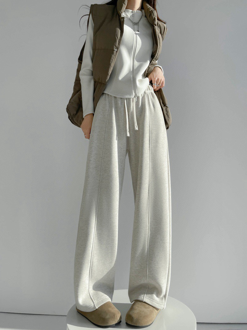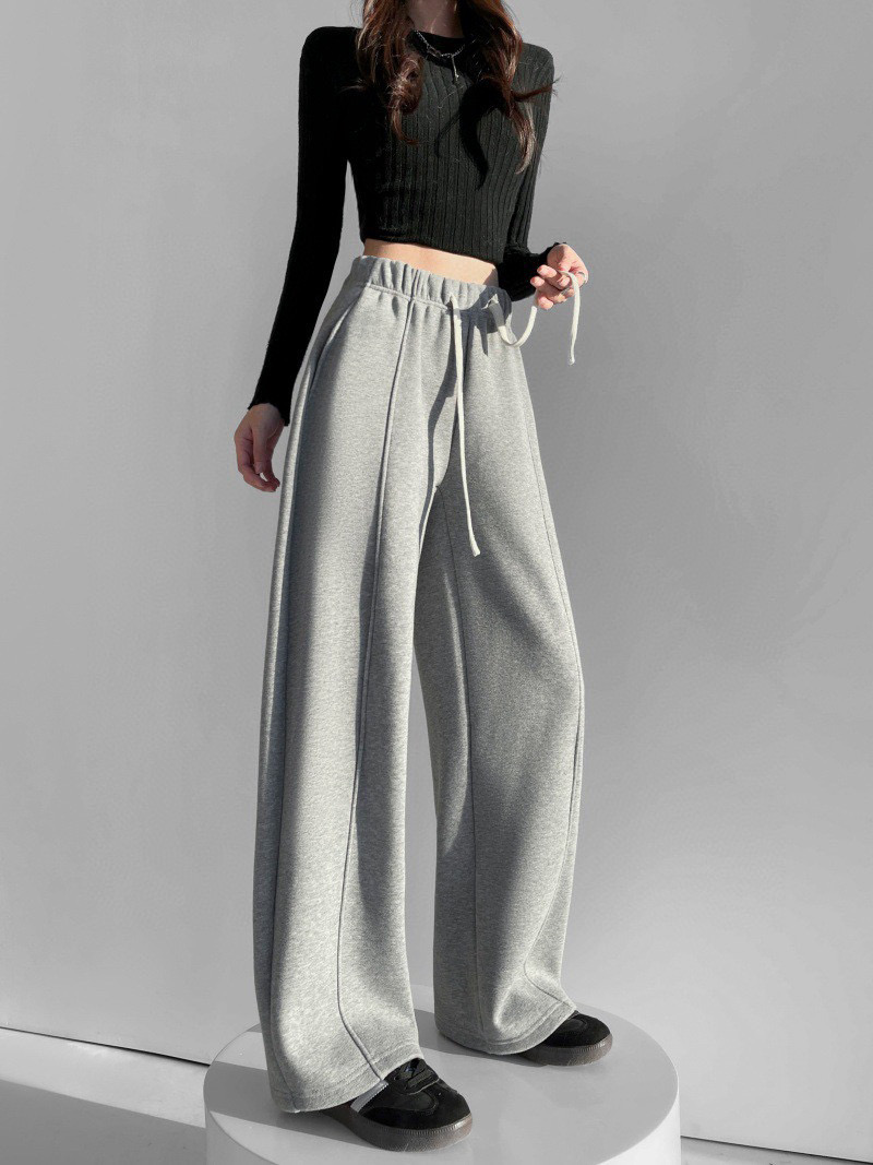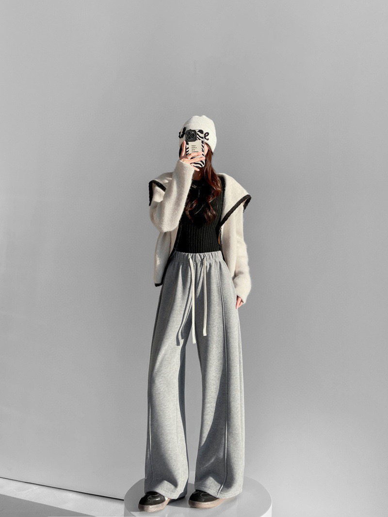 95169360 - 批加绒软糯保暖运动裤冬季休闲抽绳松紧腰宽松拼接直筒中线卫裤女 387756