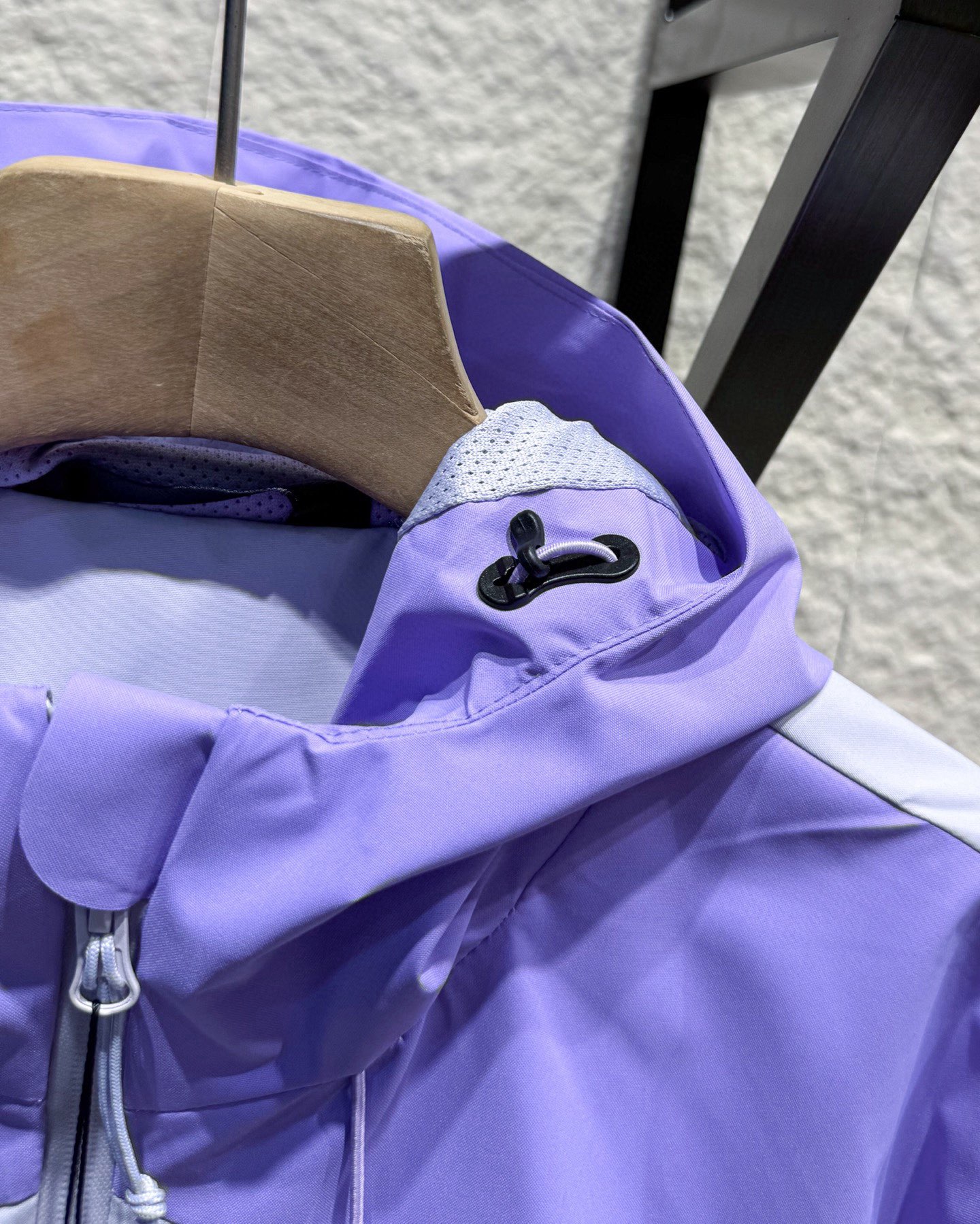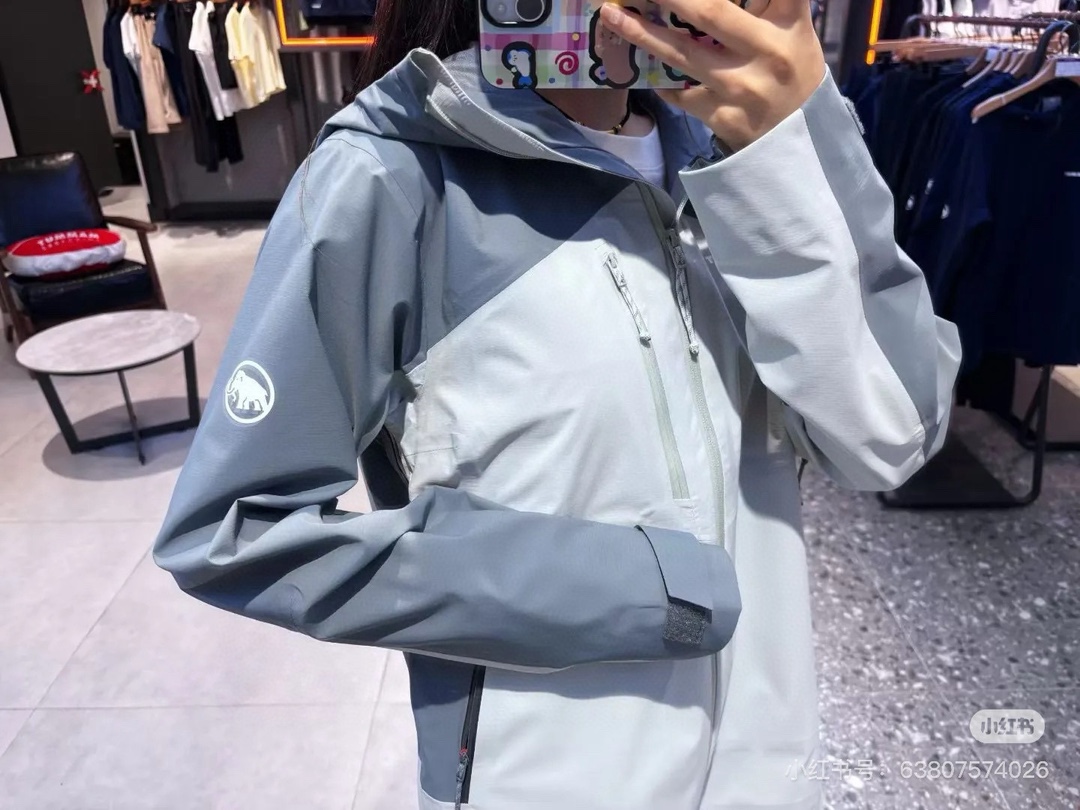 衣服多处拼接3D剪裁 全身多处压胶 胸口拉链无痕压胶防水拉链条 门襟防风条3公分全压胶 平整高级 帽檐处8公分立挺压胶 防雨不软塌 袖口压胶魔术贴 帽子下摆都有可调节防风扣 两个深度手插口袋 细节处处在线