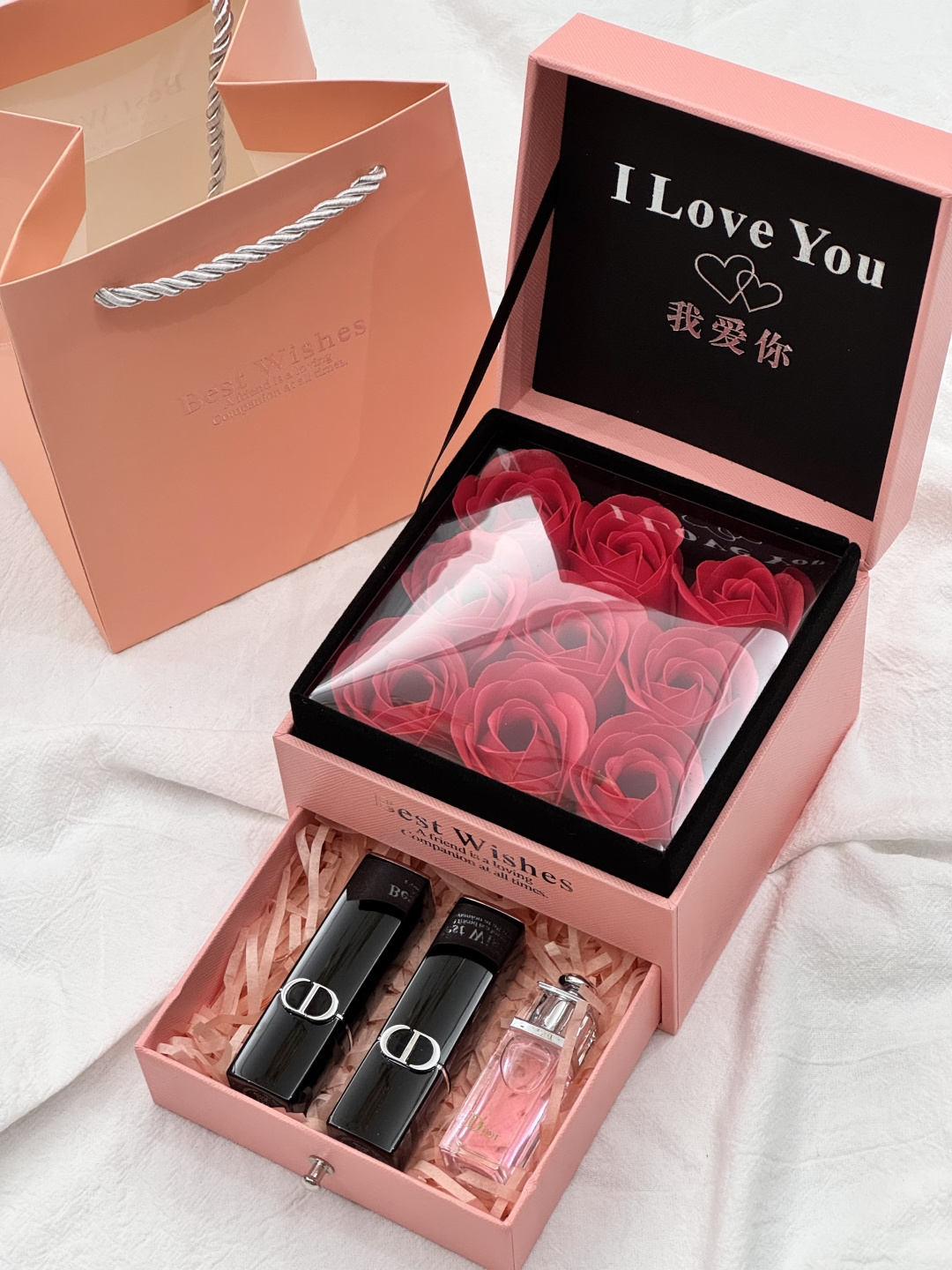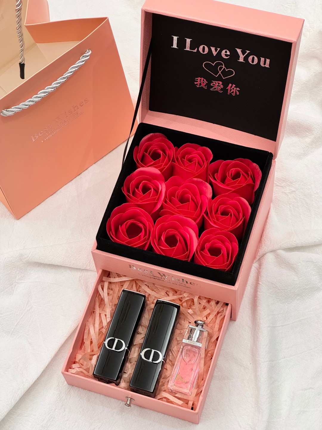 关于礼物 我选了很久 但 你喜欢 这件事 我从没犹豫过 玫瑰的仪式感真的能让女士们一眼上头 生活中总有不期而至的美好 为你的爱情助力 表白神器 不凋谢的永生花 就像不落幕的爱 感情升温神器无疑了 甜蜜指数将爆表 迪奥磁吸魅惑玫瑰花抽屉礼盒 5 20情人节限定 毒家喔 就一批十几盒 兄弟姐妹萌冲 开盖即是惊喜 推开便是我们的甜蜜瞬间 爱是双向奔赴 就像这扇门 轻轻一开 你和我 刚刚好