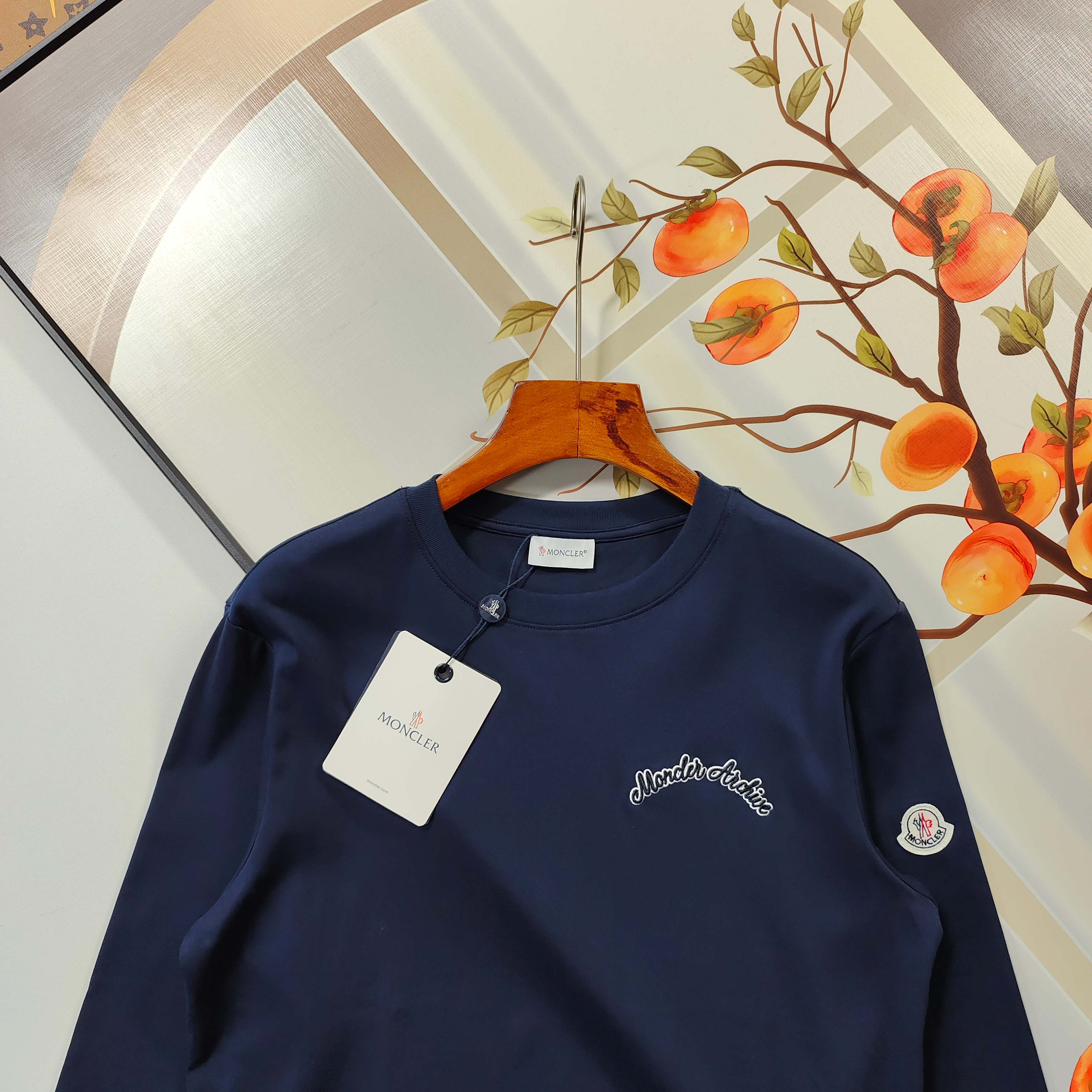 此款售后年末 尺码M 2XLMONCLER盟可睐蒙口长袖T恤 2026早春经典胸前小标字母刺绣情侣打底衫