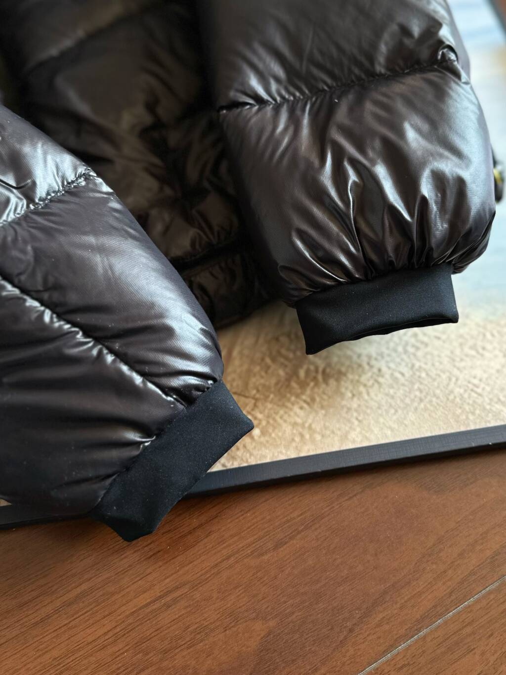 面料为涤纶暗格 市面无同款面料 定制定染色后再做防水 为还原原版质感与手感 打样无数次才最终满意 里布工艺同样复杂 生产周期漫长