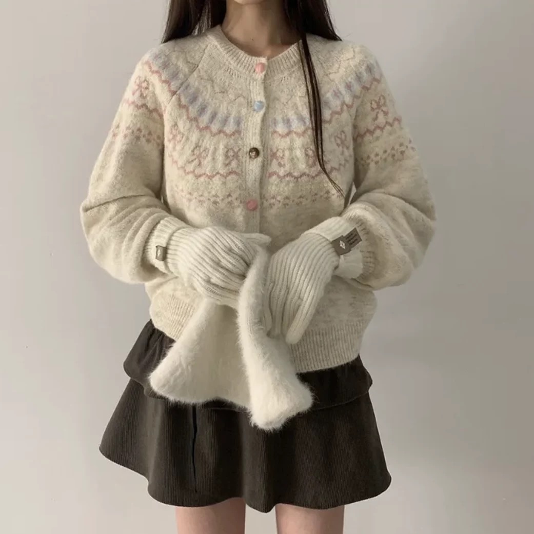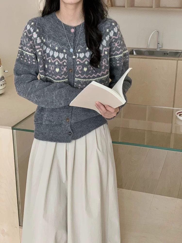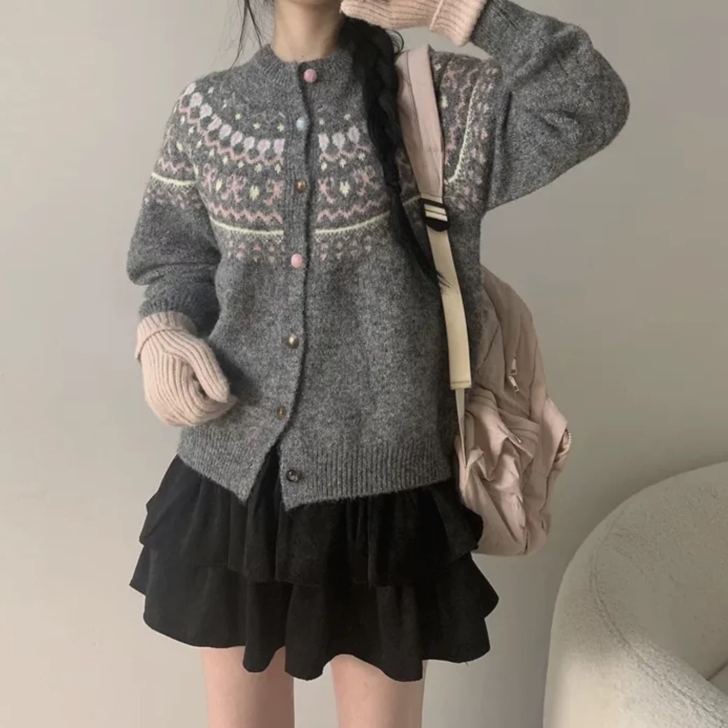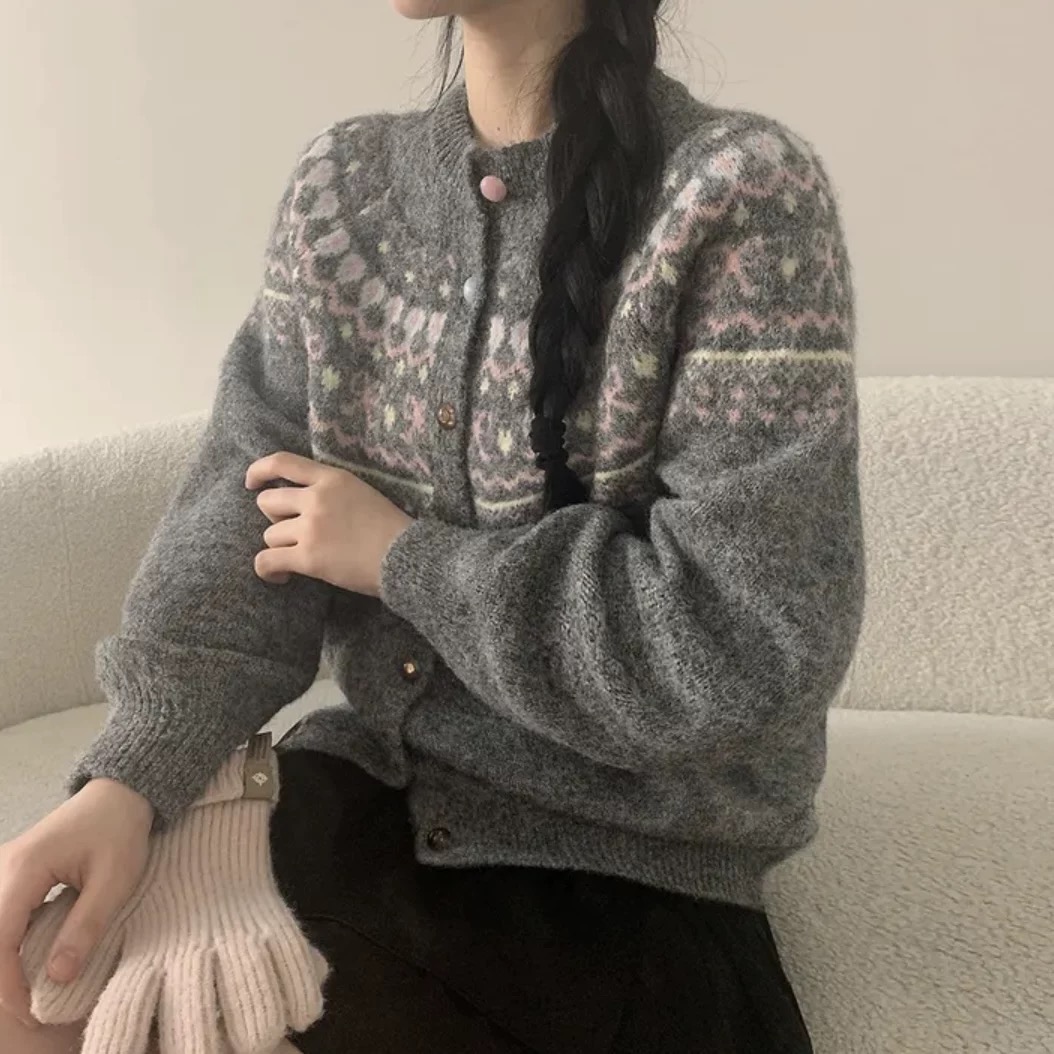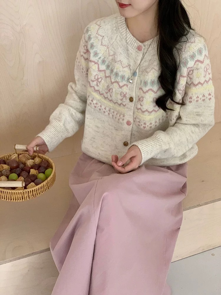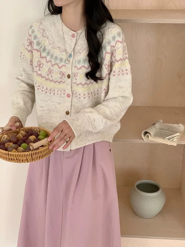批费尔岛提花针织开衫软糯费尔岛提花开衫毛衣外套女2025新款休闲复古针织减龄上衣 把 冬日童话 织进毛衣里 这件开衫甜到犯规