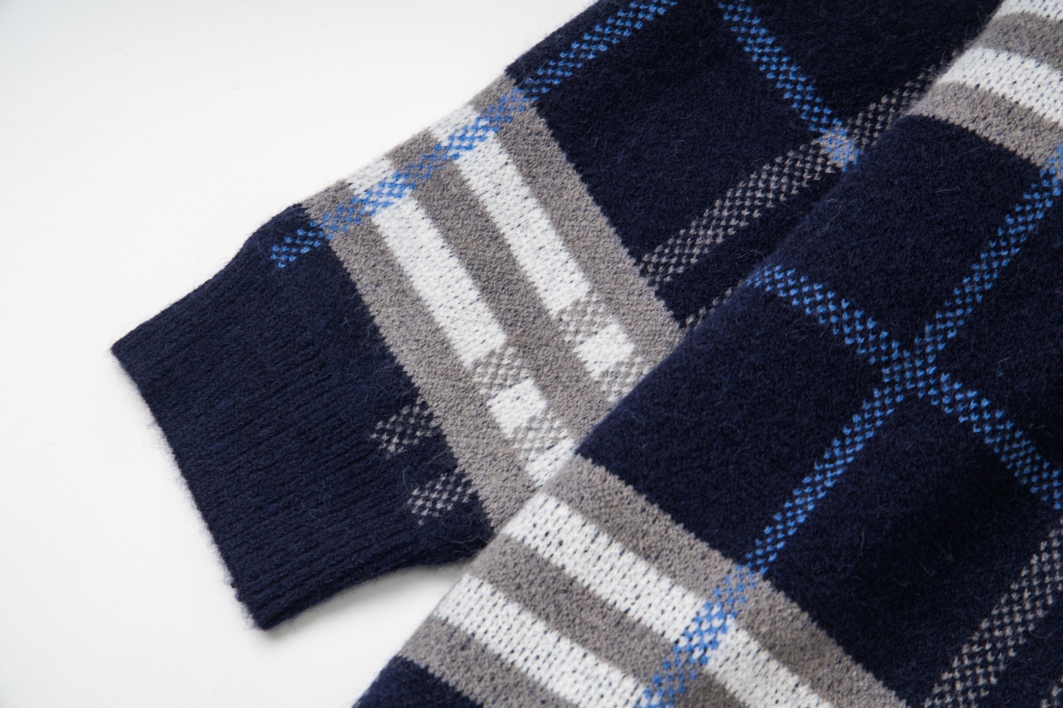 面料 25ss经典款巴宝莉羊毛针织外套 采用羊毛与马海毛的混纺面料 结合了羊毛的保暖性和透气性 以及马海毛的柔软光泽和弹性 使得夹克既舒适又时尚 胸前经典皮标装饰彰显了品牌的独特风格和历史传承