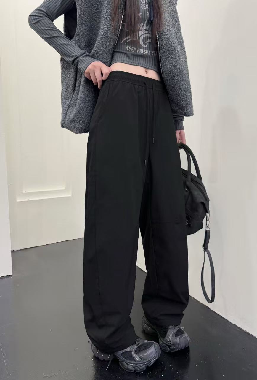 裤型是慵懒阔腿款 抽绳腰头随性又显瘦 搭配短款上衣 羽绒马甲都巨有范儿 日常出街 通勤上班都能穿出高级感