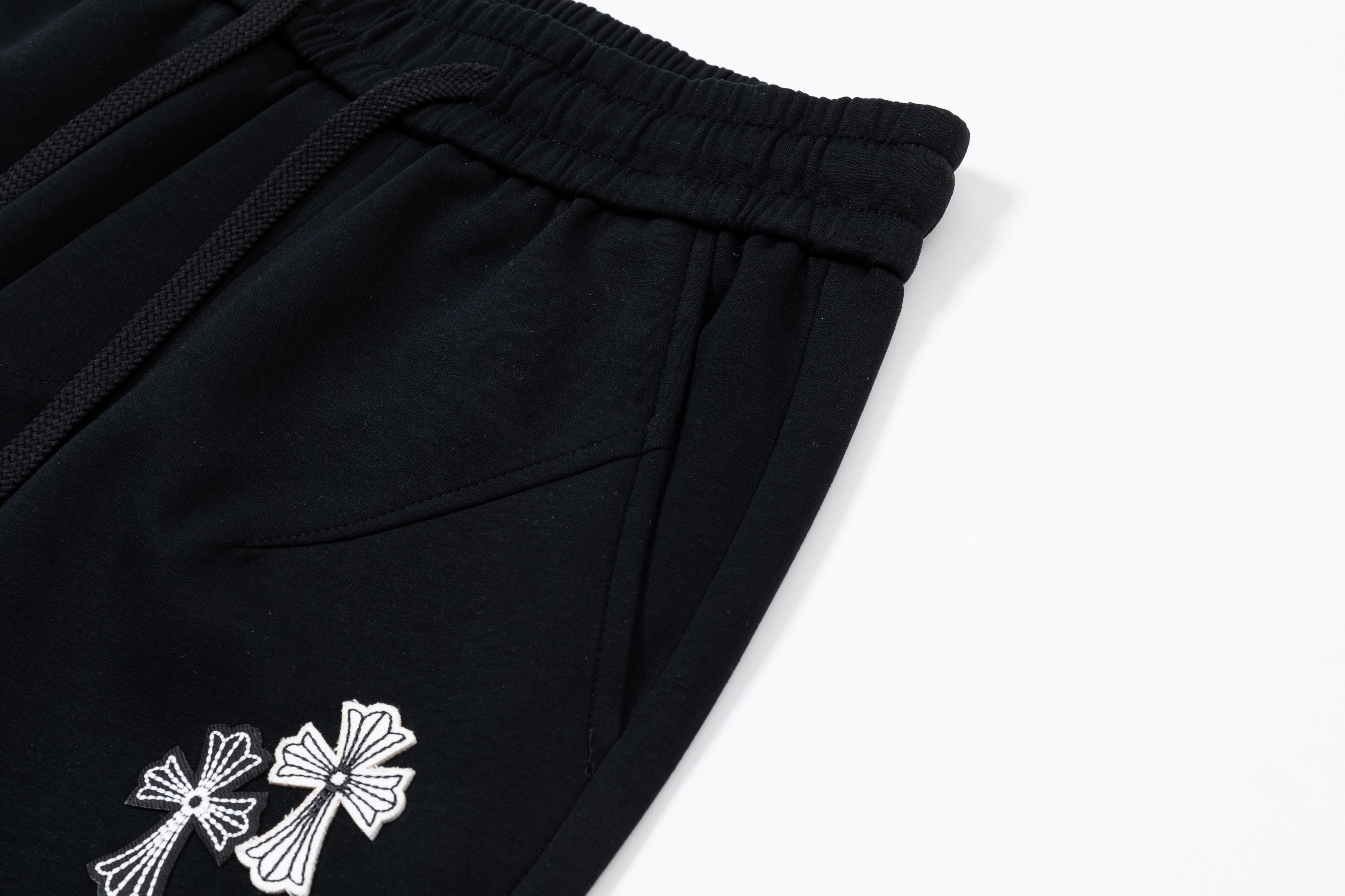 克罗心 2025秋冬新款休闲阔腿长裤 刺绣 logo工艺 高端版本 专柜定制面料 透气舒适度高 细节无可挑剔 品牌元素设计理念 体现高品质 手感细腻柔软 呈现休闲裁剪 上身版型超赞 颜色 黑色 码数 M 4XL