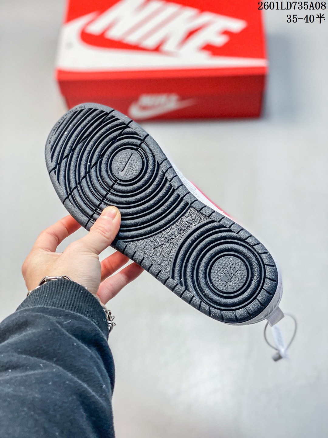 耐克 NIKE 女子运动鞋 COURT BOROUGH LOW 小空军低帮板鞋 1 其皮革材质的鞋面结合网眼鞋舌 在出众外观与质感的同时提供稳固支撑 并且提升透气性 弹力鞋垫 耐穿舒适 增加缓震性能 2 耐克COURT也是耐克性价比比较高的鞋款 COURT鞋型很像AJ1LOW 鞋底很像AF1 当然还是有差别的 毕竟产品用料 定位都不一样 性价比来说还是不错的选择 3 这款鞋子加上外底采用扭转点设计 流畅启停 灵活抓地 鞋身有着耐克logo标志 展现品牌价值