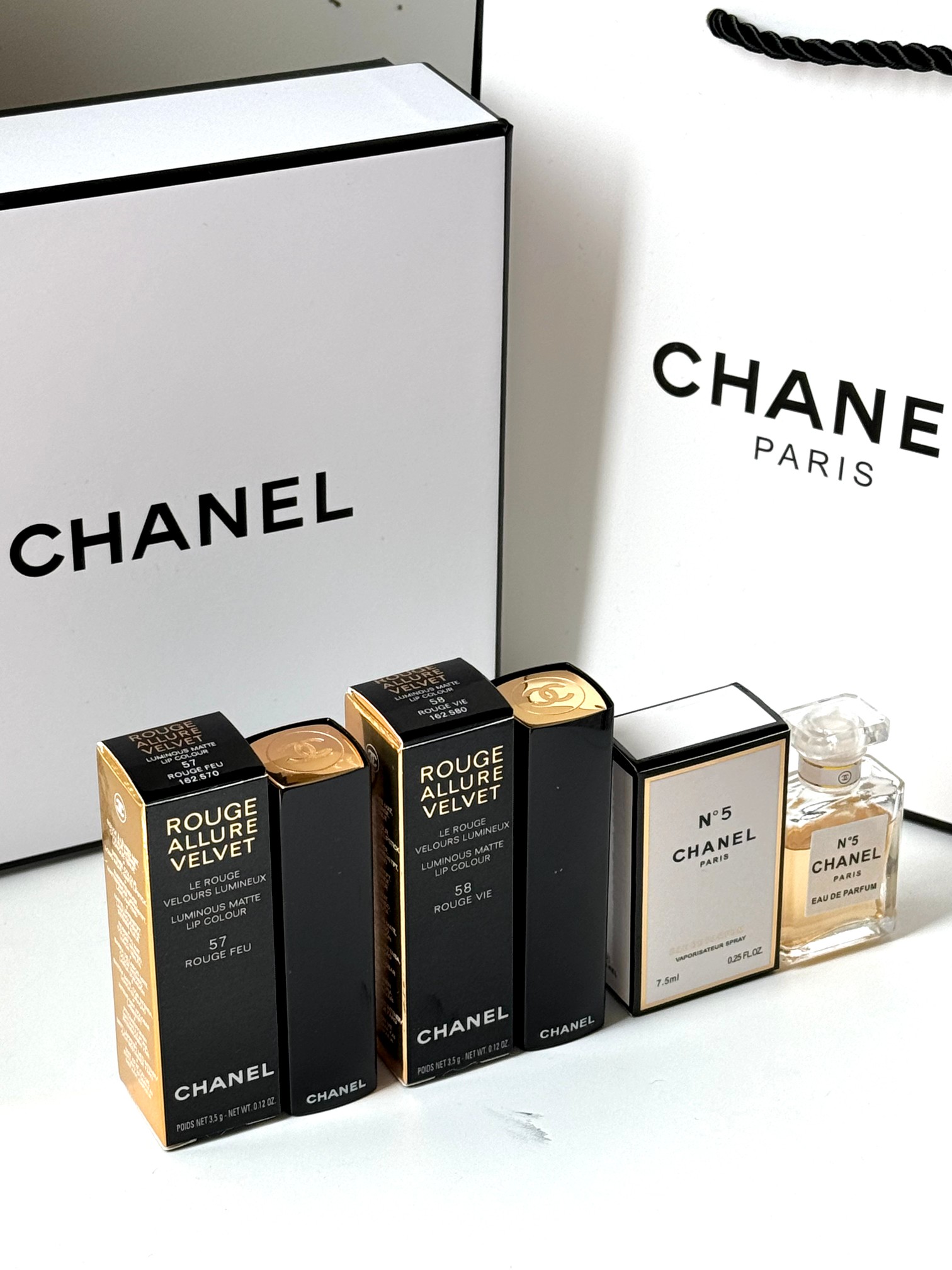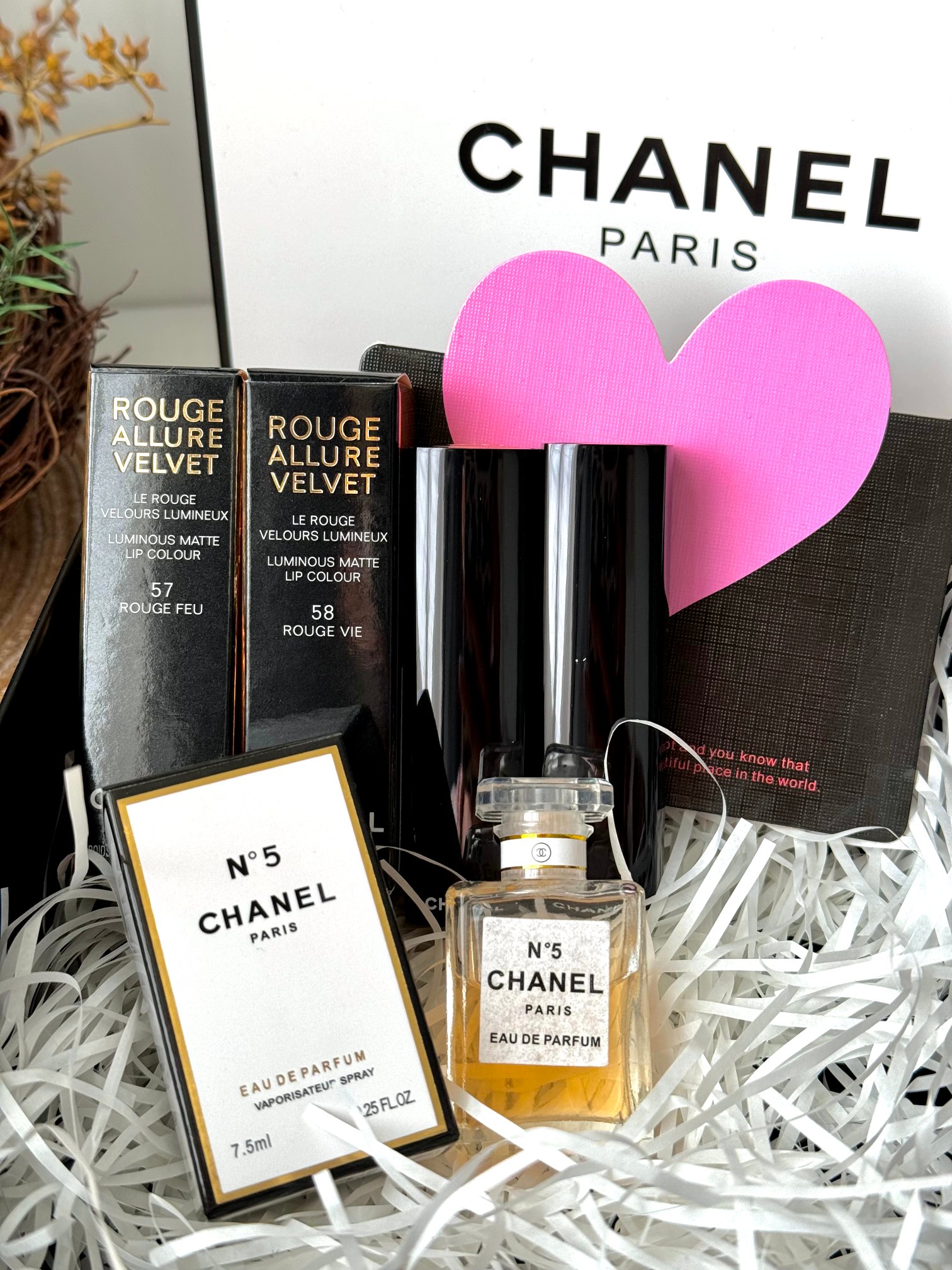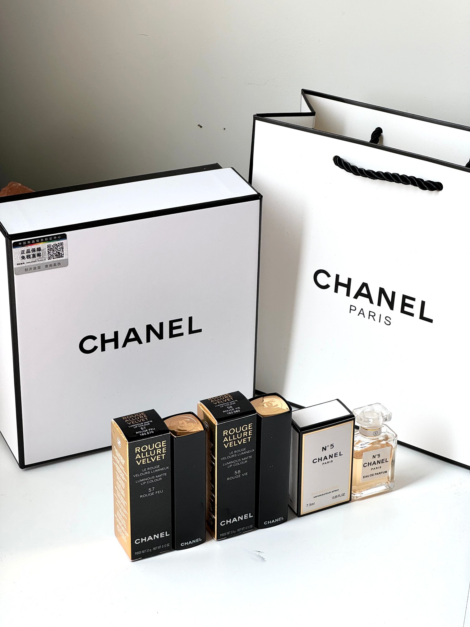 内含 香奈儿按压口红N57 N58 附赠黄N5香水7 5ml 爱心贺卡 拉菲草 震撼业界 掌柜重磅推荐给大家 买到即是赚到 正儿八经的渠D货源 每盒都带正p保障免税直邮防伪贴 刮开涂层扫码输串码即可显示为正规产品 毒家细节