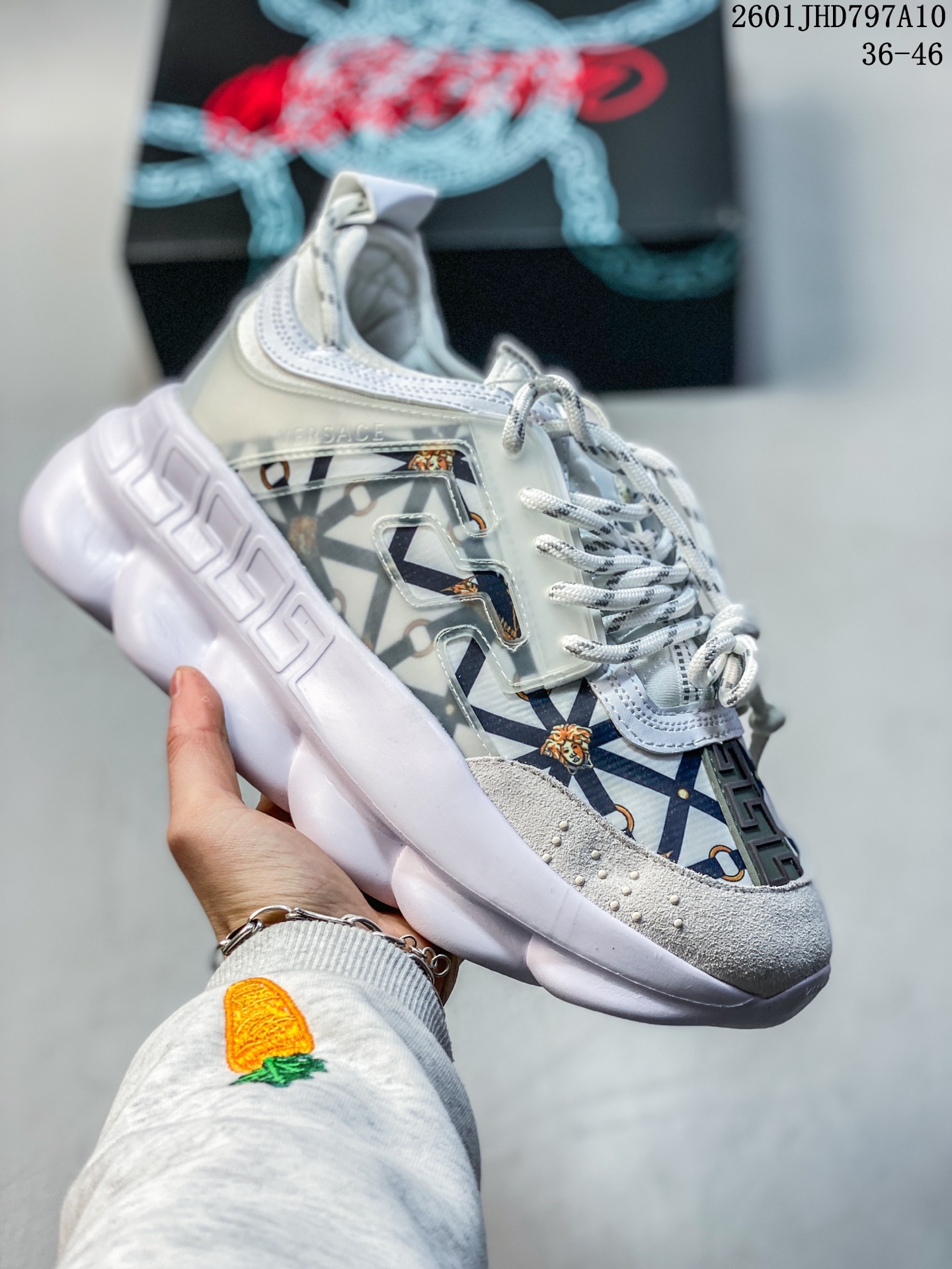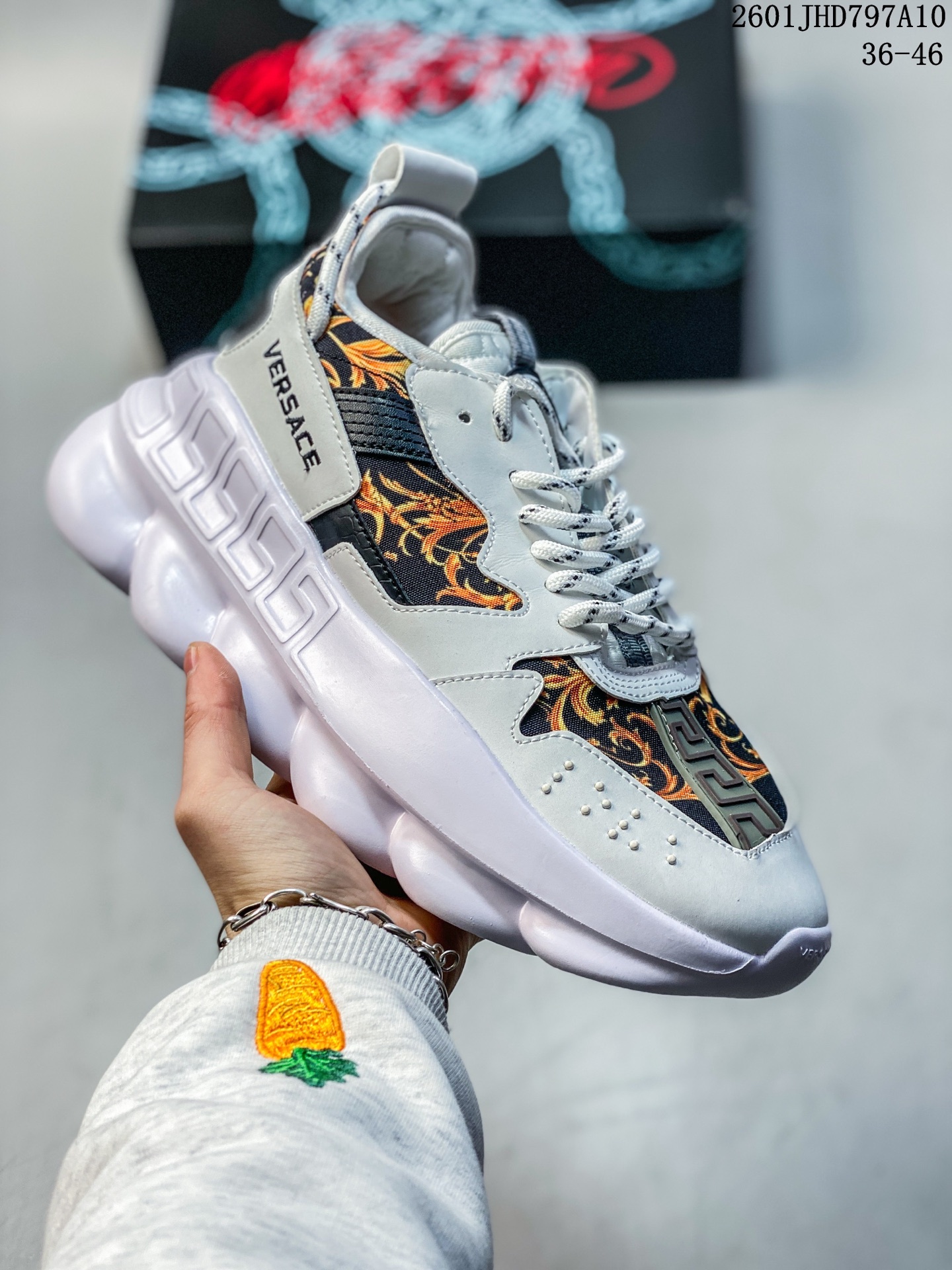 范思哲VERSACE 2021休闲新款男鞋复刻精品欧美潮流元素 设计师在每一期都专业打造出范思哲每一款休闲鞋风格不一 鞋面采用意大利进口小牛皮面料 高端大气上档次 舒适羊皮里上脚高舒适 给你低调奢华的舒适体验 Size 如图 ID 01JHD797A10
