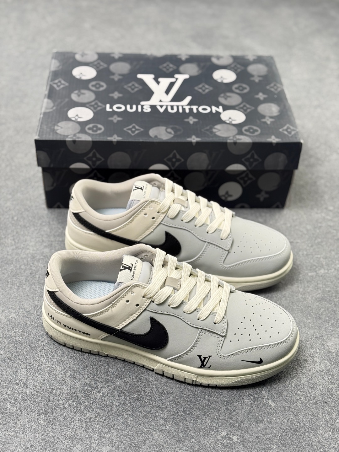 海外爆款限量发售 高端定制Nike SB Dunk Low 路易威登联名 lv白灰黑配色 高端定制 低帮休闲板鞋 定制鞋盒 大厂纯原品质出货 超高清洁度 皮料切割干净无任何毛边 细节完美