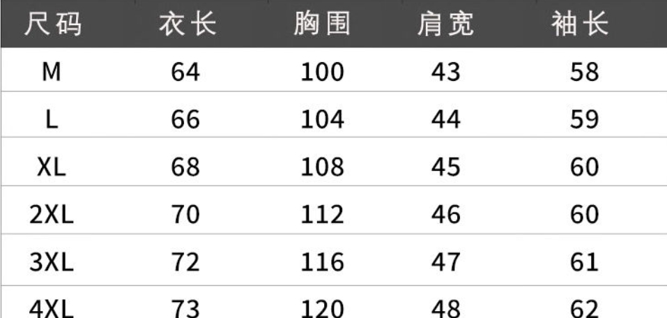 尺码 M 4XL