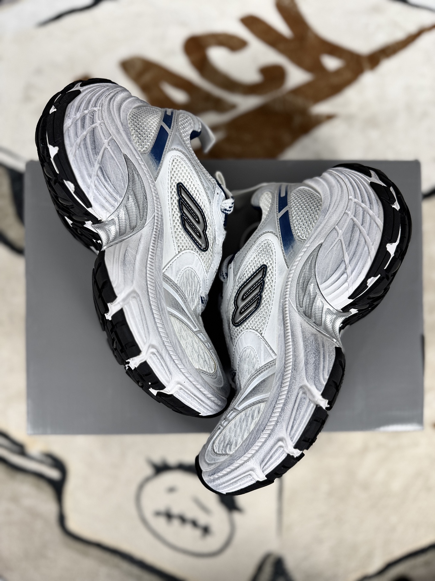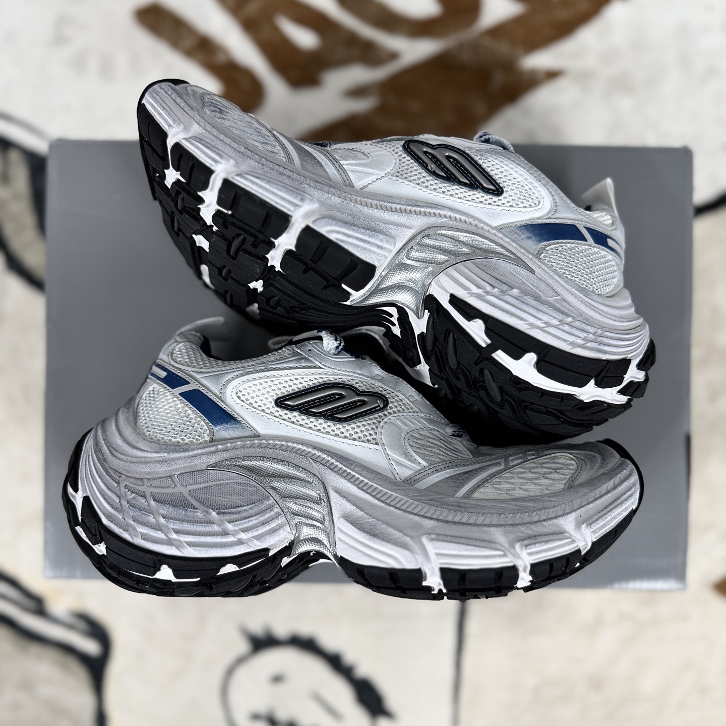 Balenciaga巴黎世家10XL老爹鞋是该品牌经典的老爹鞋系列之一 鞋底厚度可达7cm左右 采用多层鞋底设计 结合橡胶材质 既保证了支撑性 又营造出强烈的视觉冲击 是典型的 老爹鞋 风格 鞋头微微上翘 鞋尾圆润 整体线条流畅 兼具时尚感与舒适性 部分款式带有独特的弧度设计 使鞋底看起来更加立体 鞋身 鞋舌或鞋底通常印有 Balenciaga 品牌logo 字体设计独特 成为辨识度极高的标志 鞋面材质 多采用透气网面 如莱卡冰丝网 与皮革 人造革等材质拼接 兼顾透气性与耐用性 网面材质柔软轻盈 适合春夏季节穿着 鞋底材质 以橡胶为主 部分款式融入轮胎纹理或特殊橡胶配方 增强防滑性和耐磨性 鞋底的多层结构设计 不仅增加了厚度 还提供了良好的缓震效果 工艺细节 缝线精细 边缘处理光滑 鞋舌 鞋帮等部位的加固设计提升了整体稳定性 部分高端版本还会采用手工制作或特殊工艺 如刺绣 压纹等 彰显品质 潮流搭配 可与阔腿裤 工装裤 牛仔裤等下装搭配 营造出街头酷感或休闲时尚感 也可搭配短裙 短裤 展现个性与活力 无论是运动风 街头风还是轻熟风 都能轻松驾驭