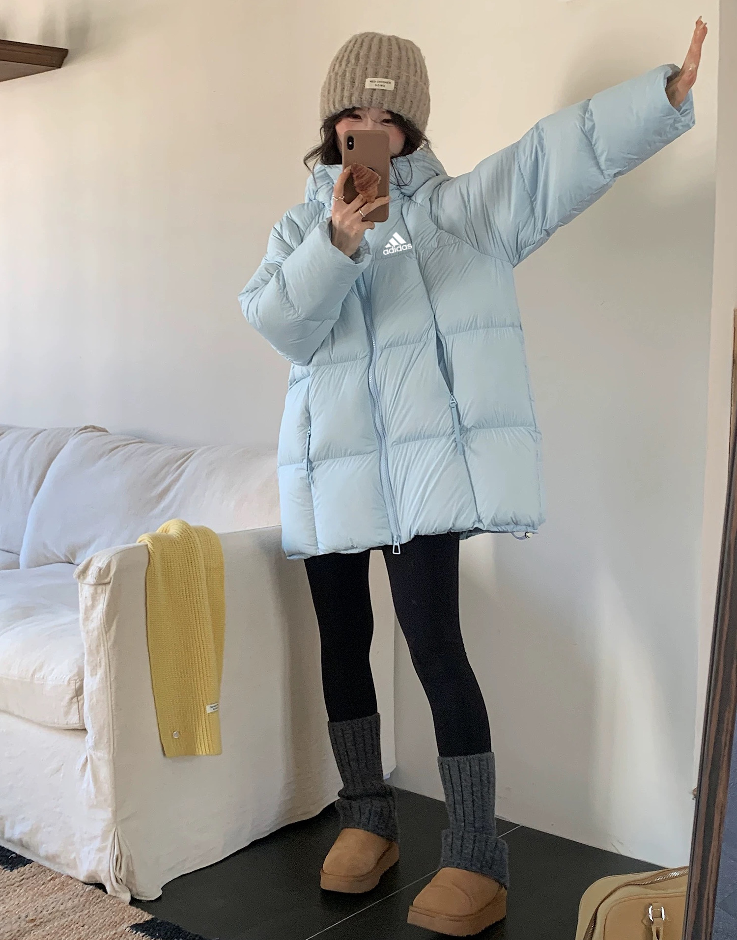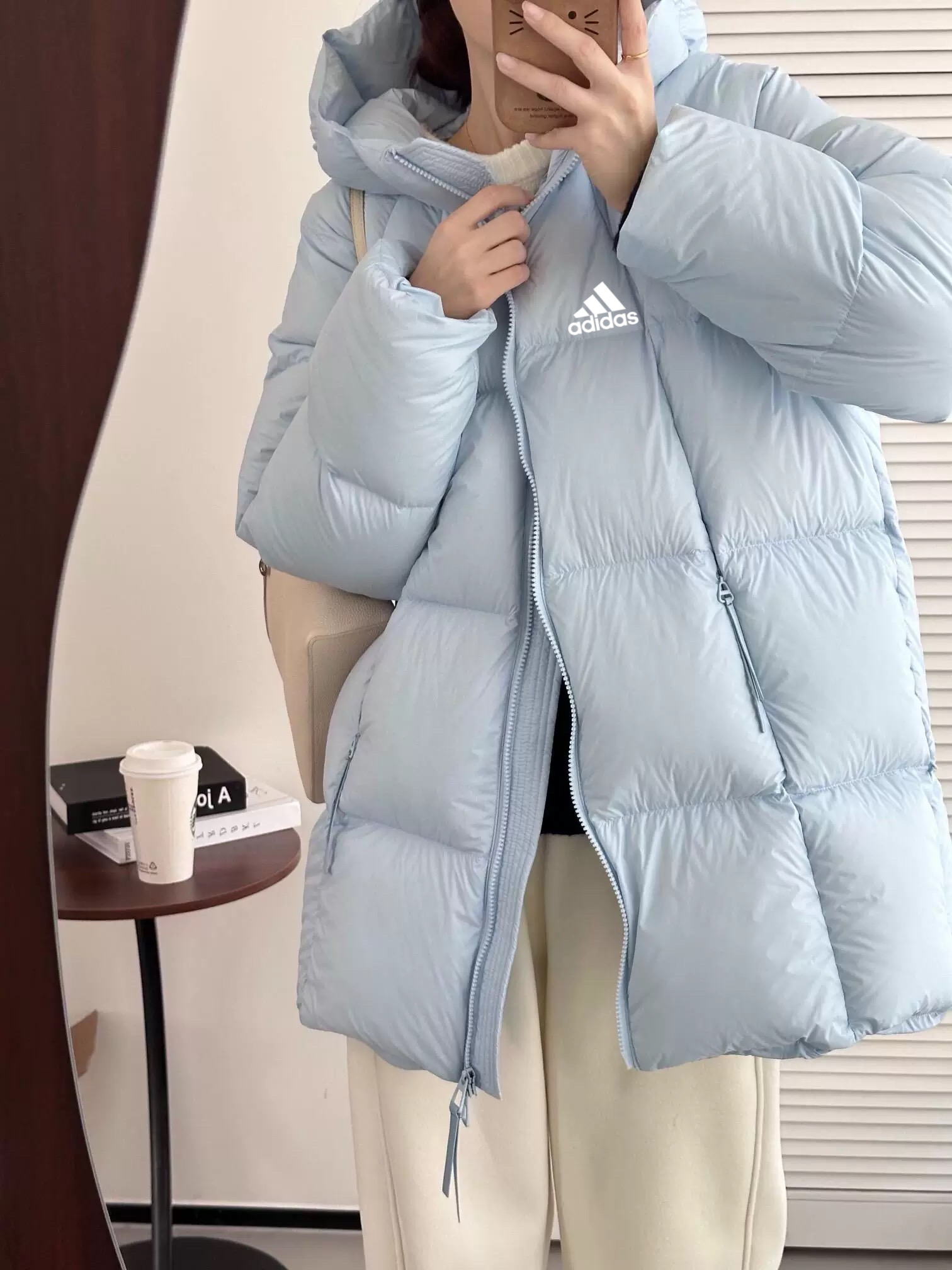 阿迪达斯Adidas超轻无胆90 白鸭绒面包服外套女连帽中长款泡芙加厚羽绒服此款羽绒服采用大朵90绒蓬松度舒适度非常好 质量不是吹的