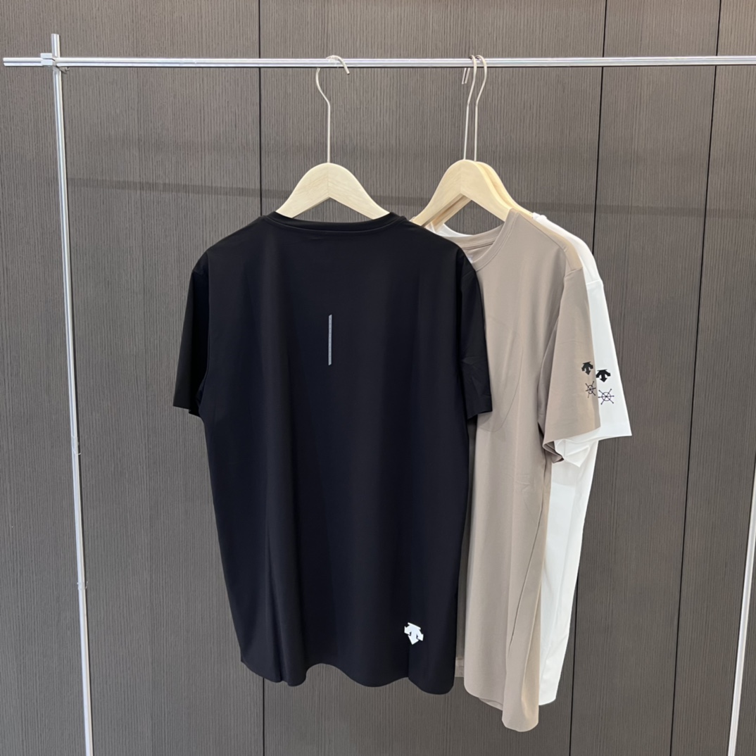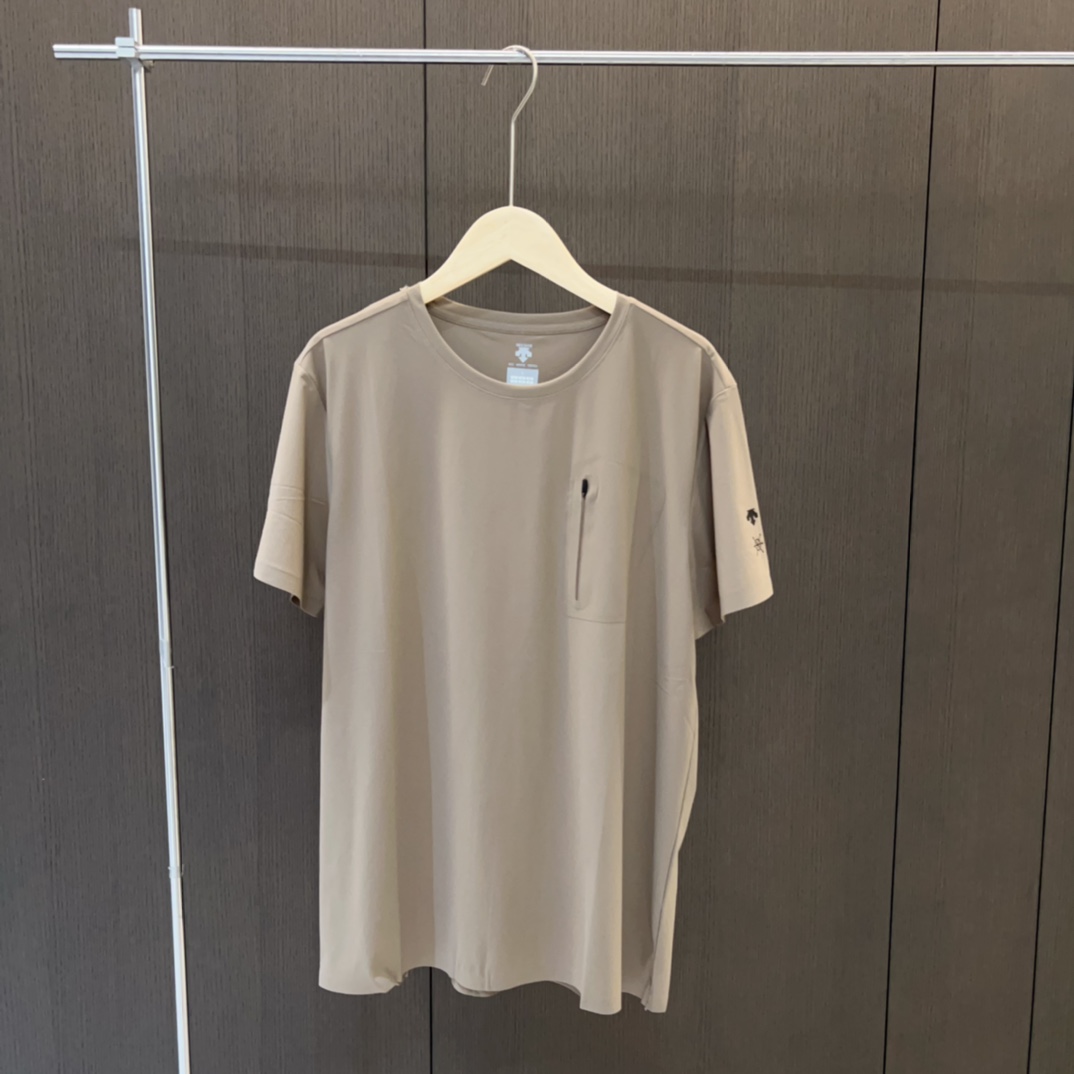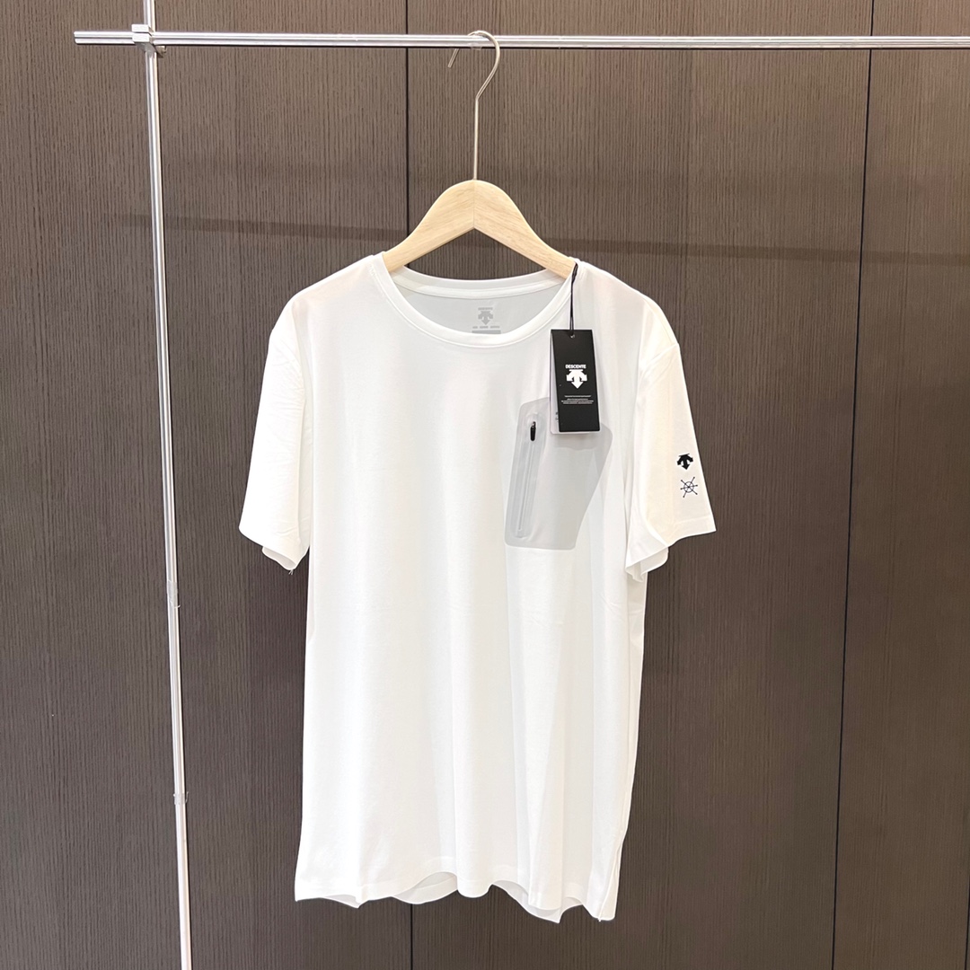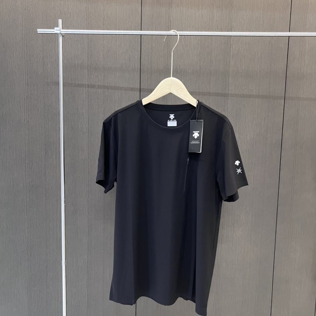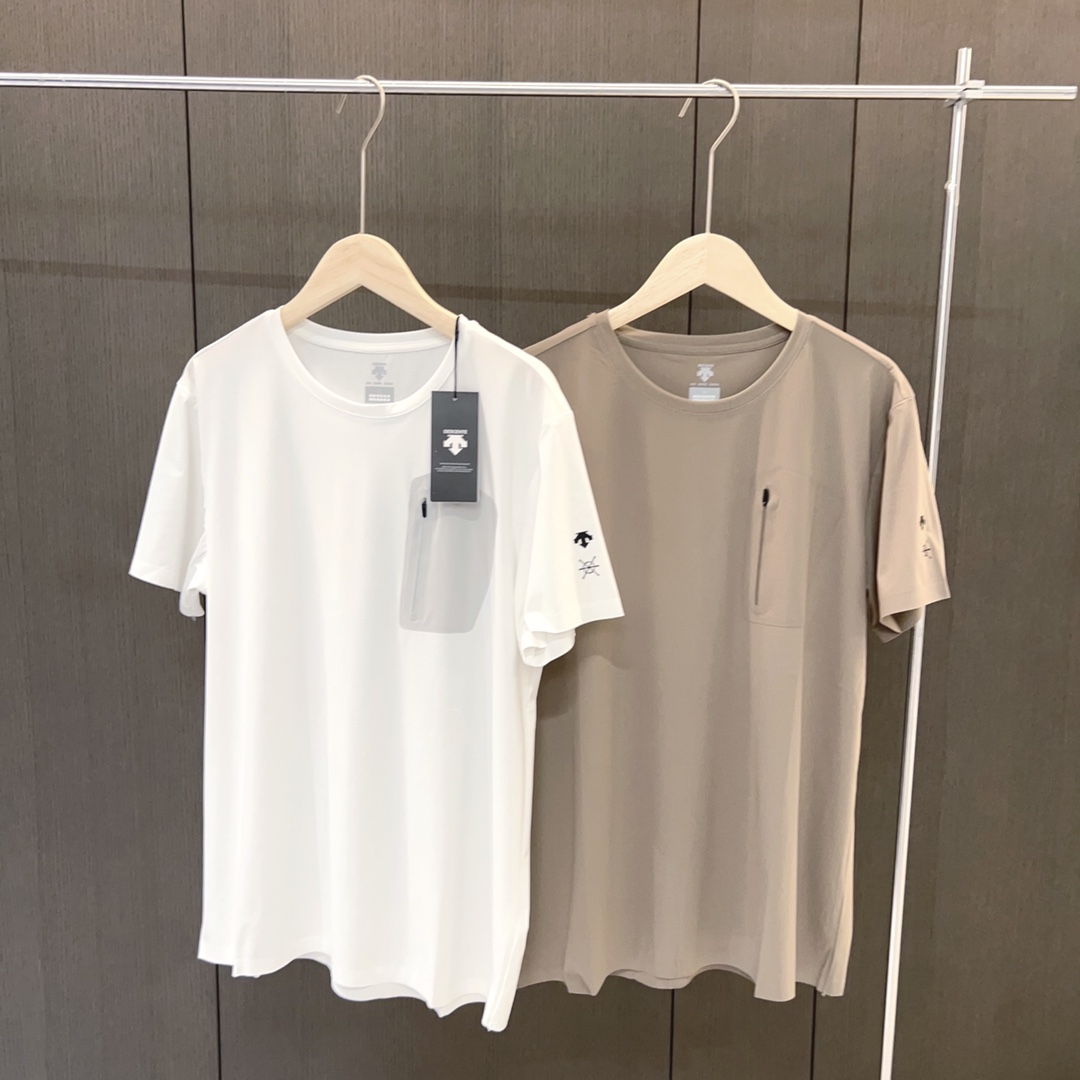 25夏 新品 迪桑特DESCENTE男士圆领速干透气孔带口袋短袖T恤冰丝