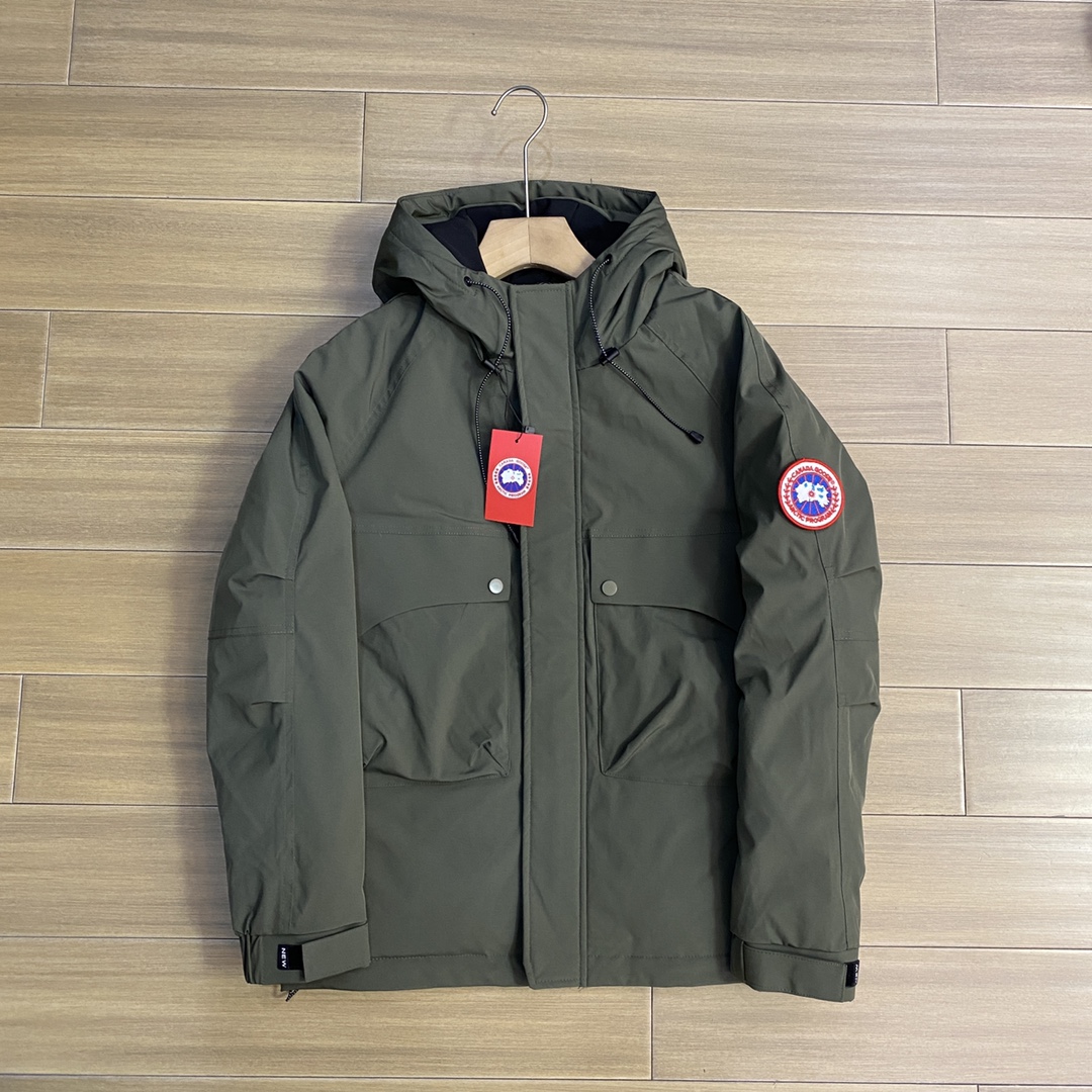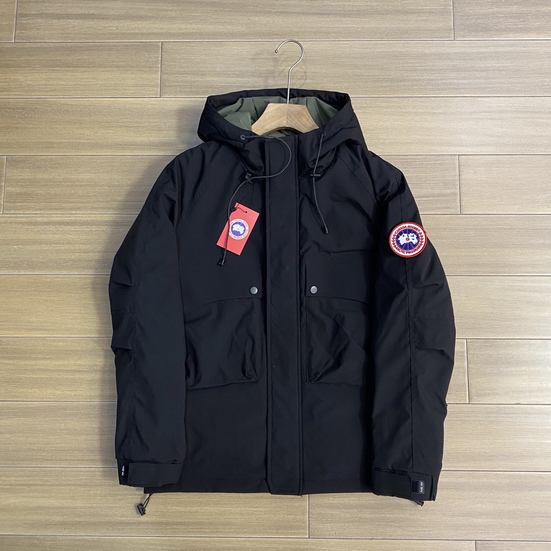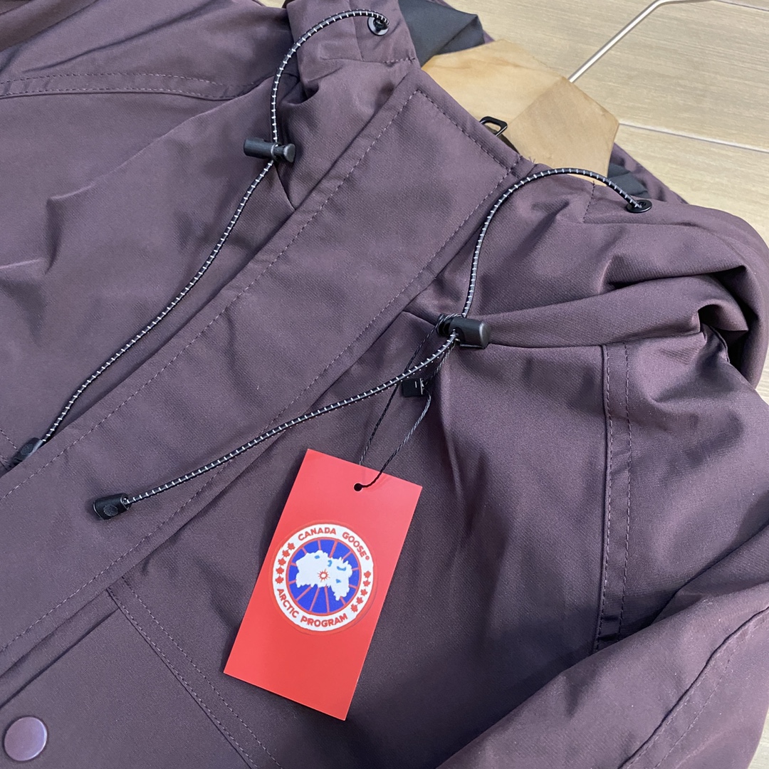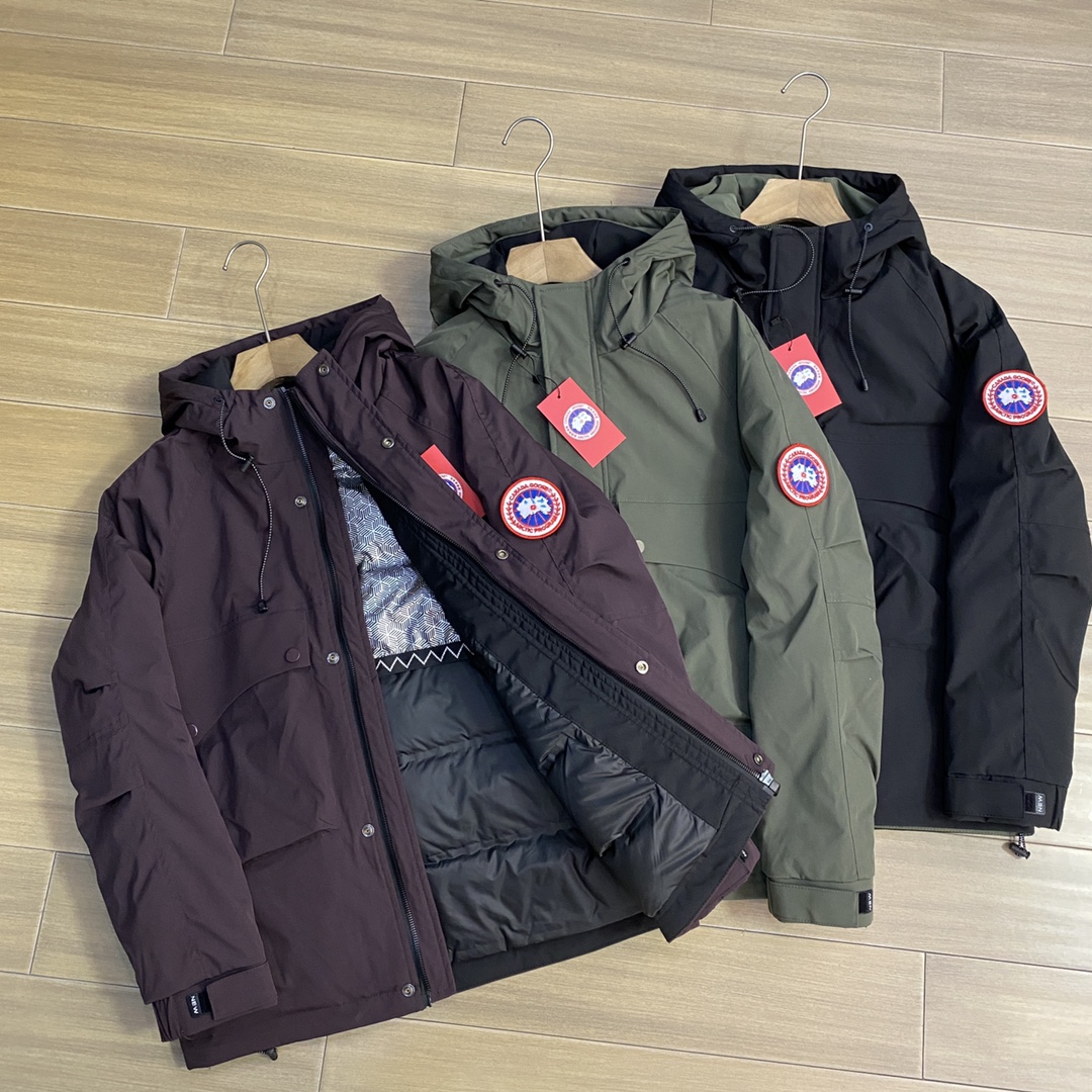 经典红标大鹅冬季限定新款休闲羽绒服外套 一款好看立体感超强的蓬松羽绒服 充绒感十足 不软塌 懂货的老铁都知道 加拿大鹅是被公认最具有保暖性的羽绒服 各大网红 明星 博主也时常穿着街拍 颜色 黑色 军绿色 紫色 尺码 M 4XL