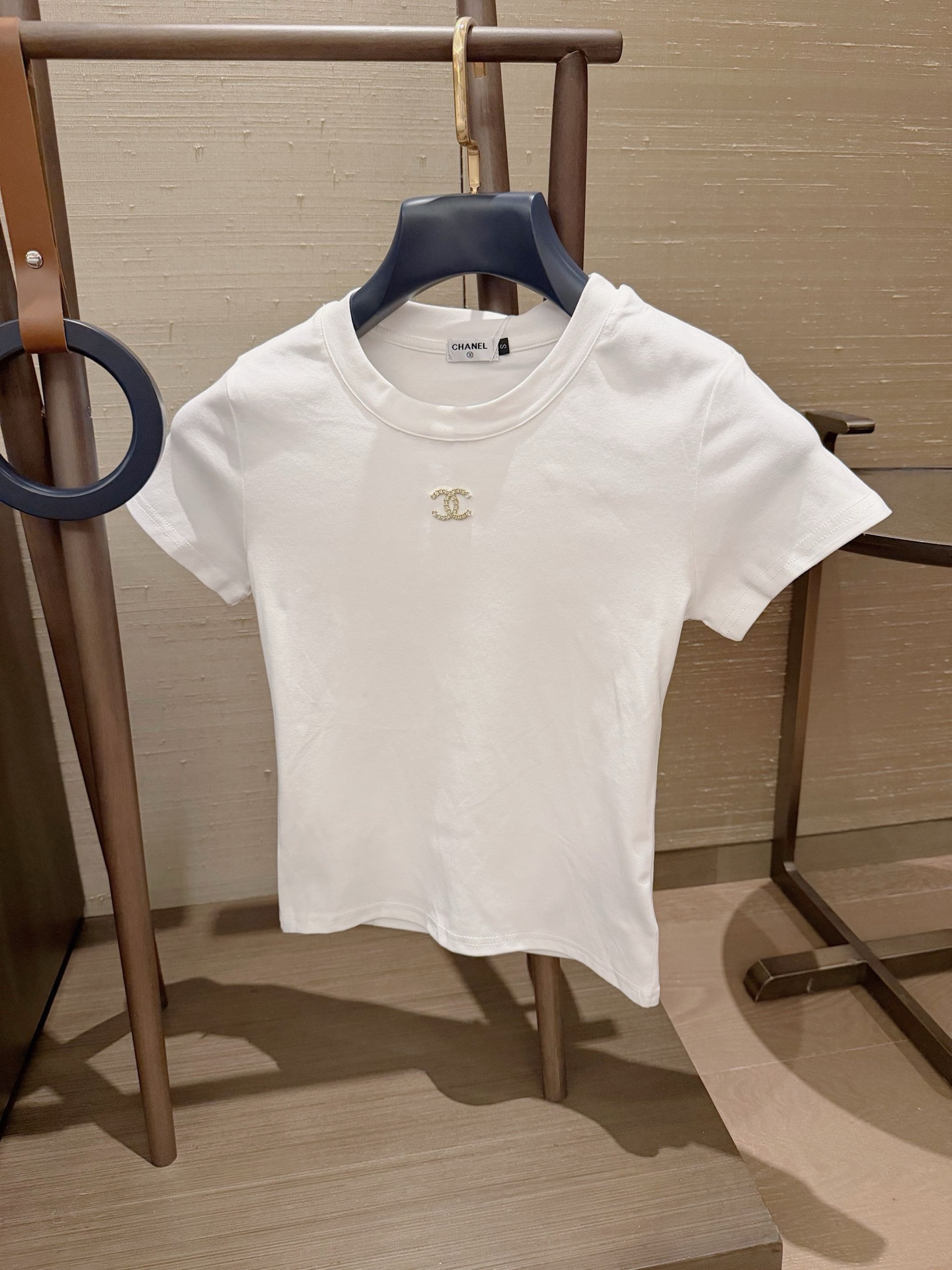 85284508 - Chanel香奈儿小香手缝定制双C圆领短袖T恤 款号 266 480478