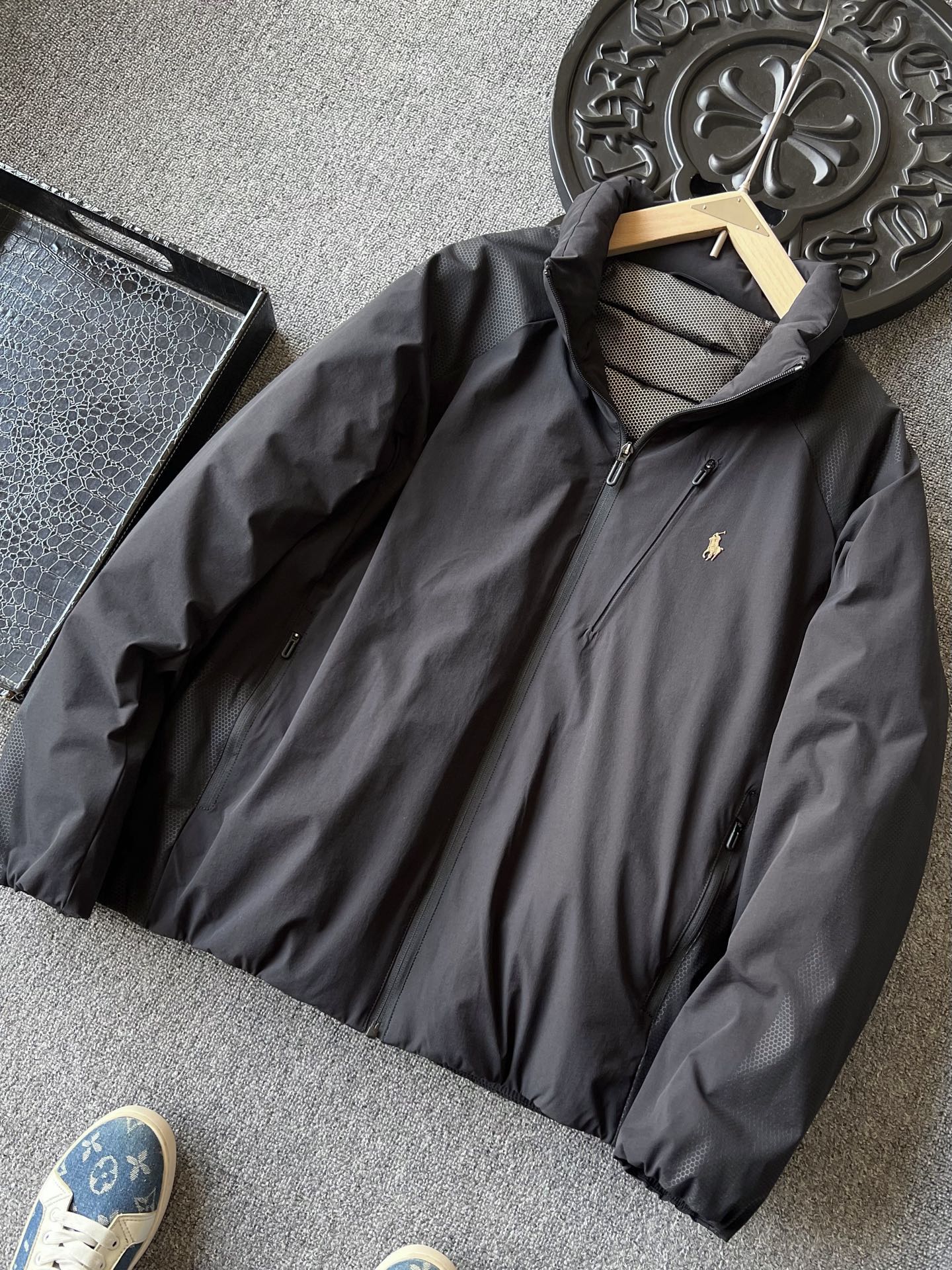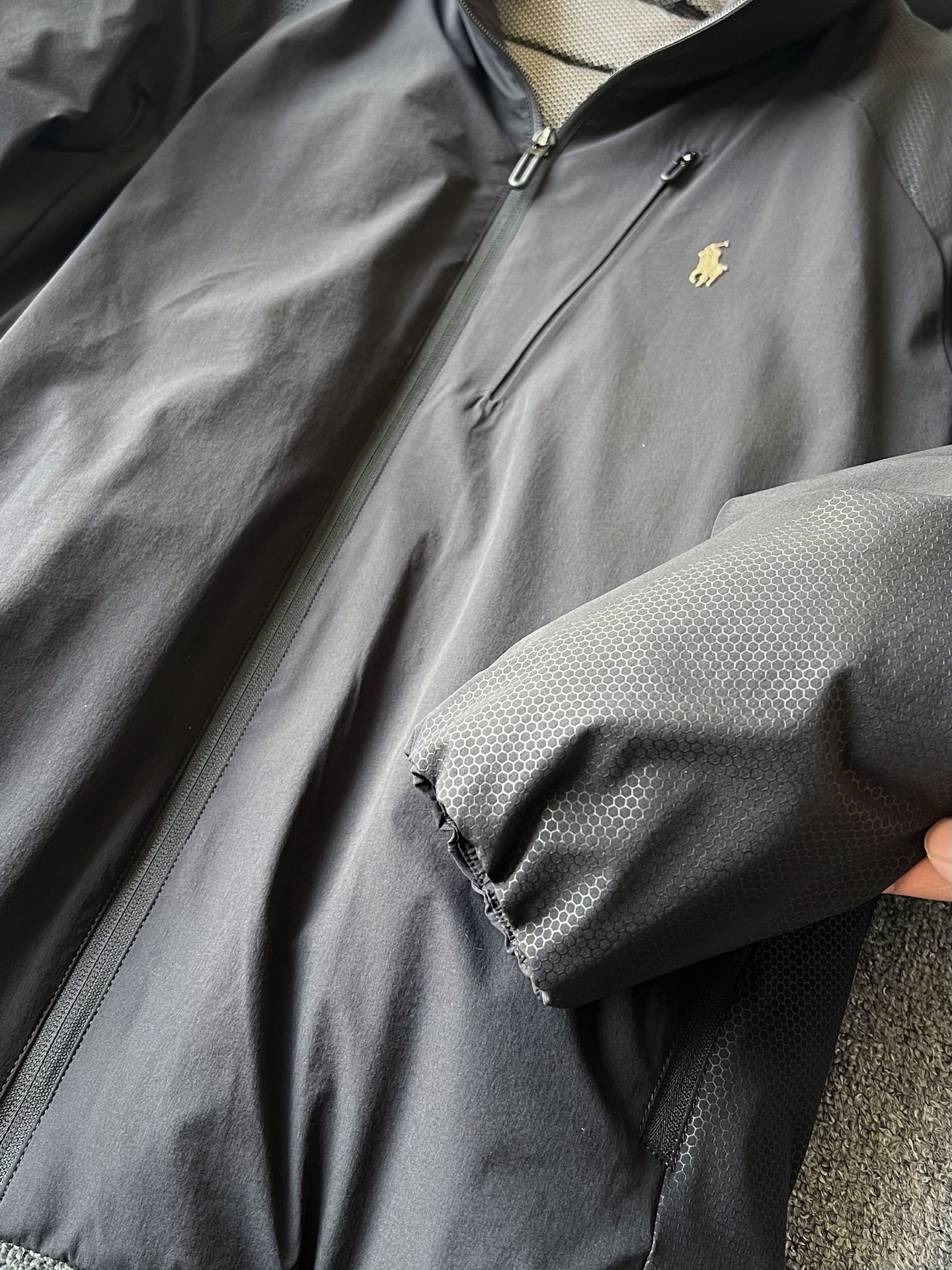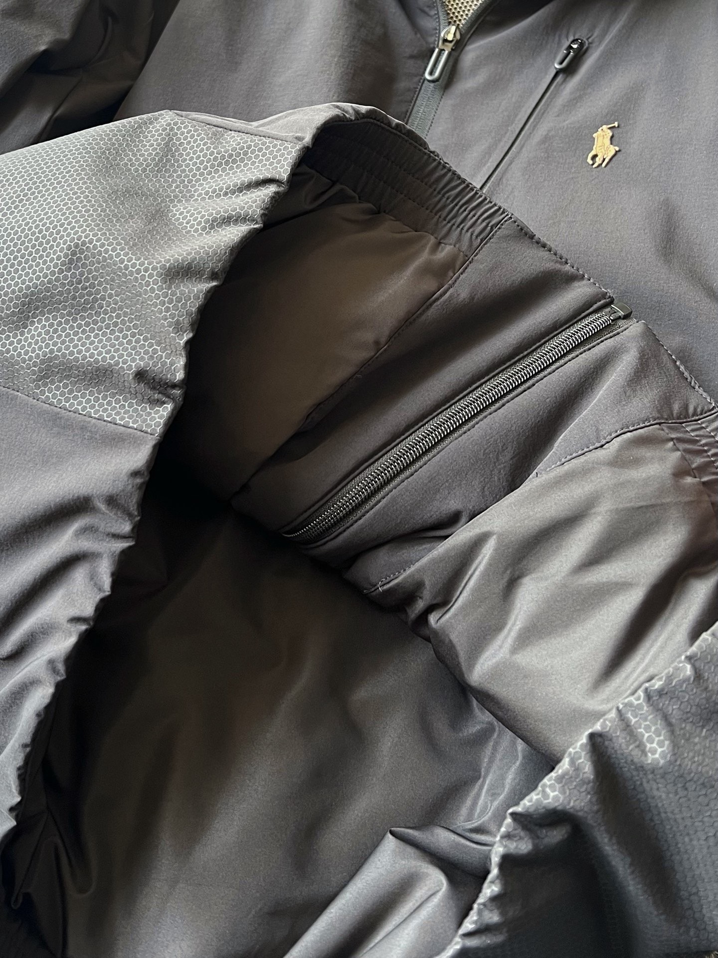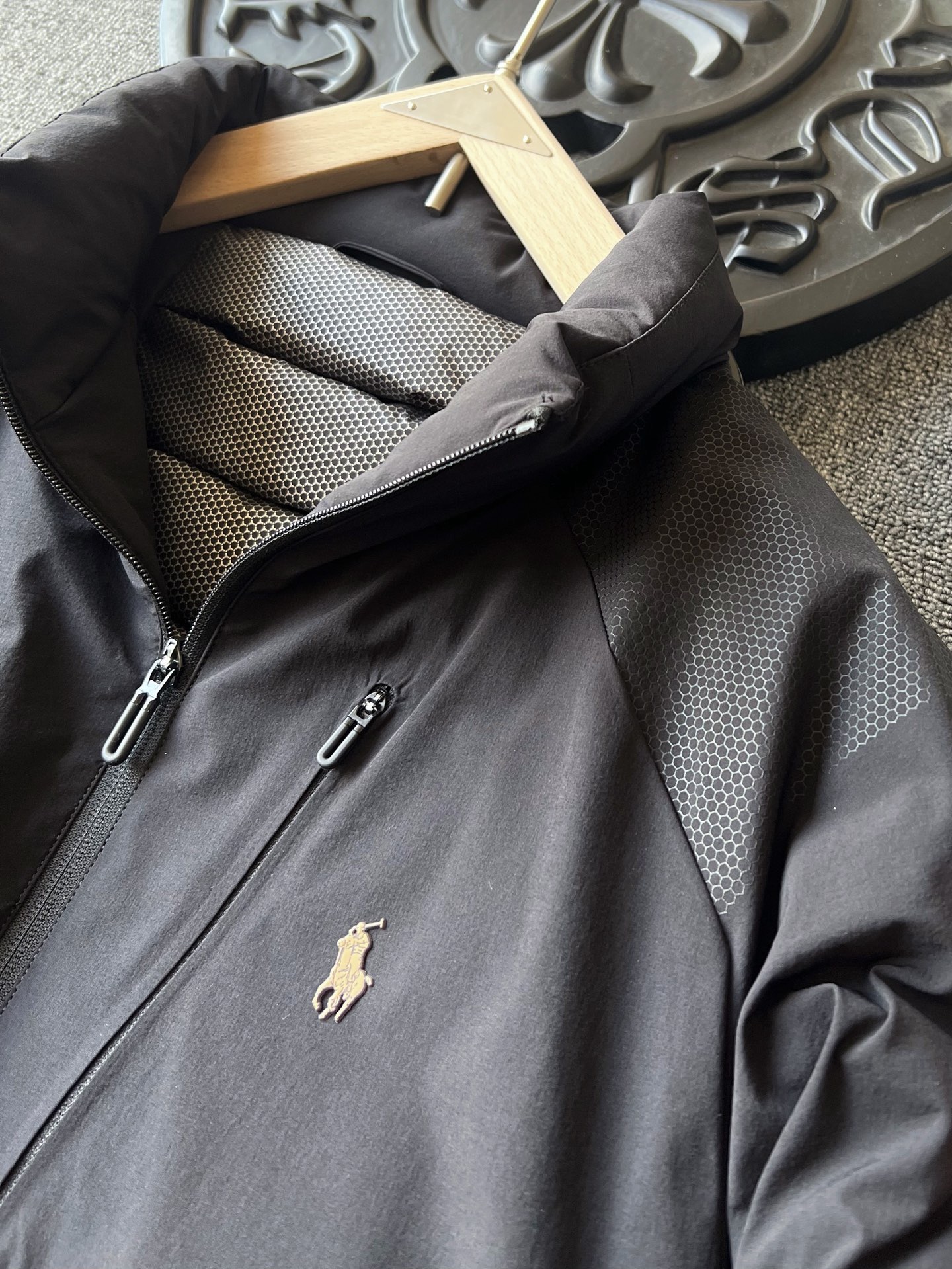 细节细节再细节 Ralph Lauren家商场新款高奢羽绒服 插肩袖设计 彰显运动活力 双肩双袖以及双侧都做了软硅胶蜂窝设计 摸起来质感很好又能增加细节质感 胸前立体拉夫劳伦Polo棕标 手绘线条肌理 十分精致 后背做了石墨烯分仓锁绒工艺 持续发热高效锁温 具有保护肩颈的功能性