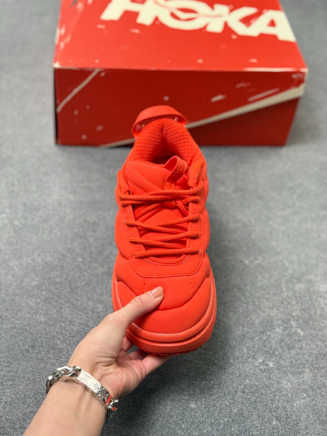 HOKA经典的厚底设计 鞋底采用EVA板材发泡 脚感舒适 减震耐磨透气跑步运动鞋