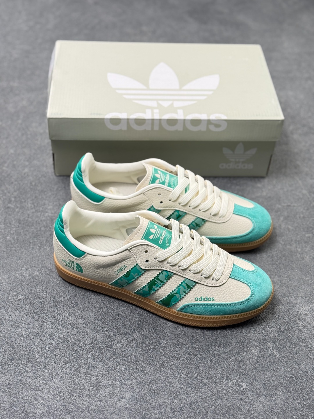 Adidas Originals Samba OG DIY 桑巴舞系列 北面联名 夏季时尚百搭低帮休闲运动板鞋 蓝白棕配色