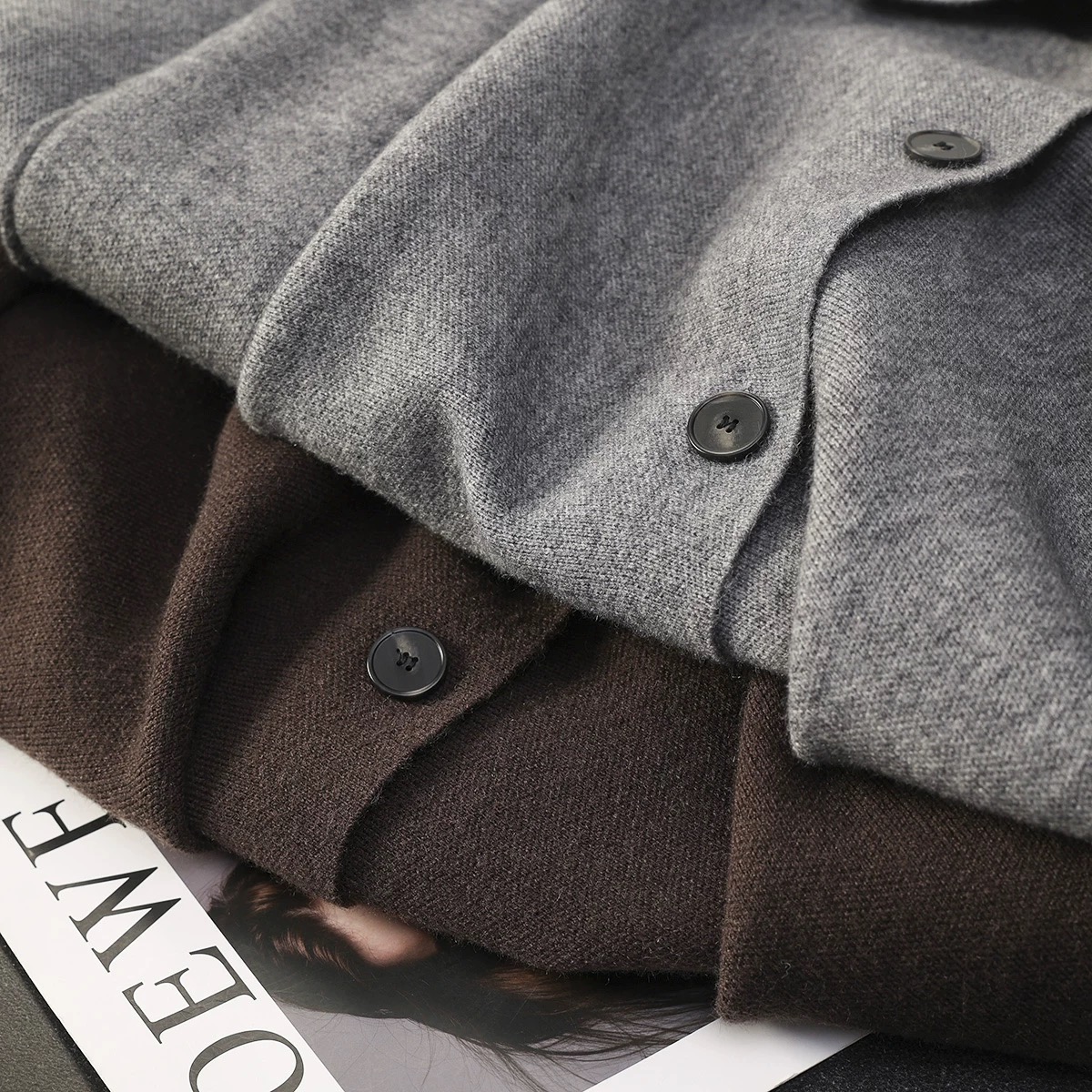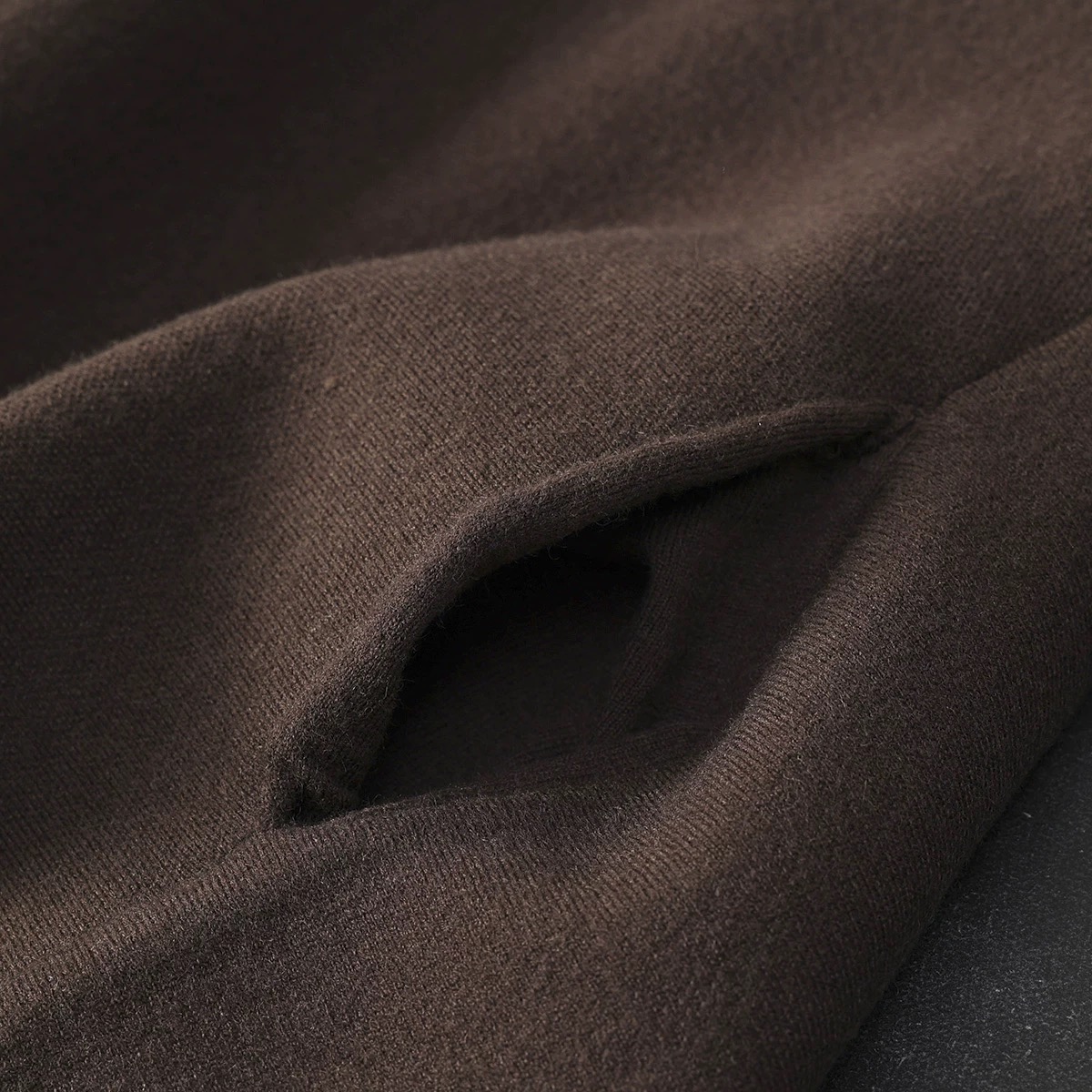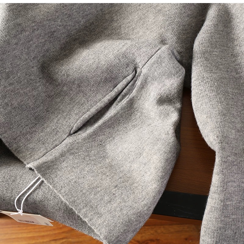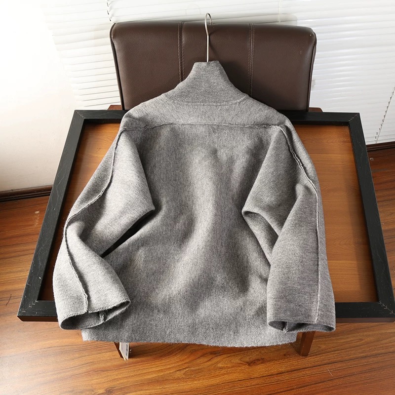 慵懒范宽松毛衣外套 选用羊毛混纺针织纱线 有一定的厚度 织面紧致密实 手感柔软