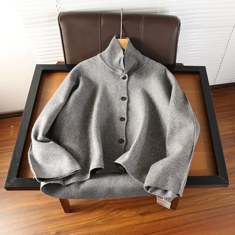 批C S专柜同款2025新款休闲廓形高级感羊毛针织夹克外套上衣女 北欧小众 女装2025秋冬新款羊毛混纺宽松针织开衫