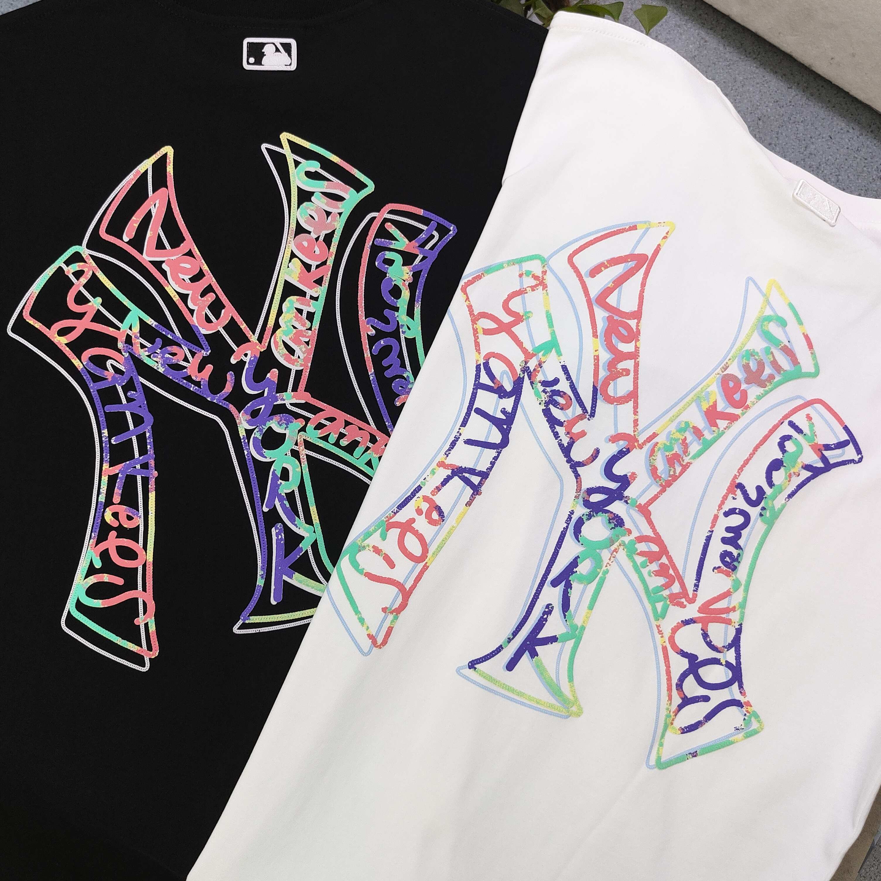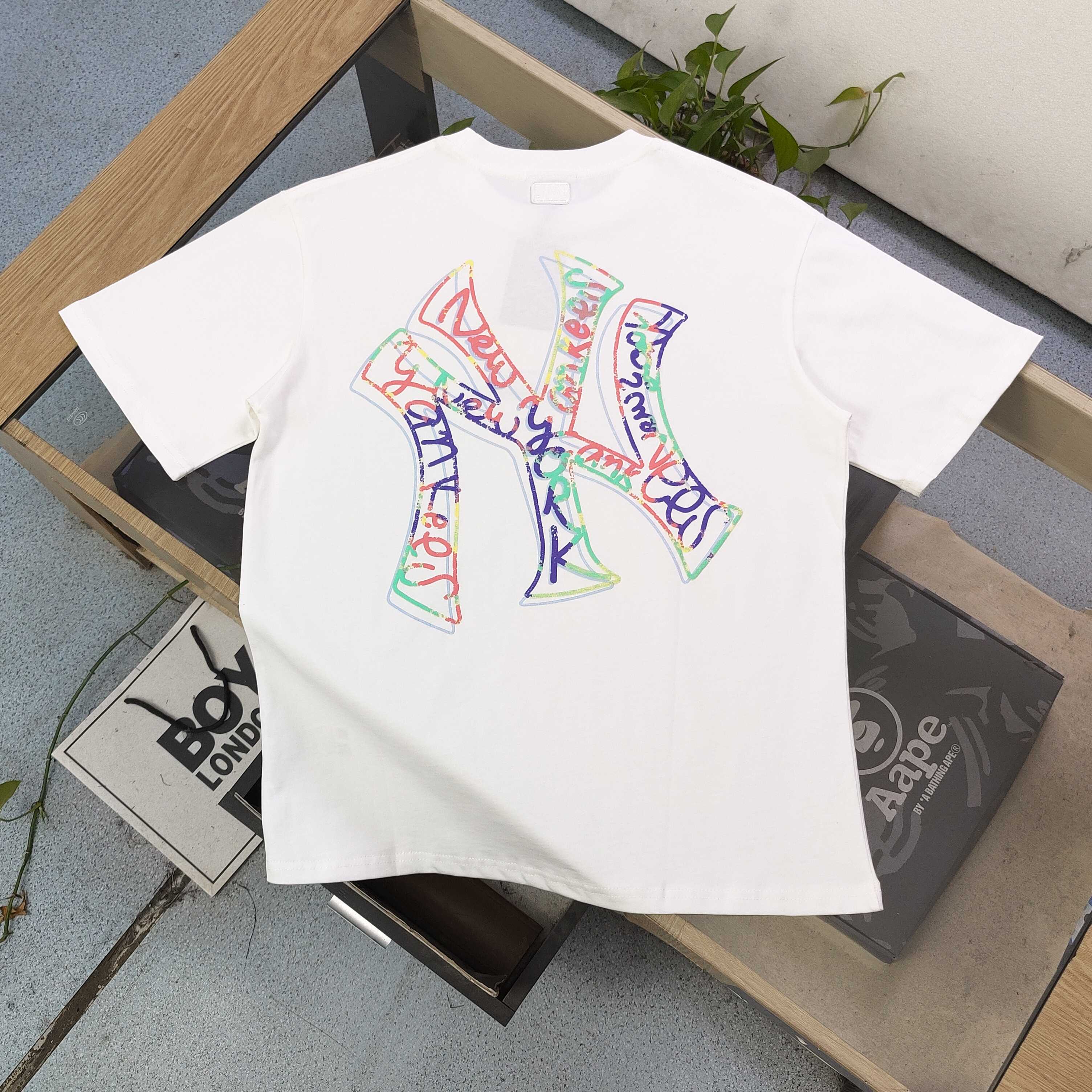 2025新款MLB洋基队NY荧光彩色线条图案logo字母发泡印花休闲情侣短袖T恤 选用了260克双纱爽滑棉面料制作而成 精细的做工和清晰的纹路让贴身穿着更加舒适 经典的黑色设计不仅能够有效显瘦 还散发着甜美和酷感的魅力 这款T恤真的非常可爱 整体质地厚实 质量上乘 男女皆可穿着 与男朋友一起穿上 简直超级可爱 我非常喜欢这件T恤 它背后的大片印花设计精致至极 简直是可爱到爆炸 这款T恤的元气减龄效果非常适合情侣装 绝对是夏日必备款式