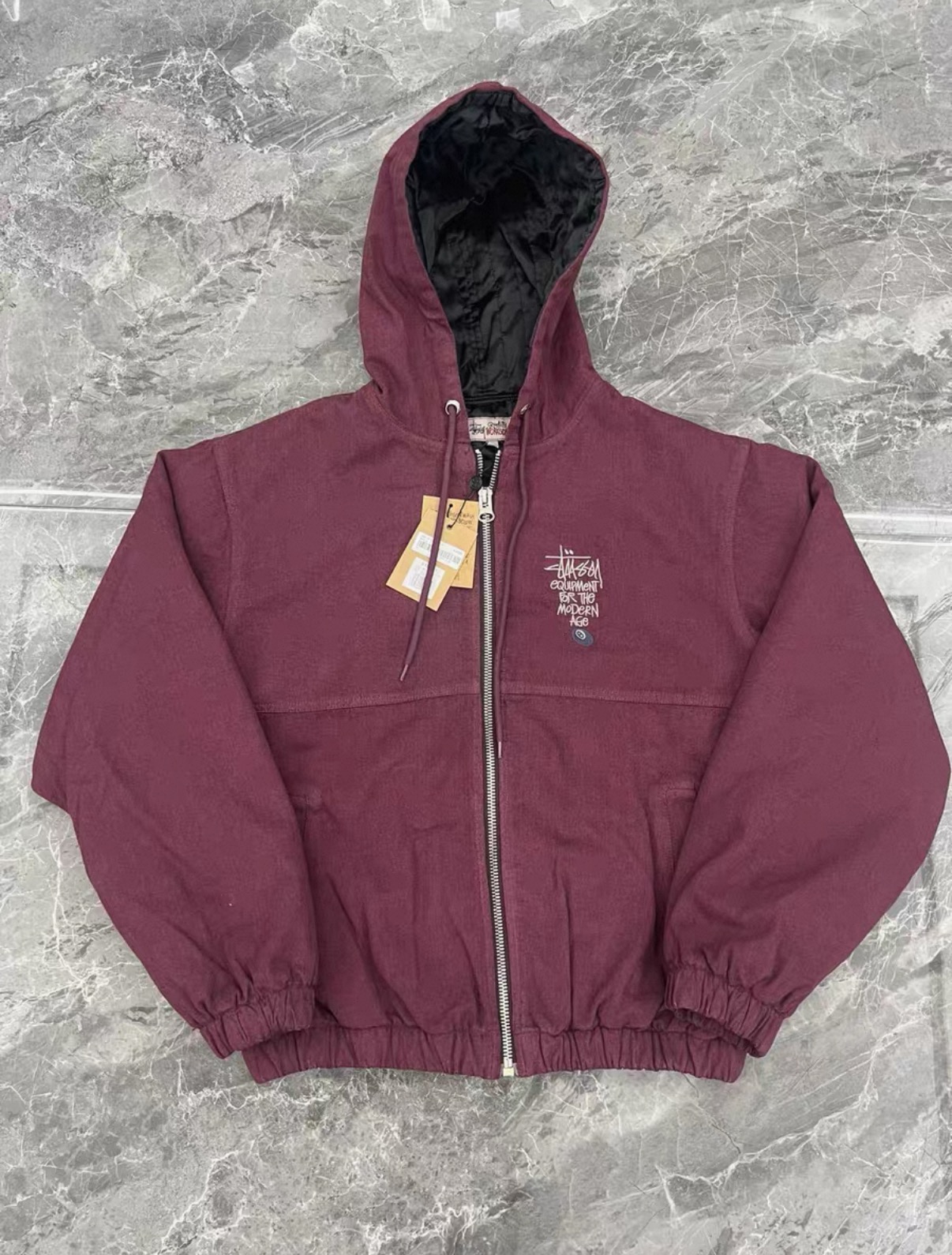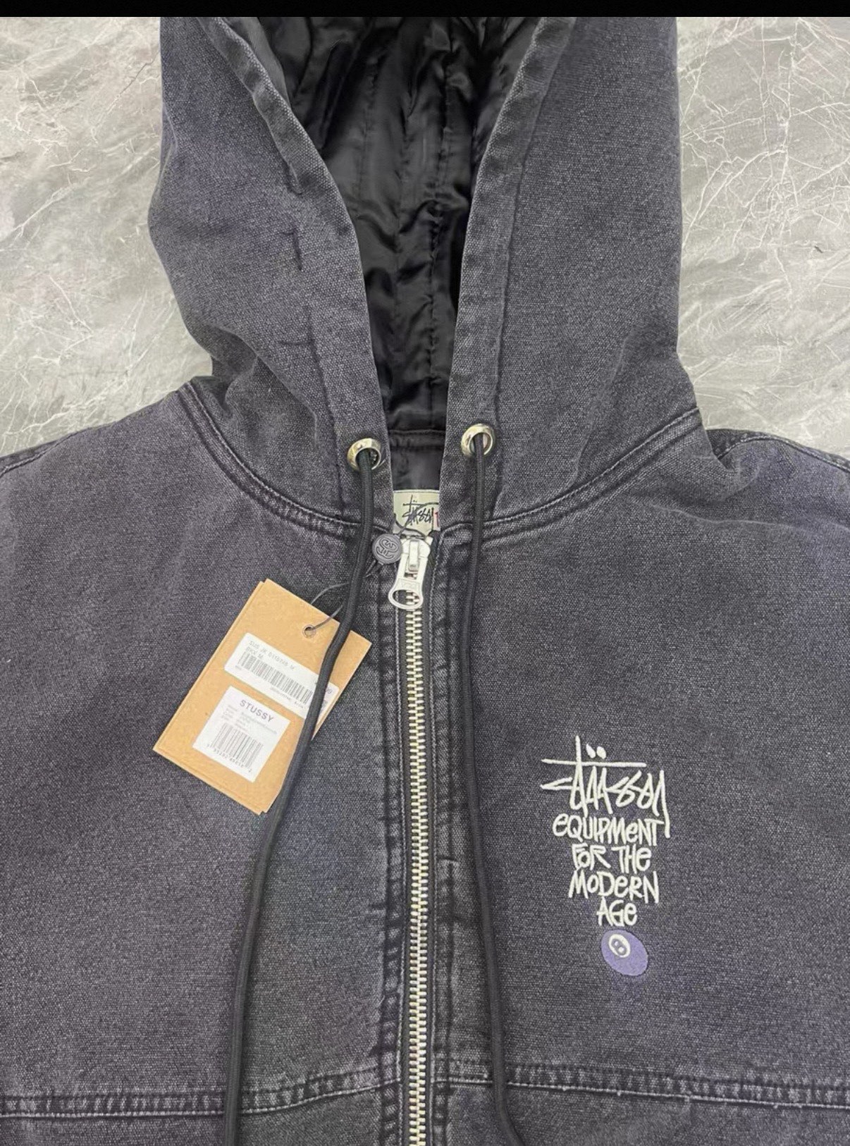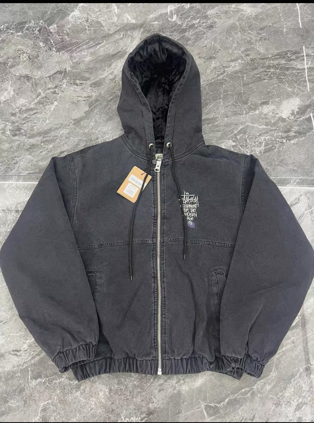 Stussy斯图西 水洗做旧黑8刺绣Logo夹克拉链连帽棉服外套棉服
