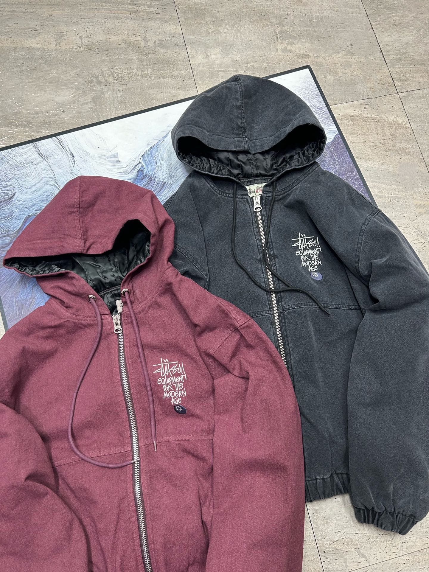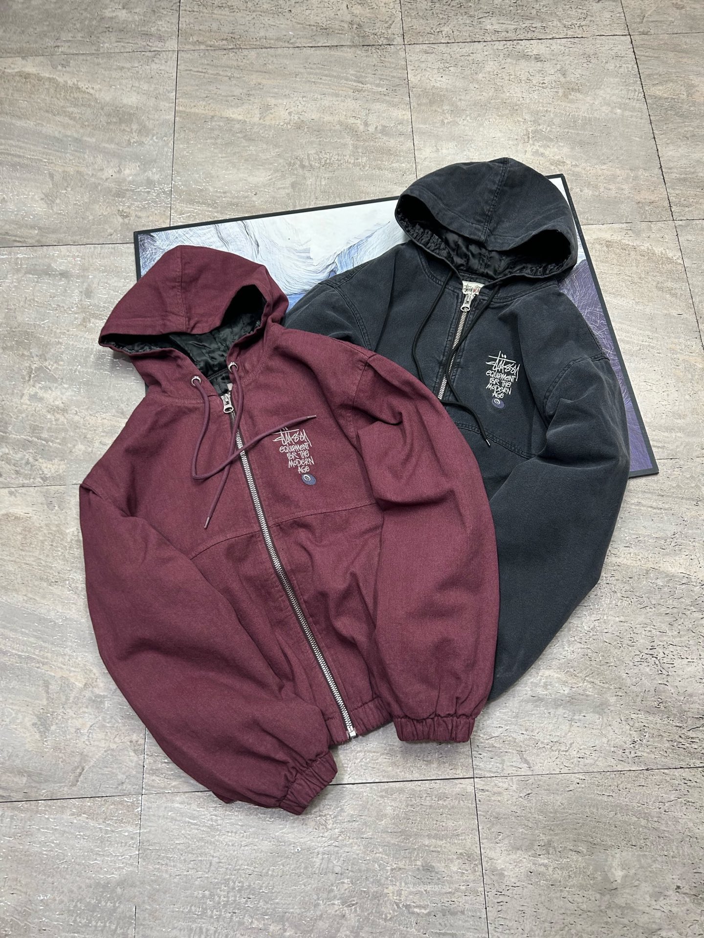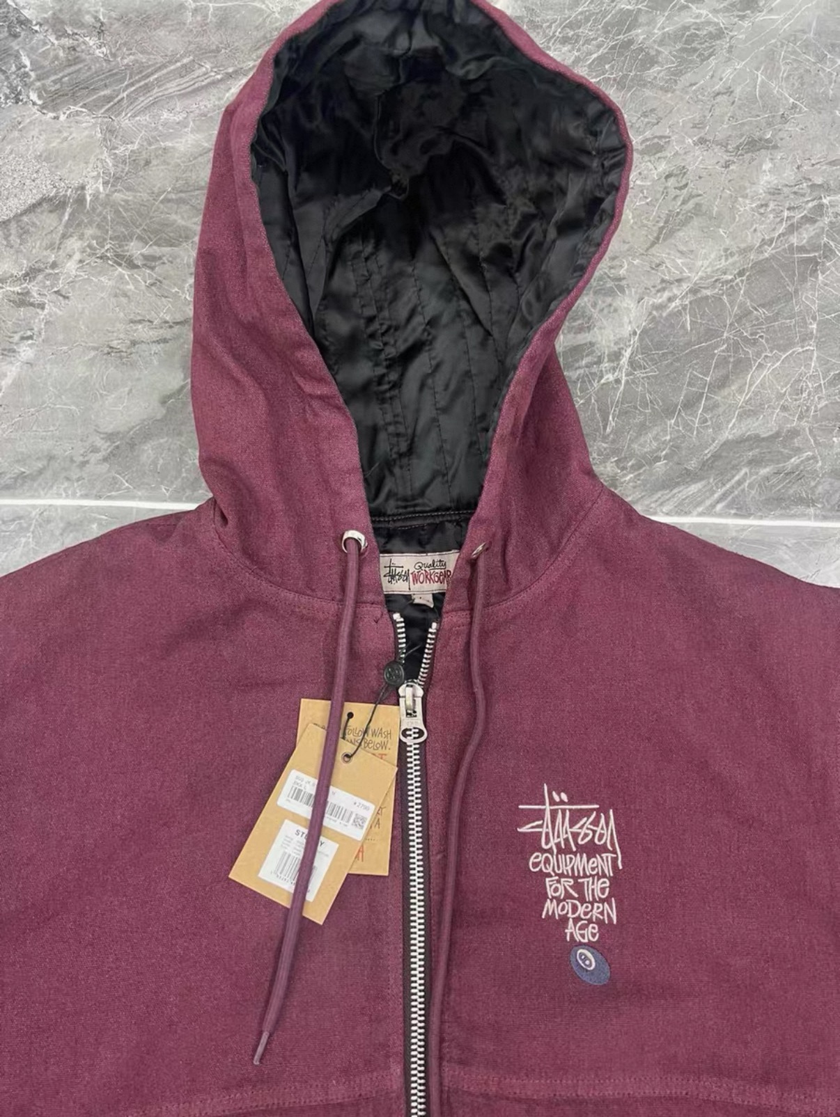 Stussy斯图西 水洗做旧黑8刺绣Logo夹克拉链连帽棉服外套棉服