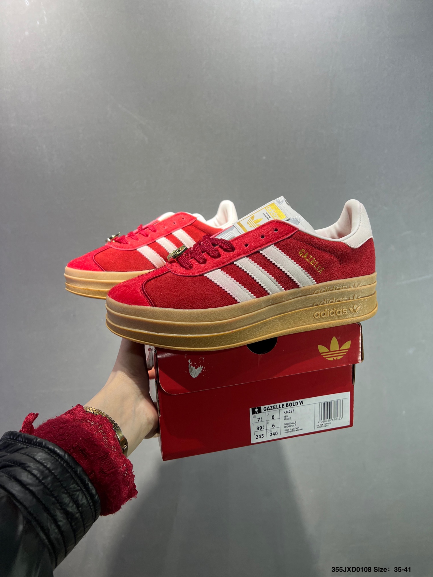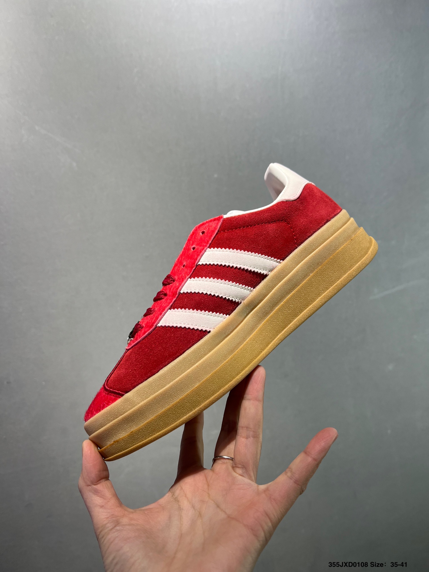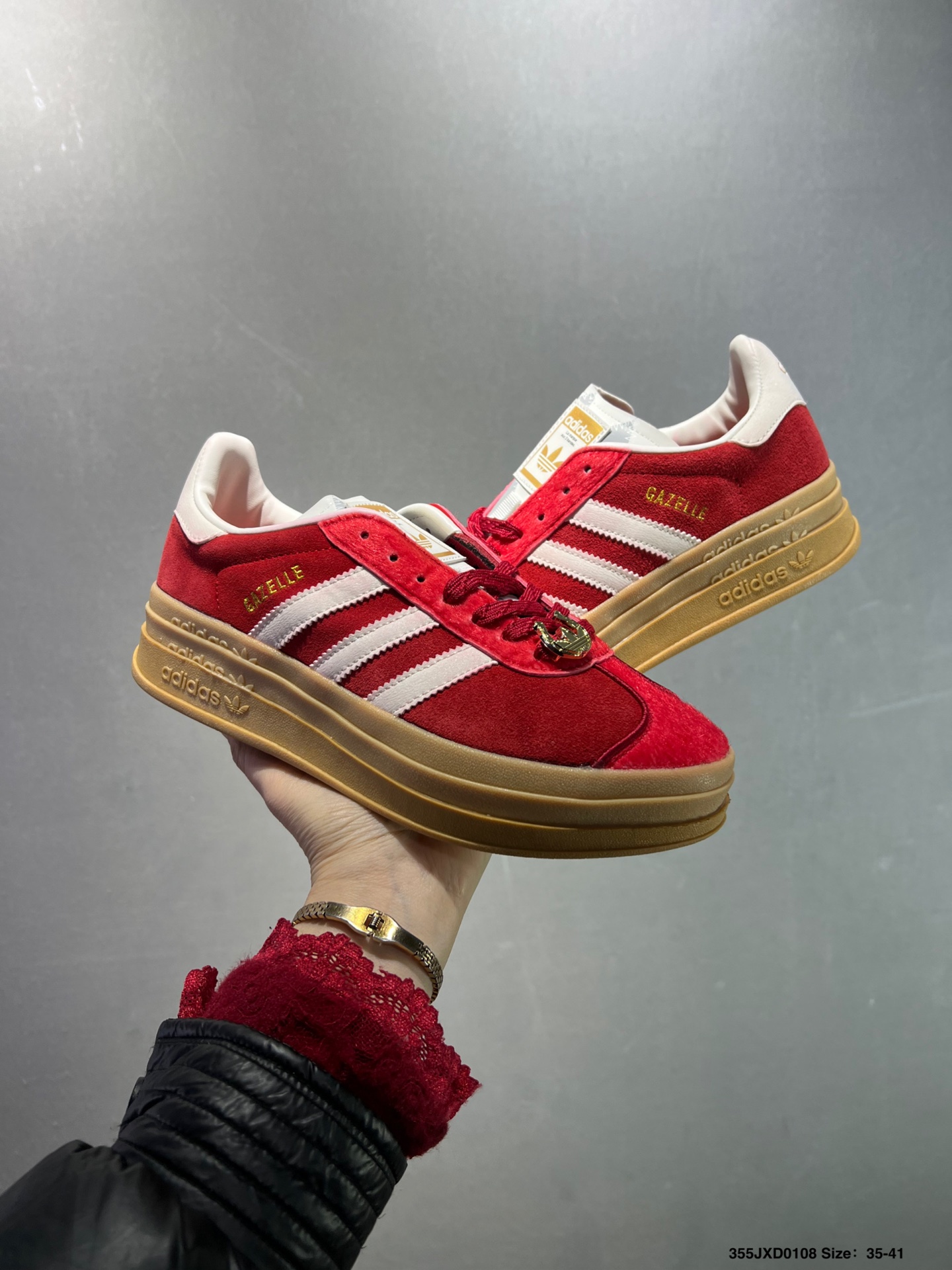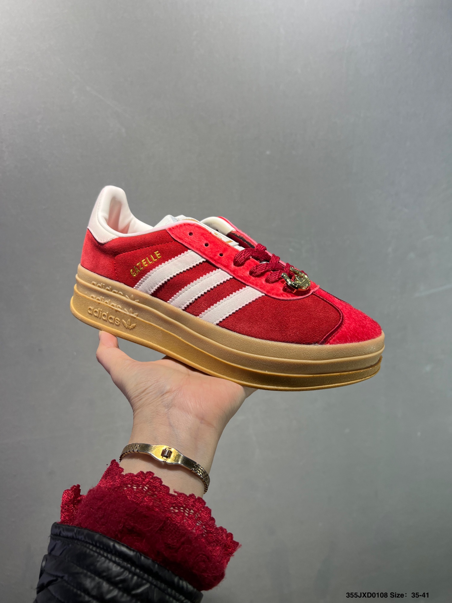 公司级Adidas originals GAZELLE CNY新年款 马年限定 经典运动 德训鞋 女款 红色羚羊松糕系列复古百搭厚底增高低帮休闲运动板鞋