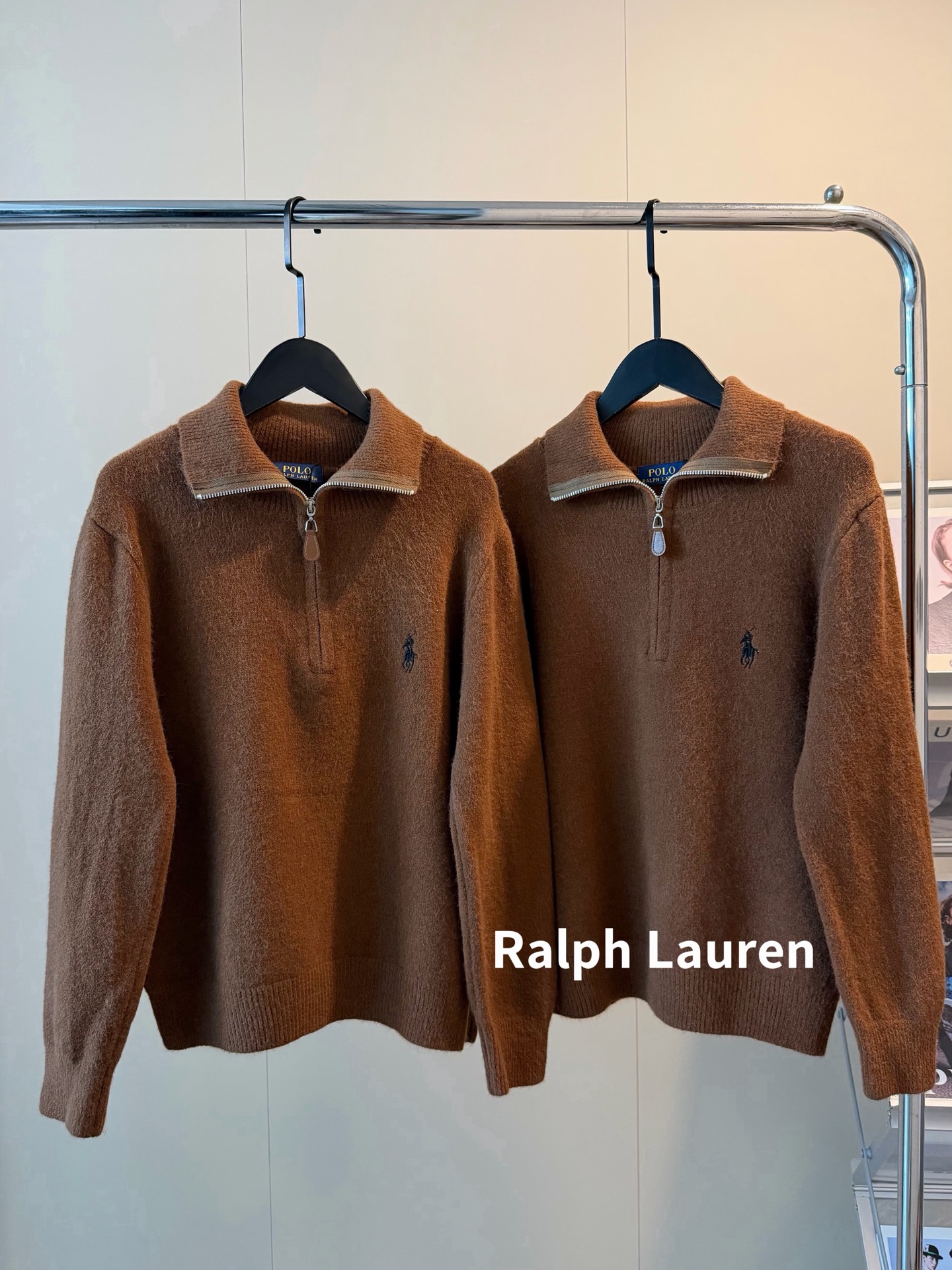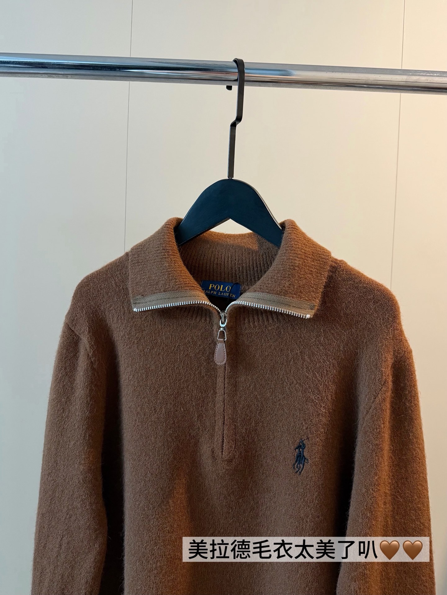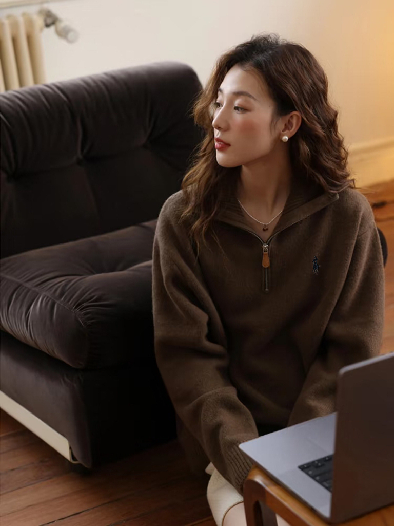 𝗥𝗮𝗹𝗽𝗵 𝗟𝗮𝘂𝗿𝗲𝗻拉夫劳伦半拉链刺绣老钱风羊绒毛衣