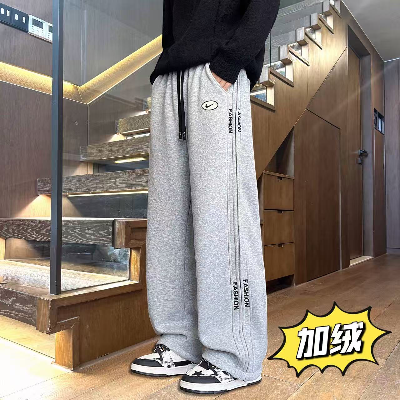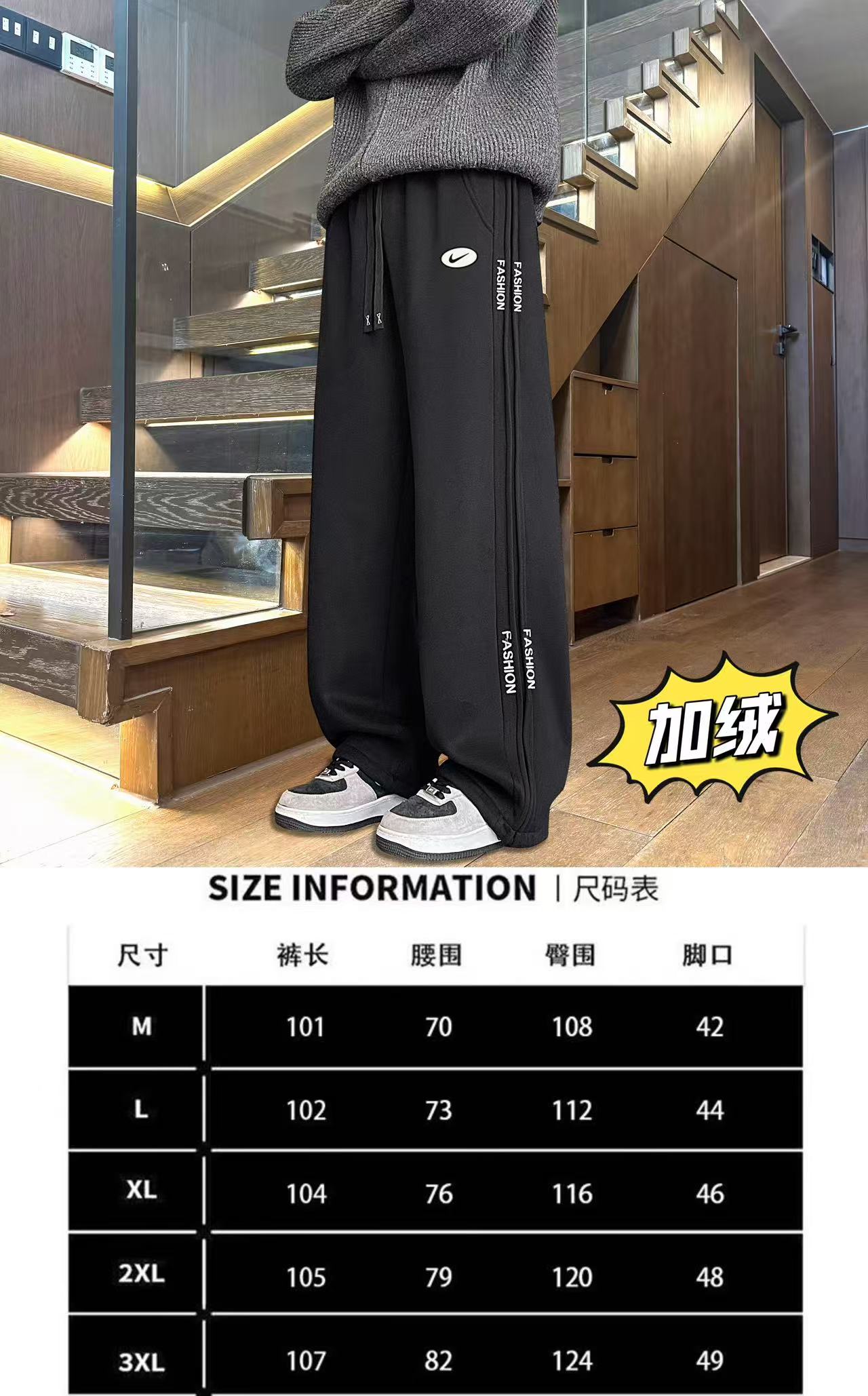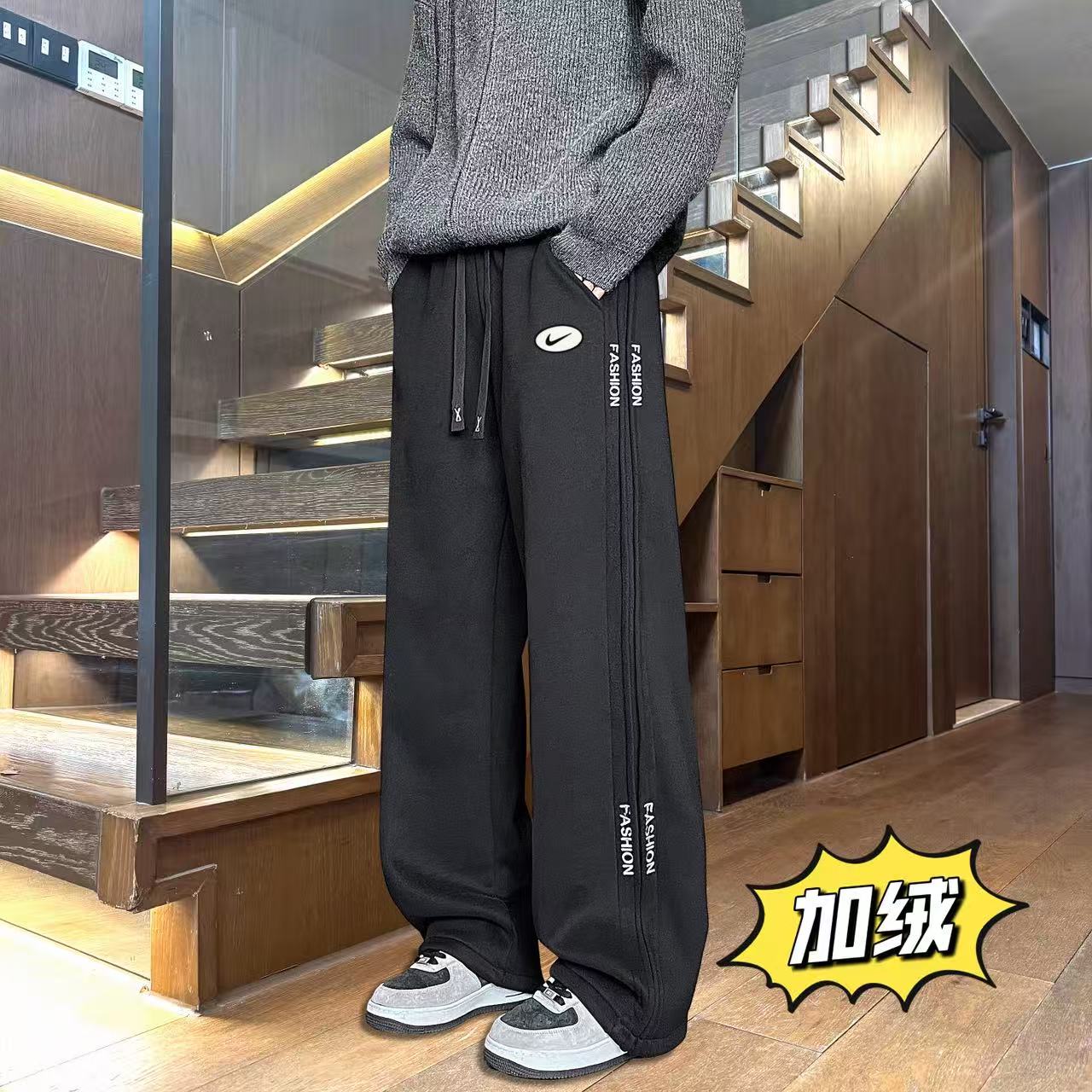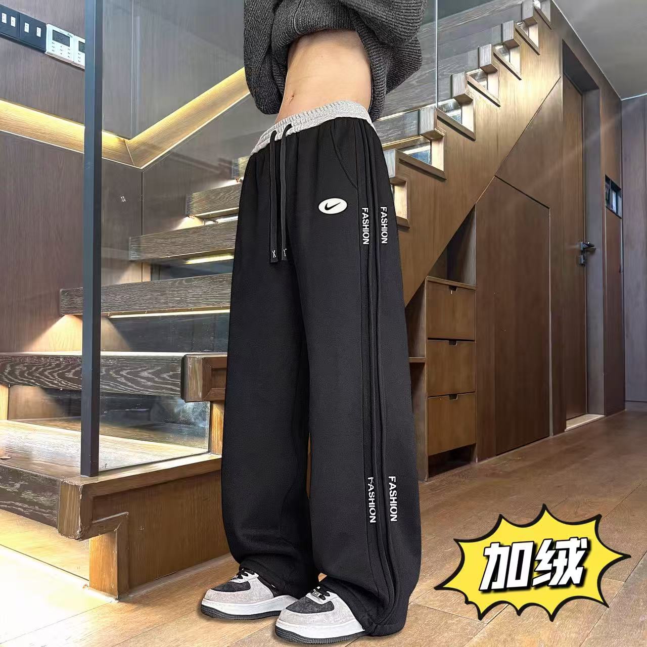 上新 NIKE 耐克 冬季加绒加厚侧边个性拼接百搭直筒卫裤休闲裤长裤 男女同款