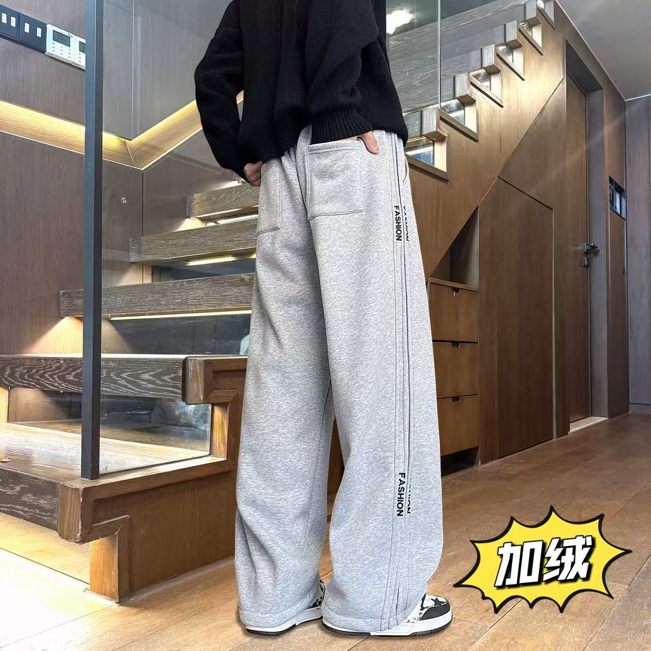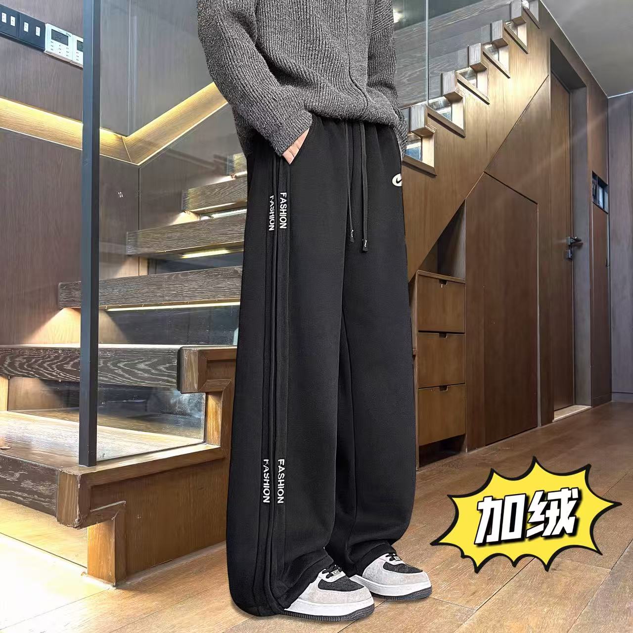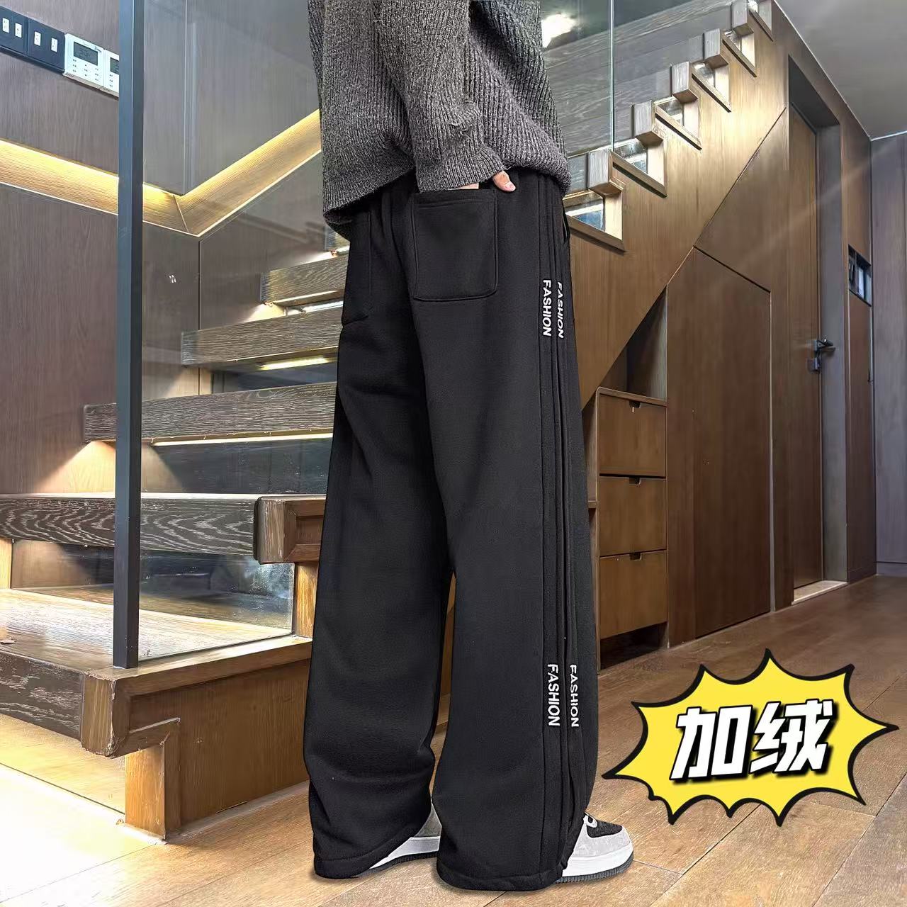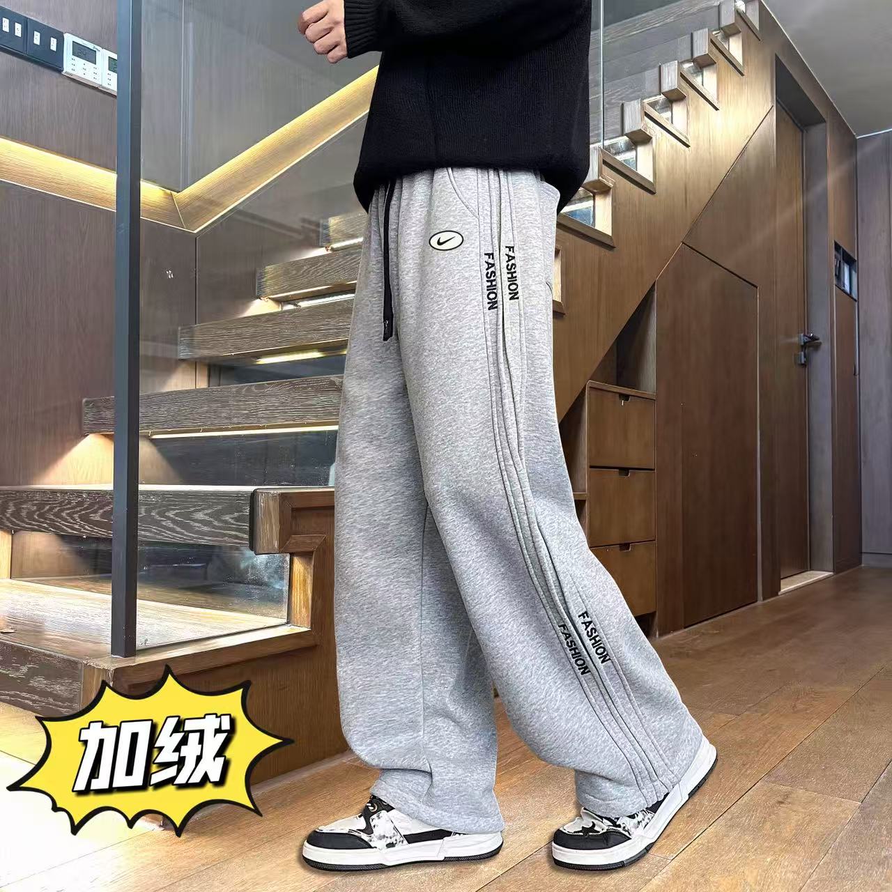 上新 NIKE 耐克 冬季加绒加厚侧边个性拼接百搭直筒卫裤休闲裤长裤 男女同款
