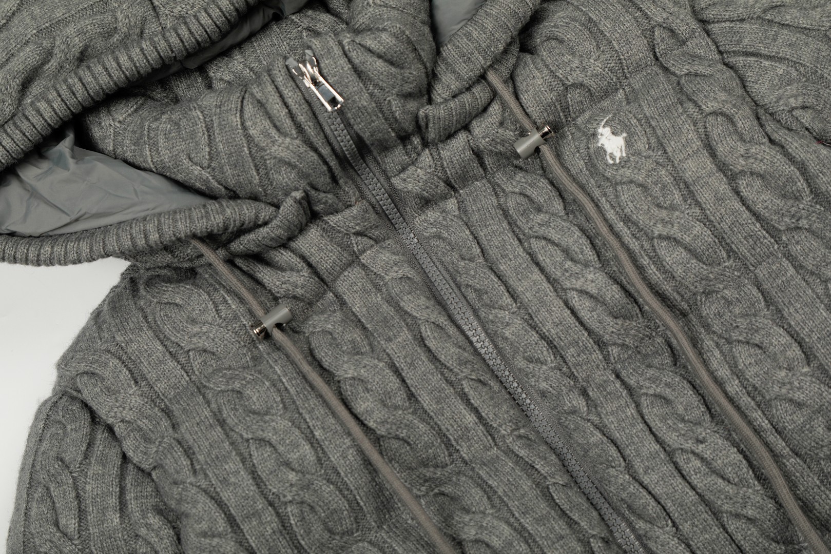 拉夫劳伦Ralph Lauren冬季羊毛麻花绞花针织连帽棉服
