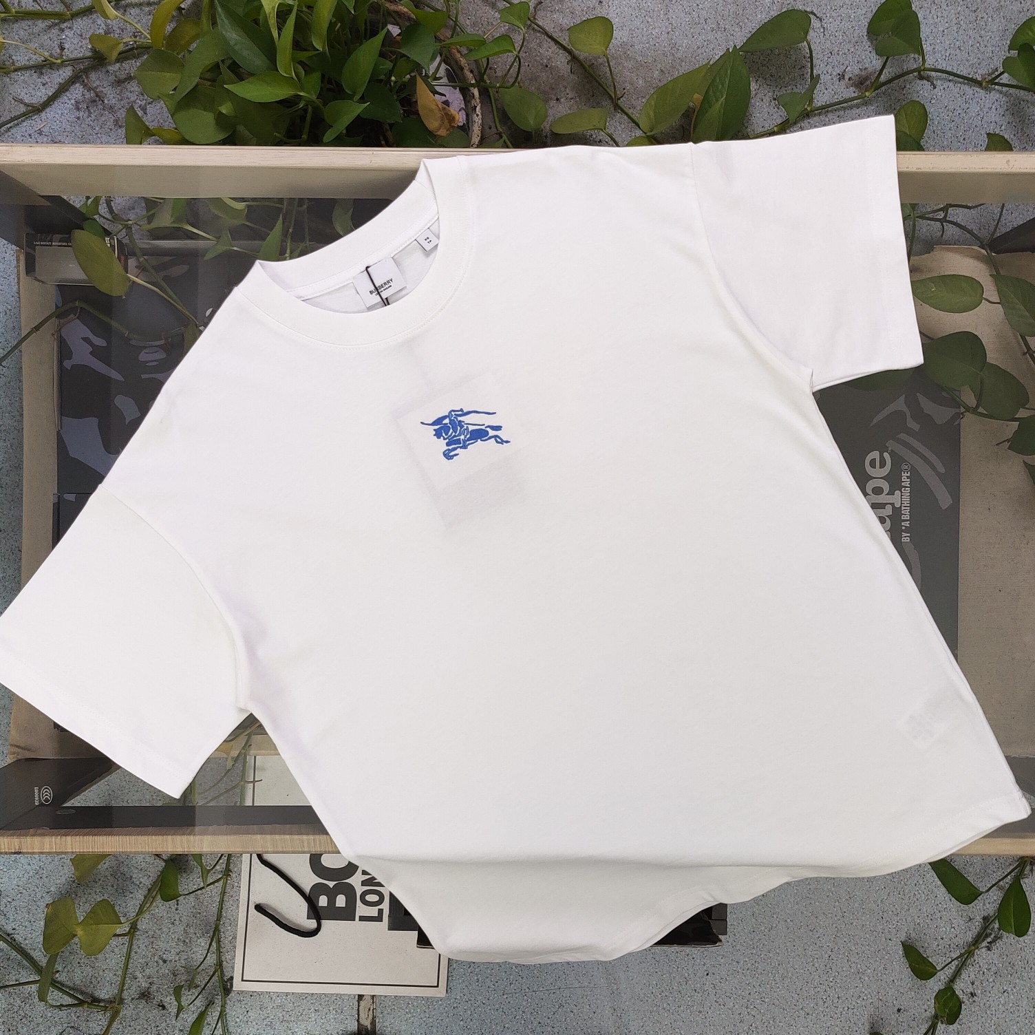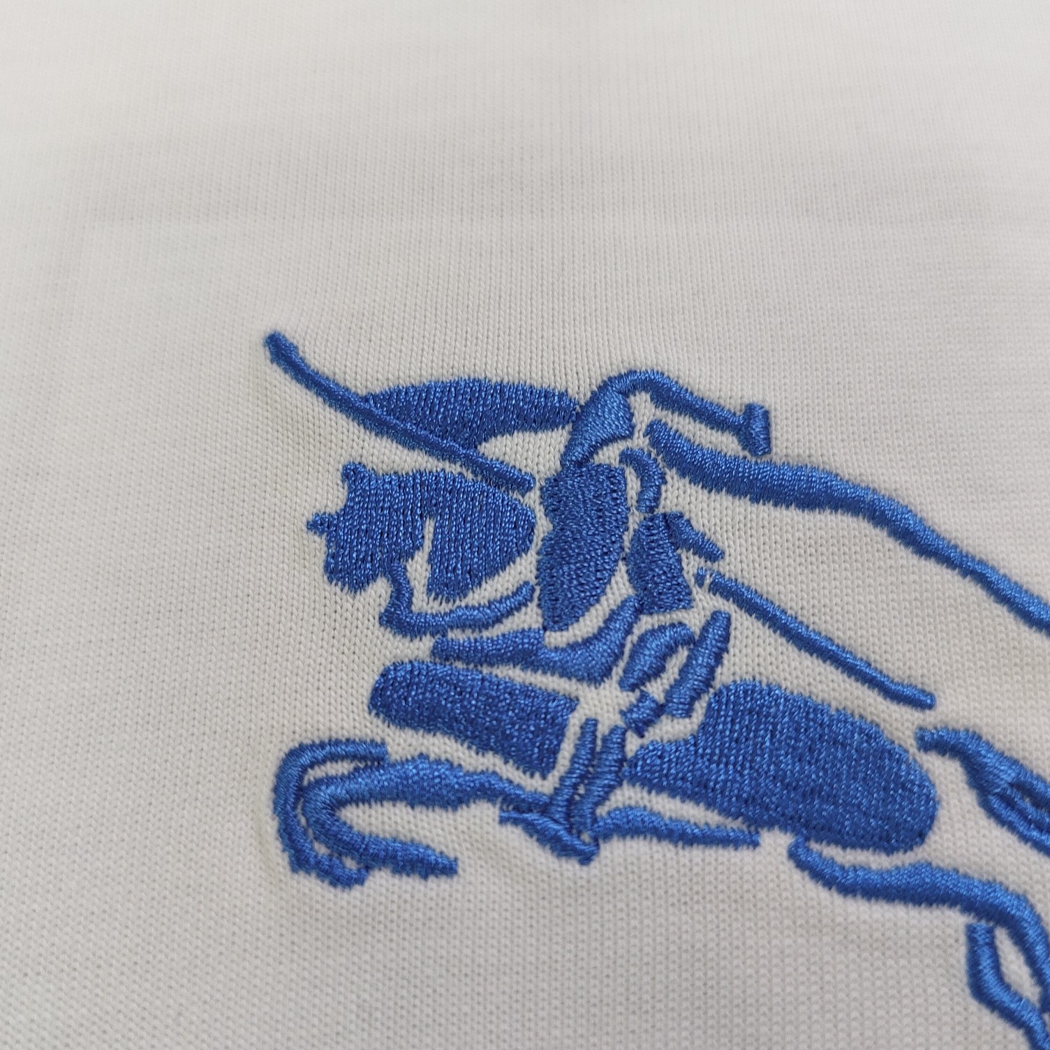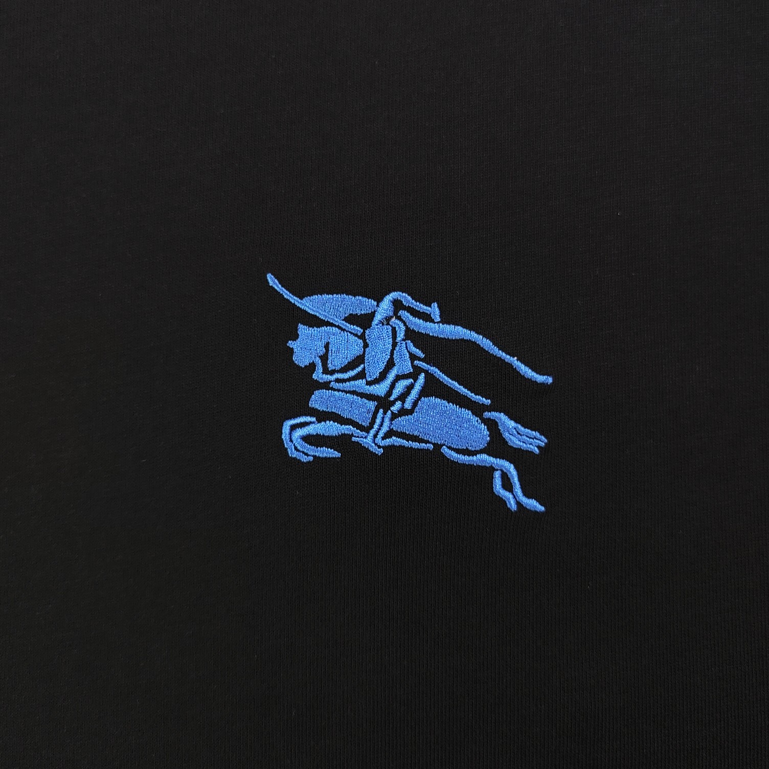 2025春季新款Burberry巴宝莉刺绣蓝色战马骑士logo图案绣花休闲情侣宽松短袖T恤 独一无二的活性环保面料染色 32支双纱精梳纯棉爽滑手感 纯棉不起球不起毛 面料采用270克重的纯棉双纱爽滑面料 质量保证 定制面料 定制定染 欢迎对比质量 男女同款