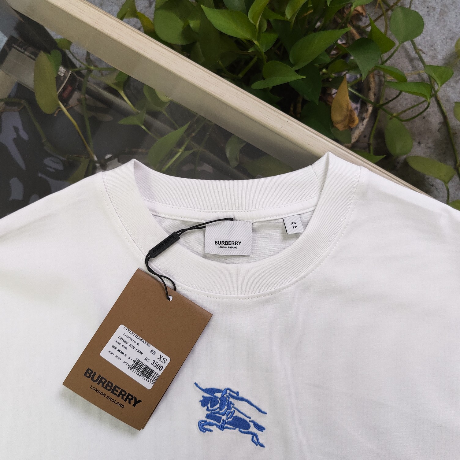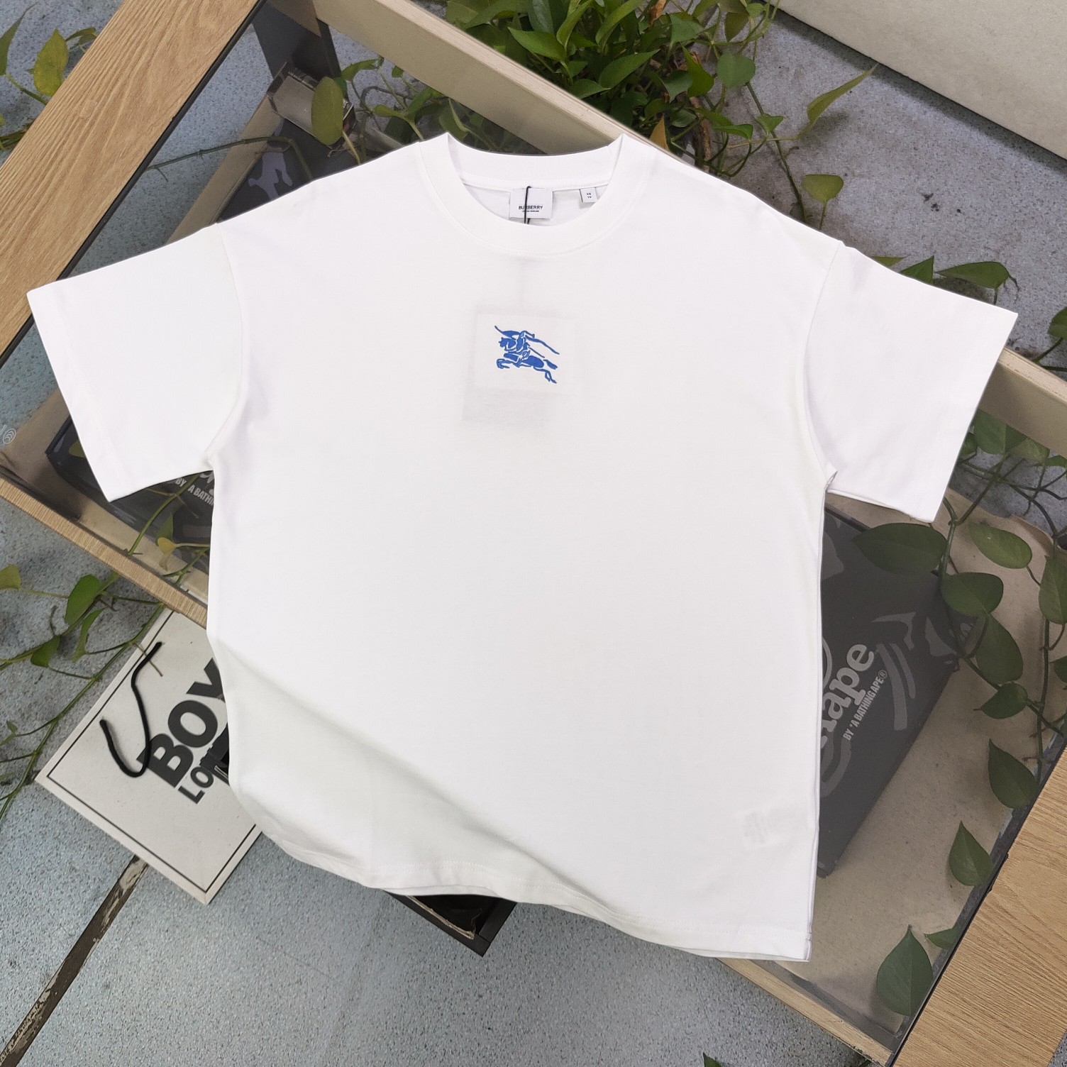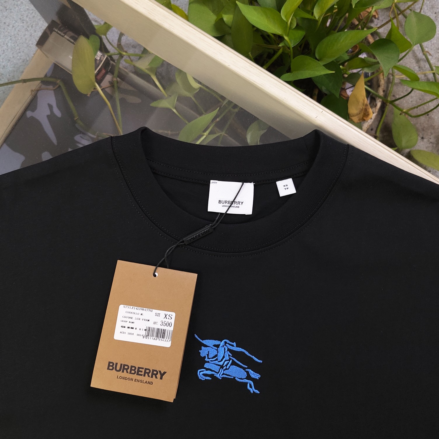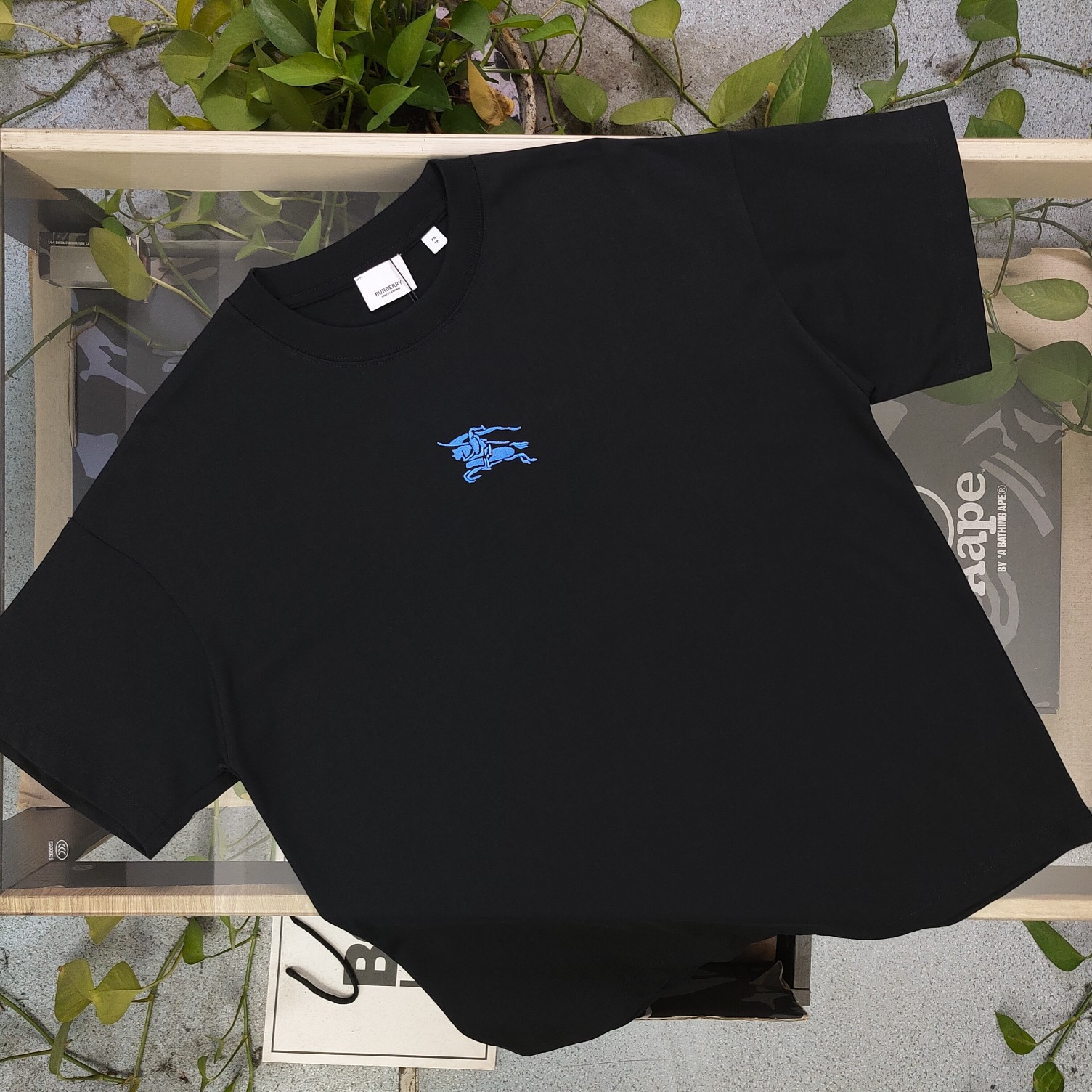 2025春季新款Burberry巴宝莉刺绣蓝色战马骑士logo图案绣花休闲情侣宽松短袖T恤 独一无二的活性环保面料染色 32支双纱精梳纯棉爽滑手感 纯棉不起球不起毛 面料采用270克重的纯棉双纱爽滑面料 质量保证 定制面料 定制定染 欢迎对比质量 男女同款