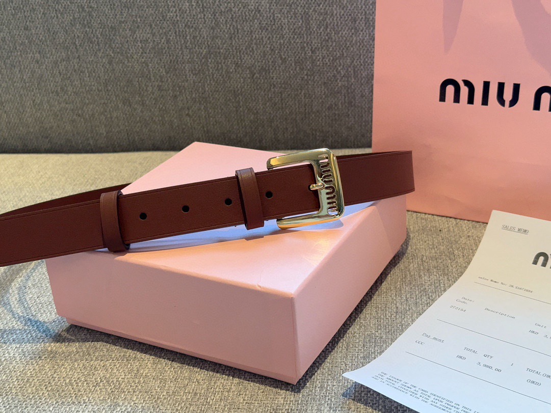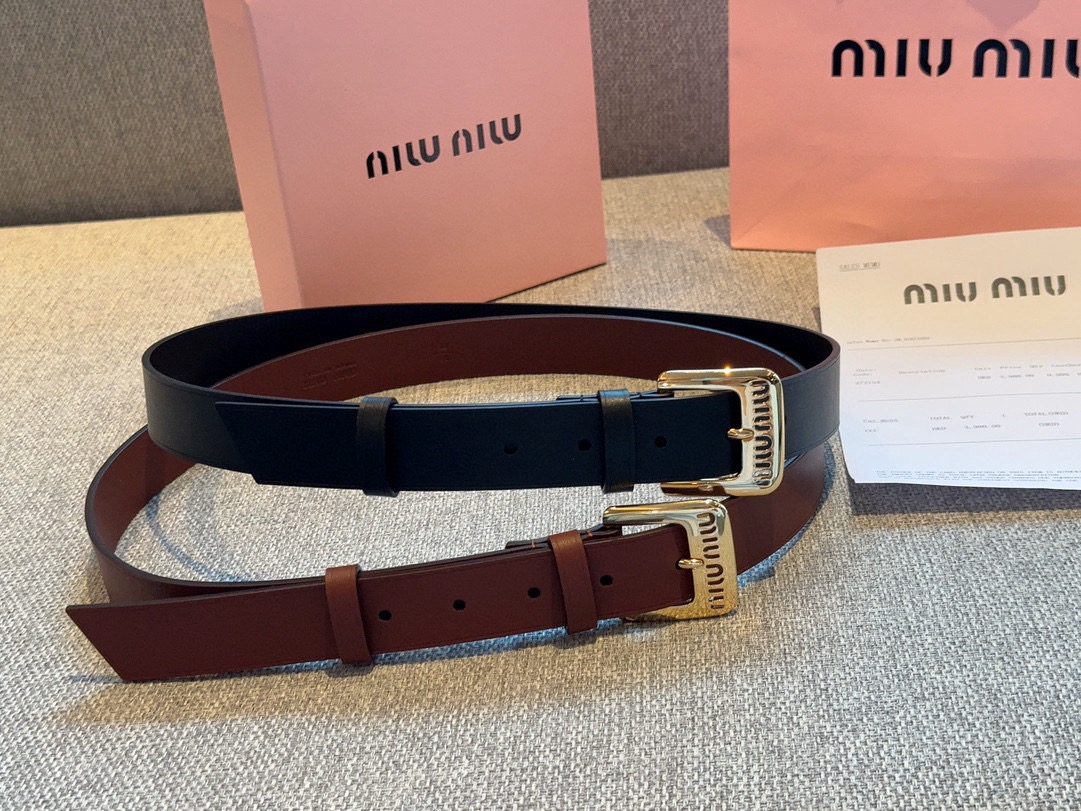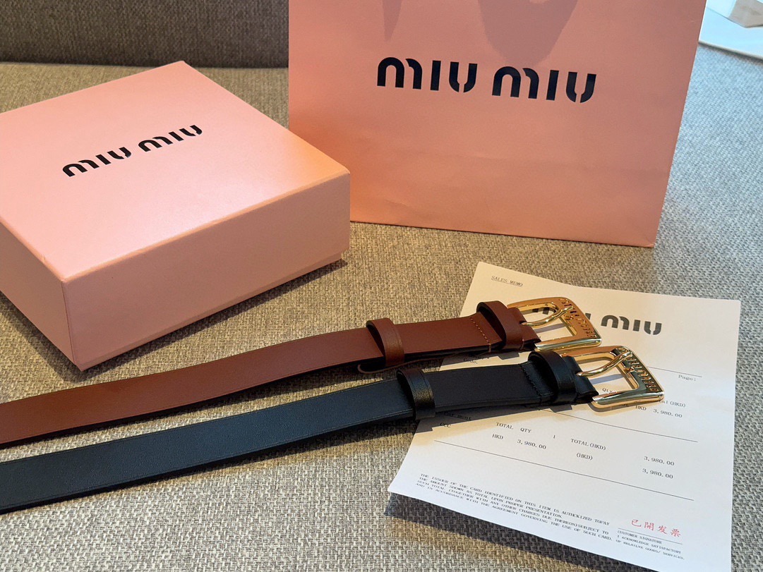 缪缪这款皮革腰带设计简约优雅 金属搭扣伴有miumiu字样针扣 手感柔软 细节实物拍摄 女神款 色 色 色 宽度3 0CM