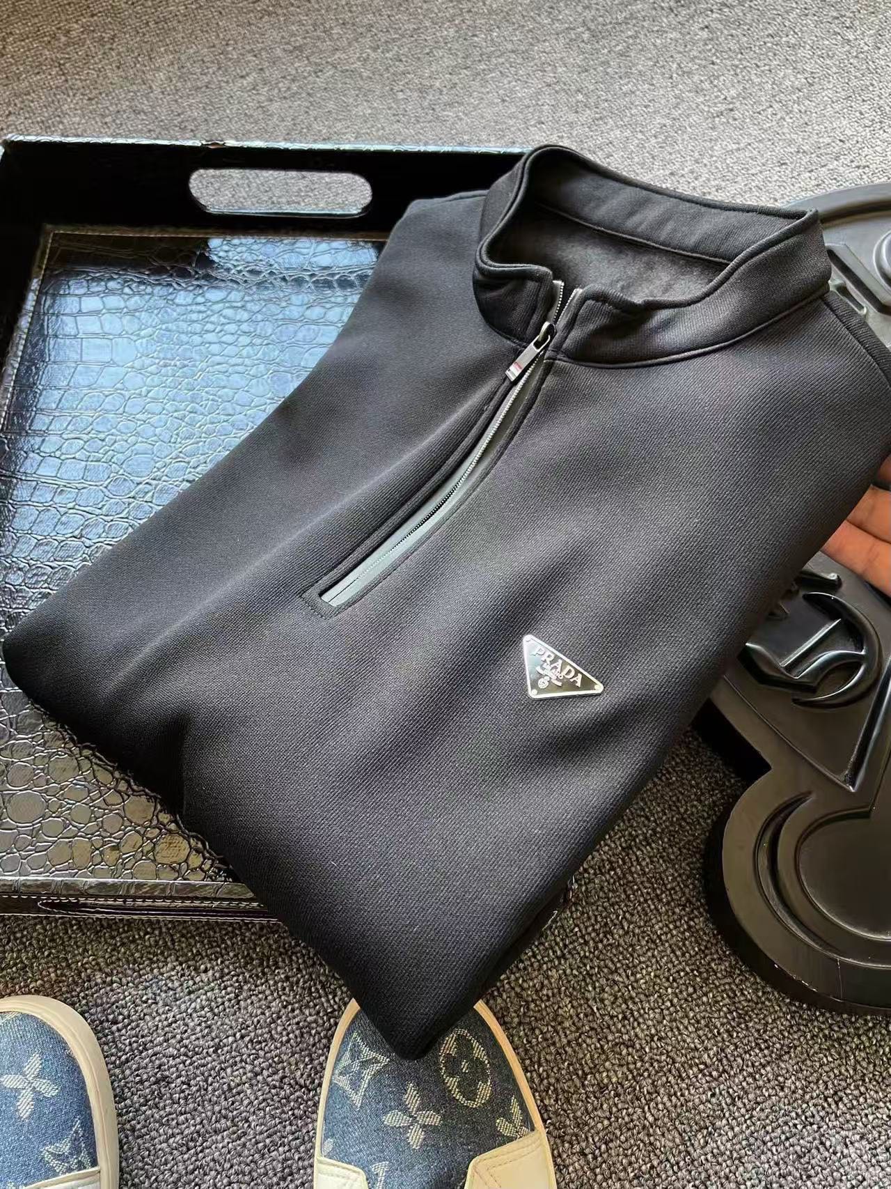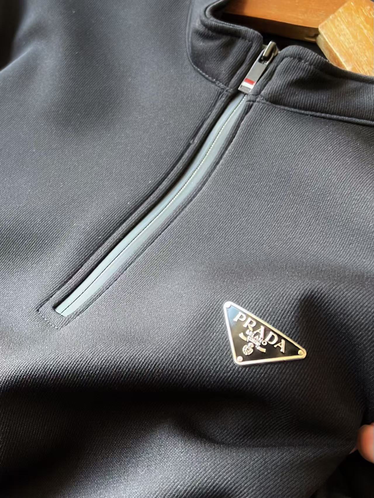 细节细节再细节 Prada家今年新款水貂绒加绒立领拉链款卫衣 胸前立体浮雕Prada小标 进口TPU基材 十分精致 领口拼接防水拉链设计 多功能调节体温 简约大气