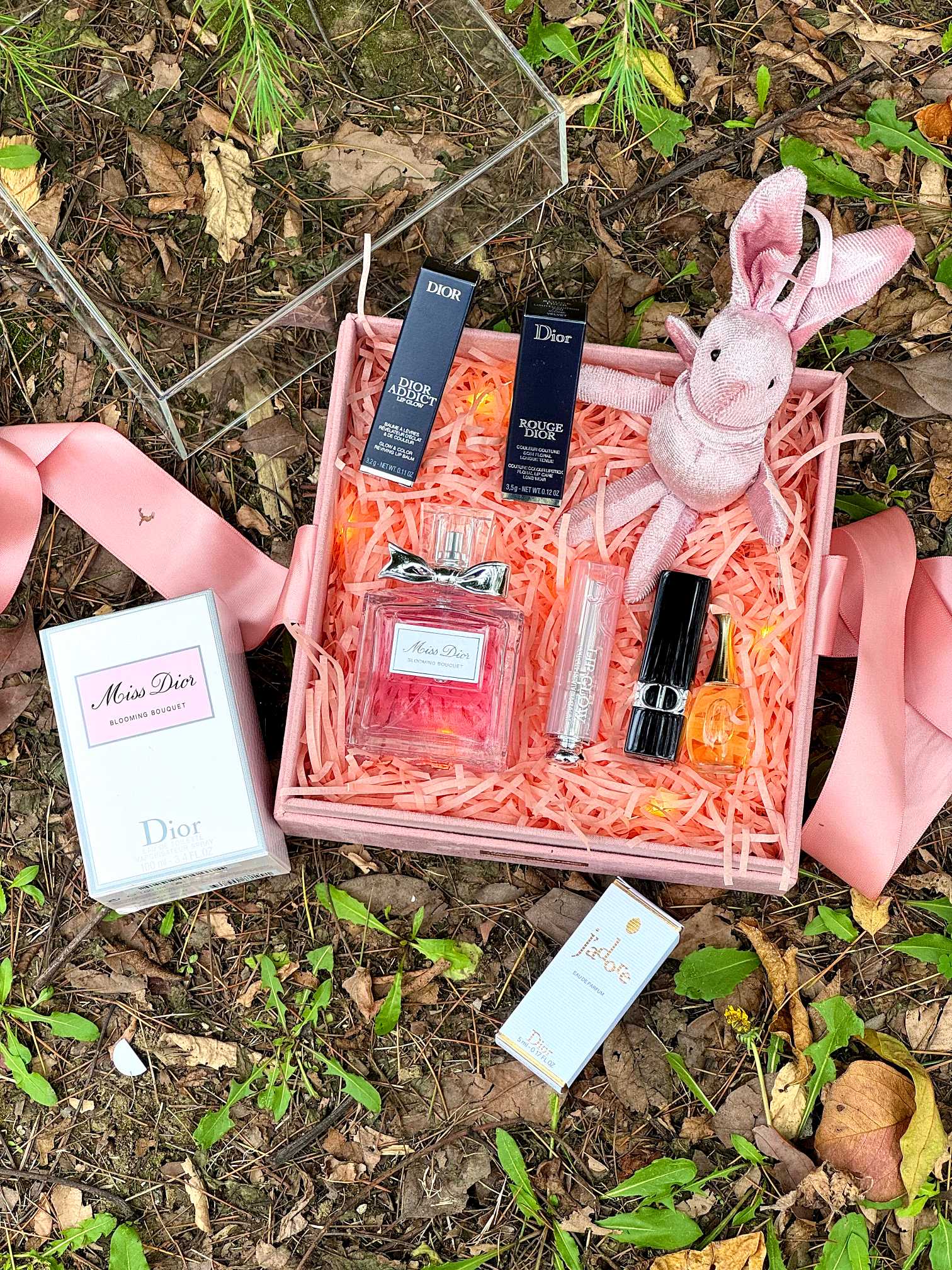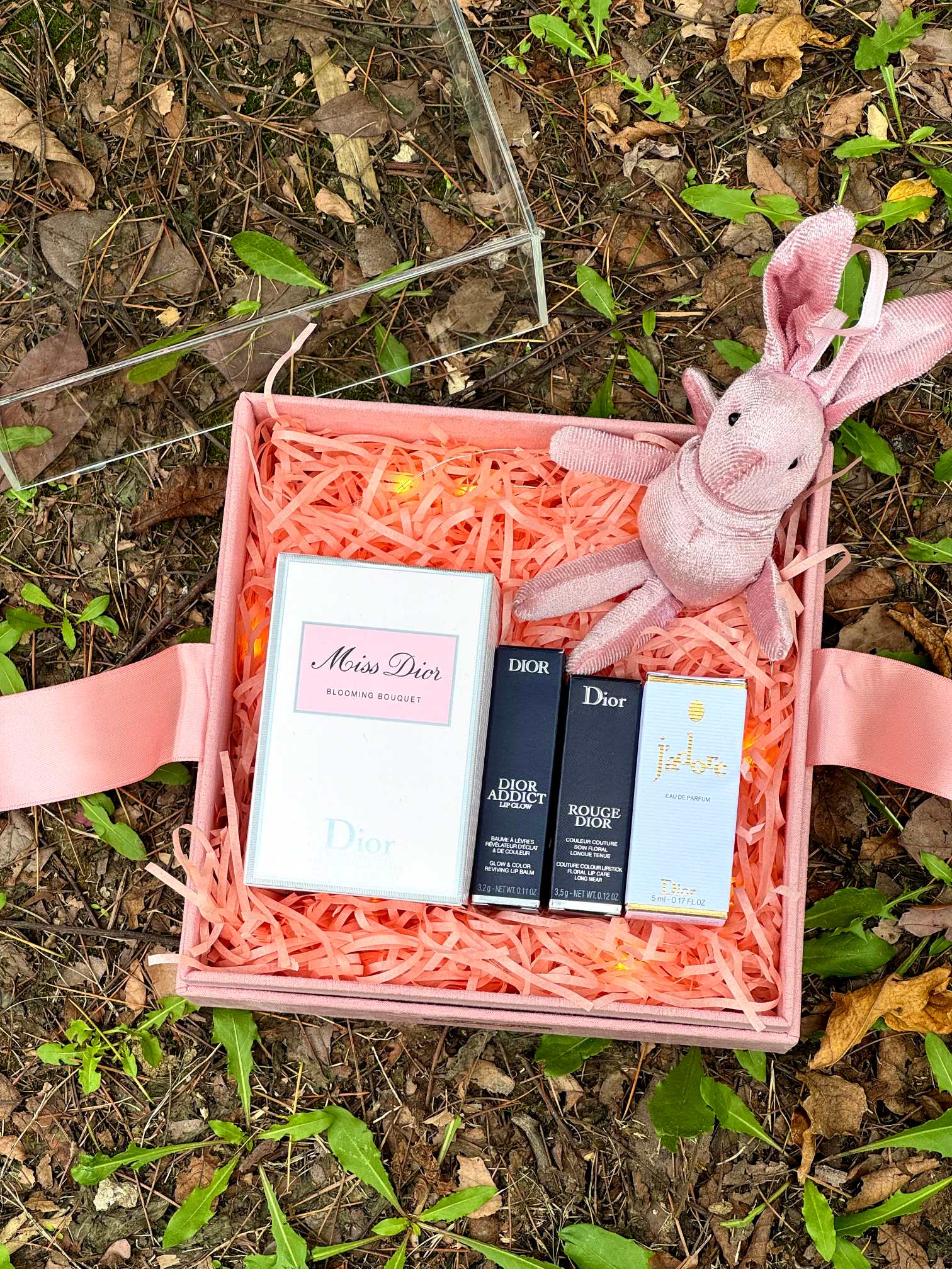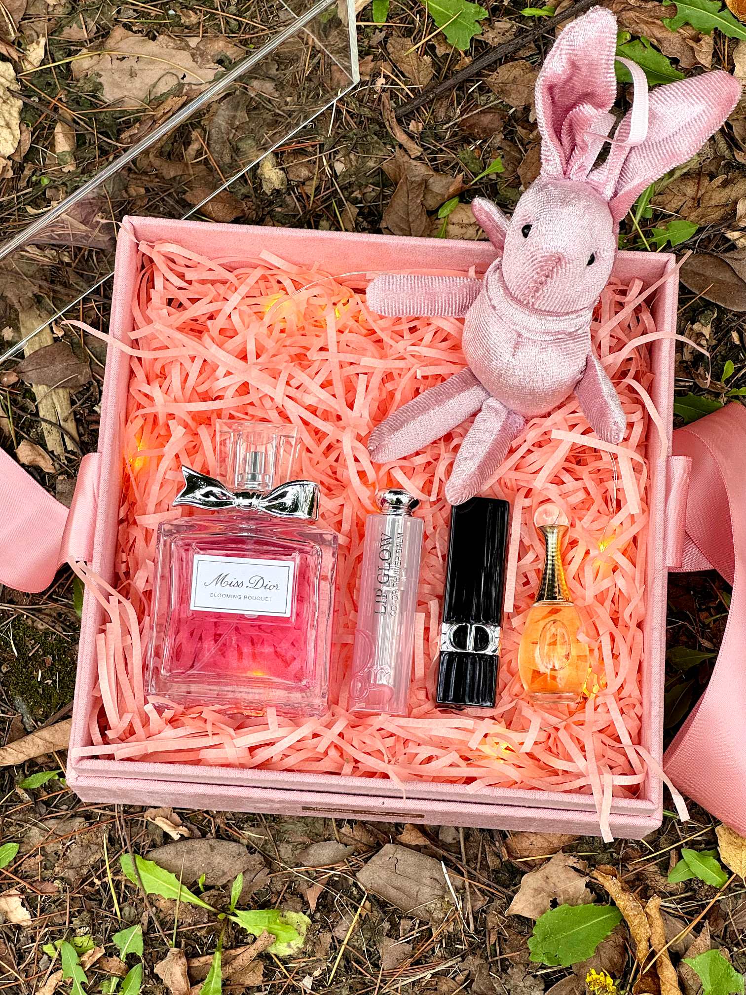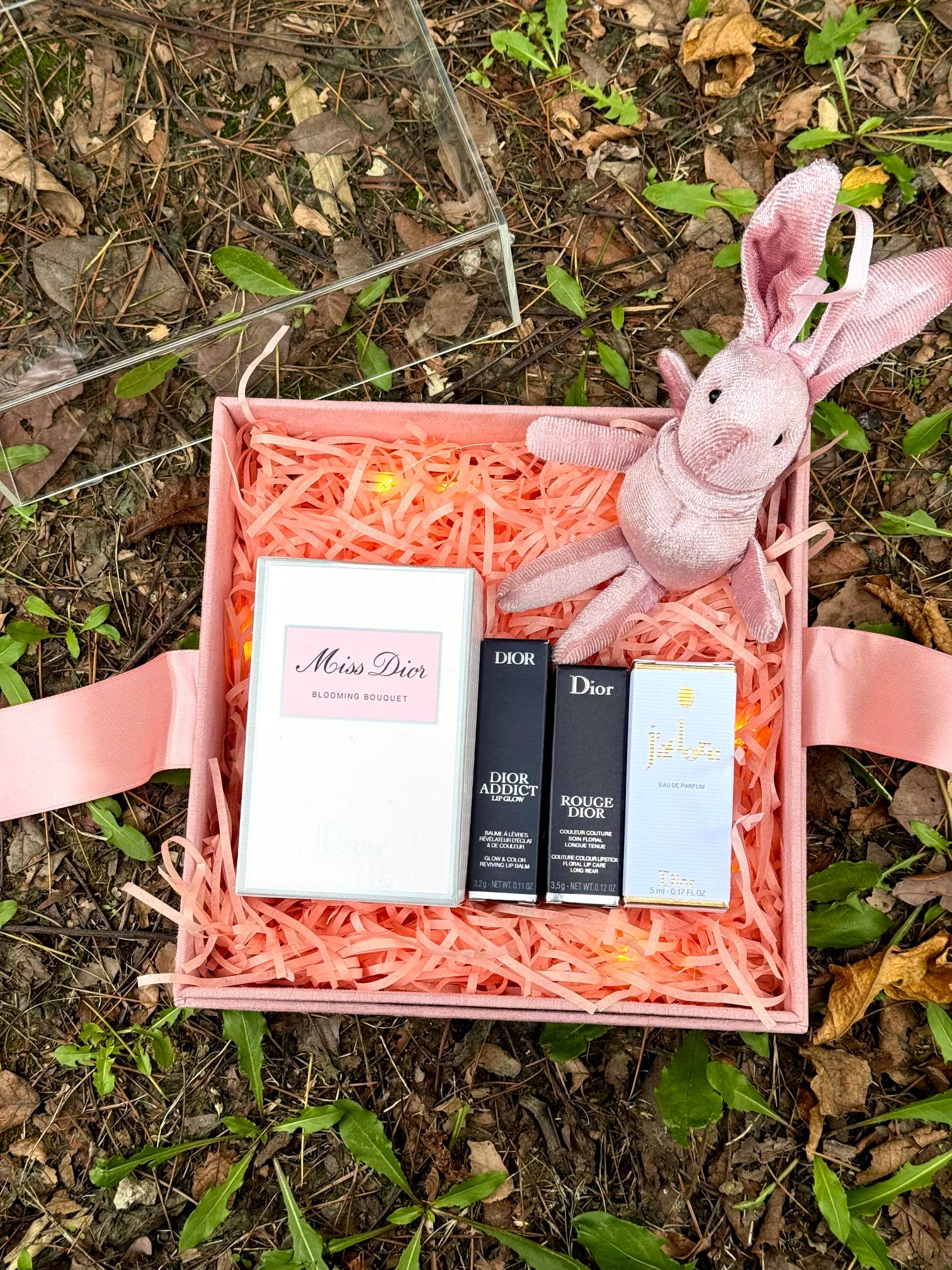内含 迪奥甜心香水100ml 迪奥变色唇膏001 迪奥720 口红 迪奥真我香水5ml 灯串 兔子 拉菲草