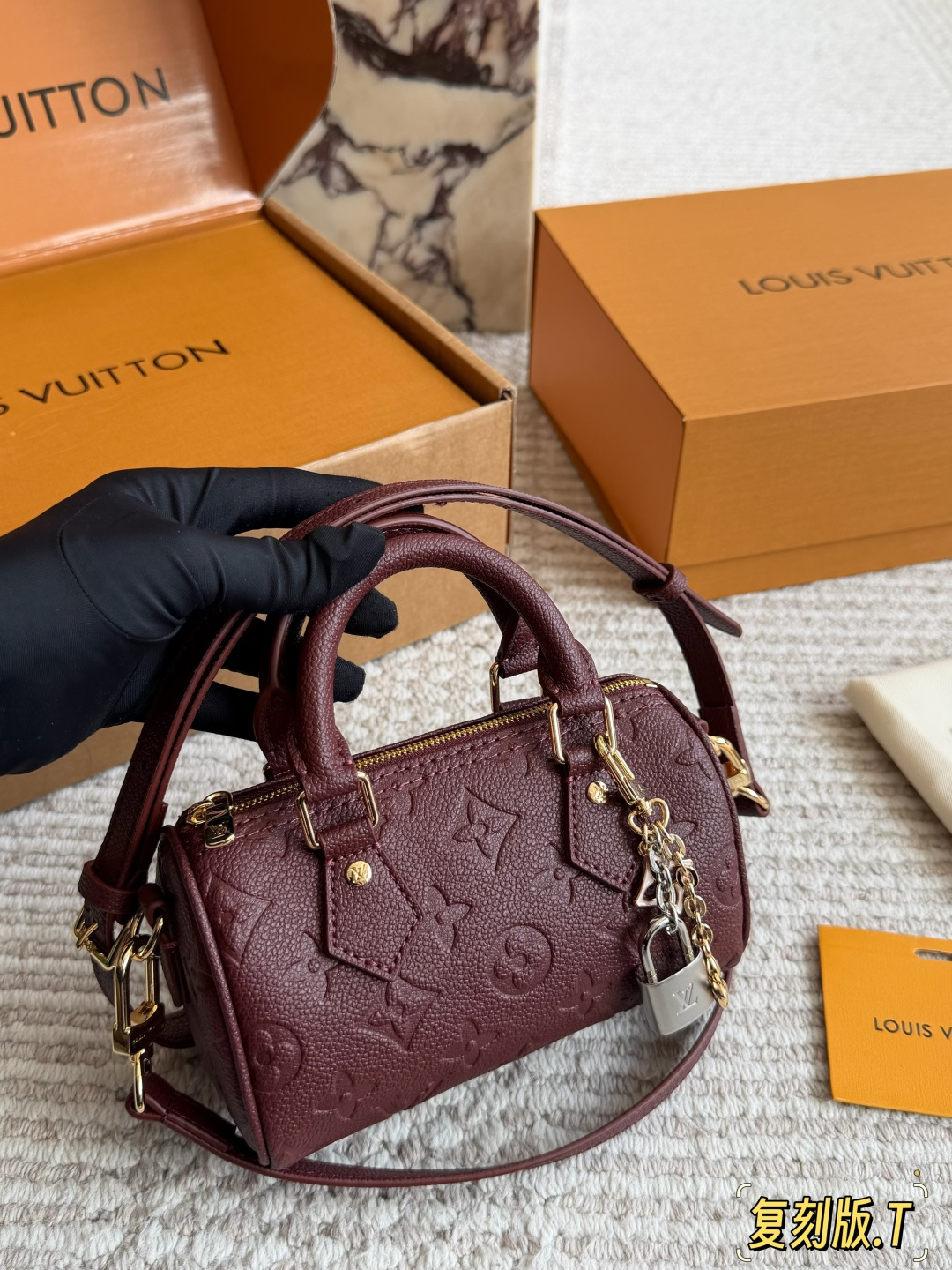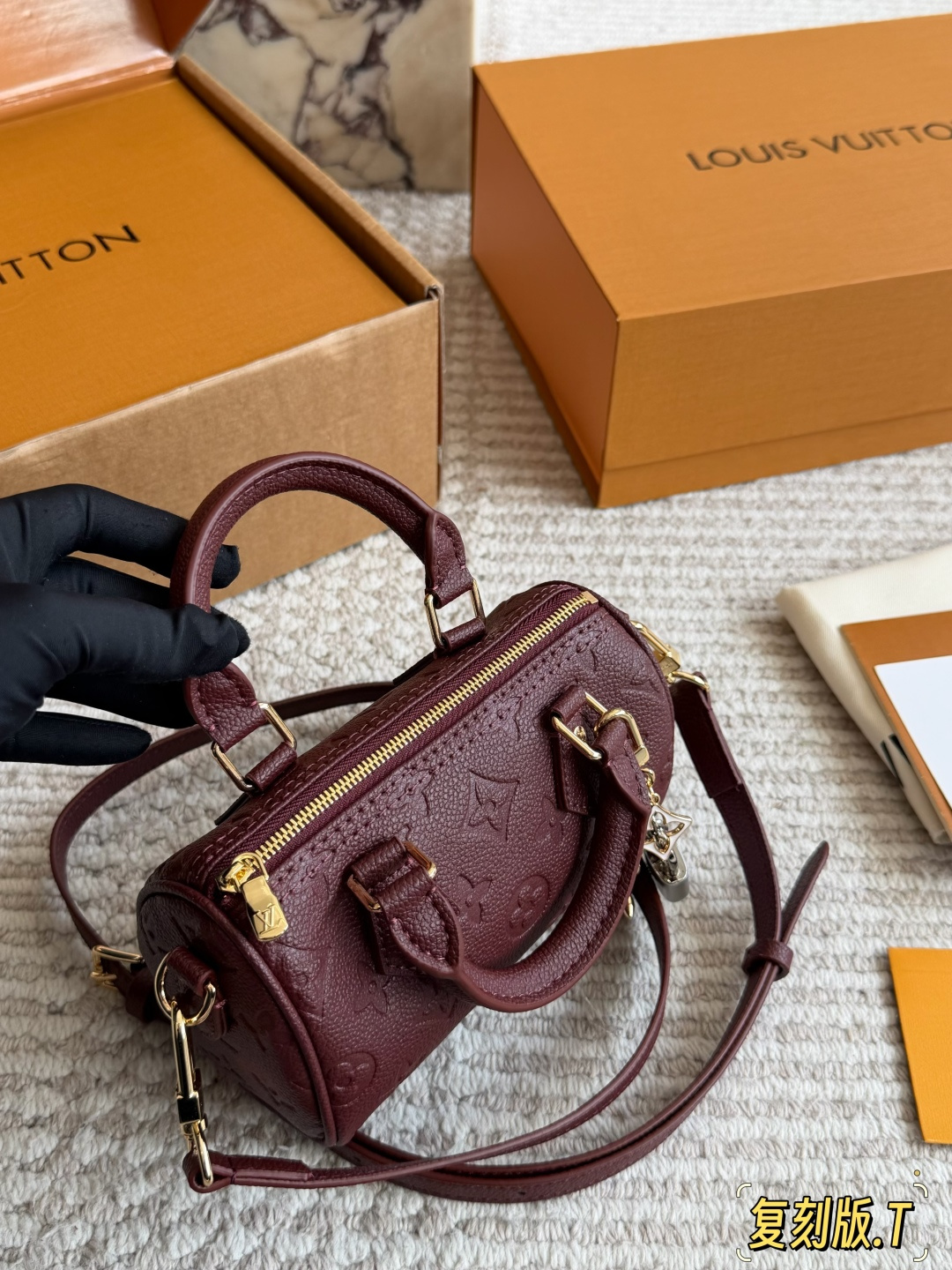 Speedynano 小巧之中透露出无与伦比的高级感 纯黑色的包面与LV白色大印花完美结合 为这款包包赋予了独特的貌美特质 仿佛夜空中最亮的星辰 小巧迷你的尺寸让人一眼就爱上 既可爱又富有气质 完美适合各 种场合 无论是高贵的晚宴还是日常的休闲时光小巧的手提与细肩带的搭配 无疑增添了更多的灵活性 和实用性 LV 路易威登 16cm