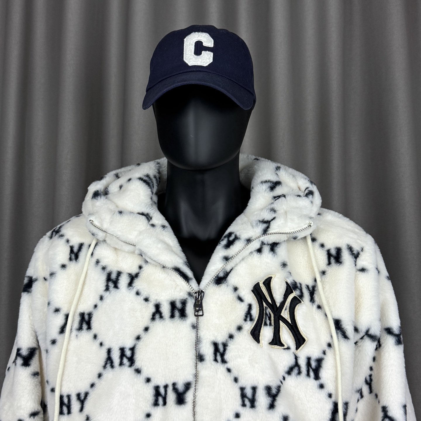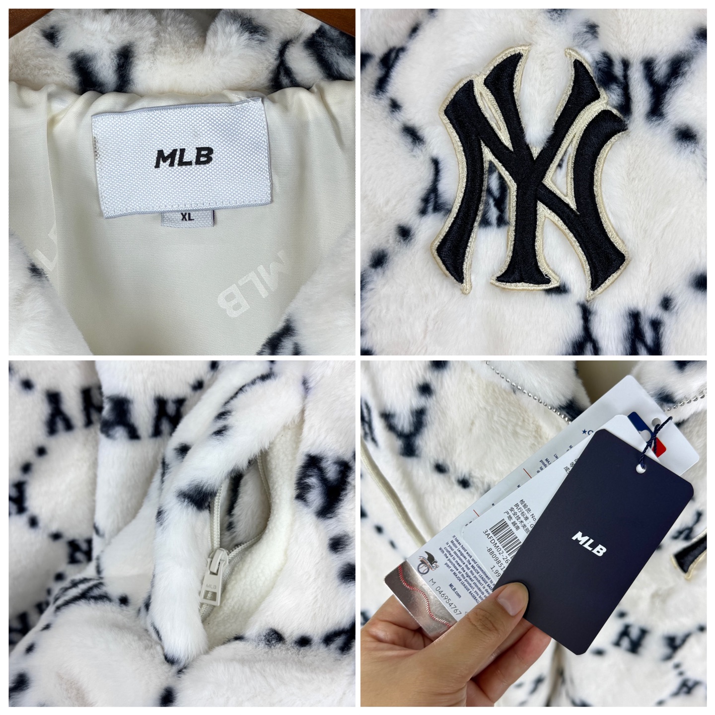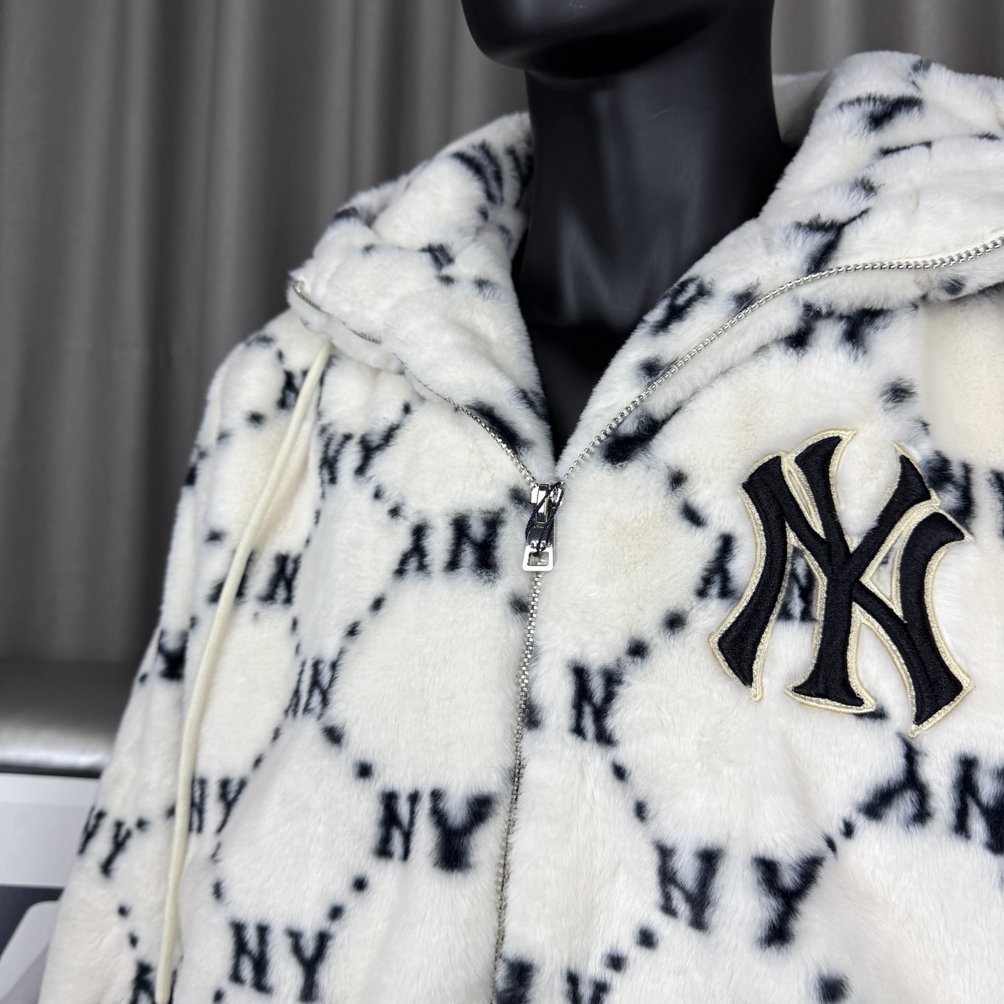 𝑴𝒍𝒃 𝑴𝒐𝒏𝒐𝒈𝒓𝒂𝒎 纽约洋基队老花钻石NY刺绣兔毛抽绳连帽复古美式mlb满印拉链外套男女同款